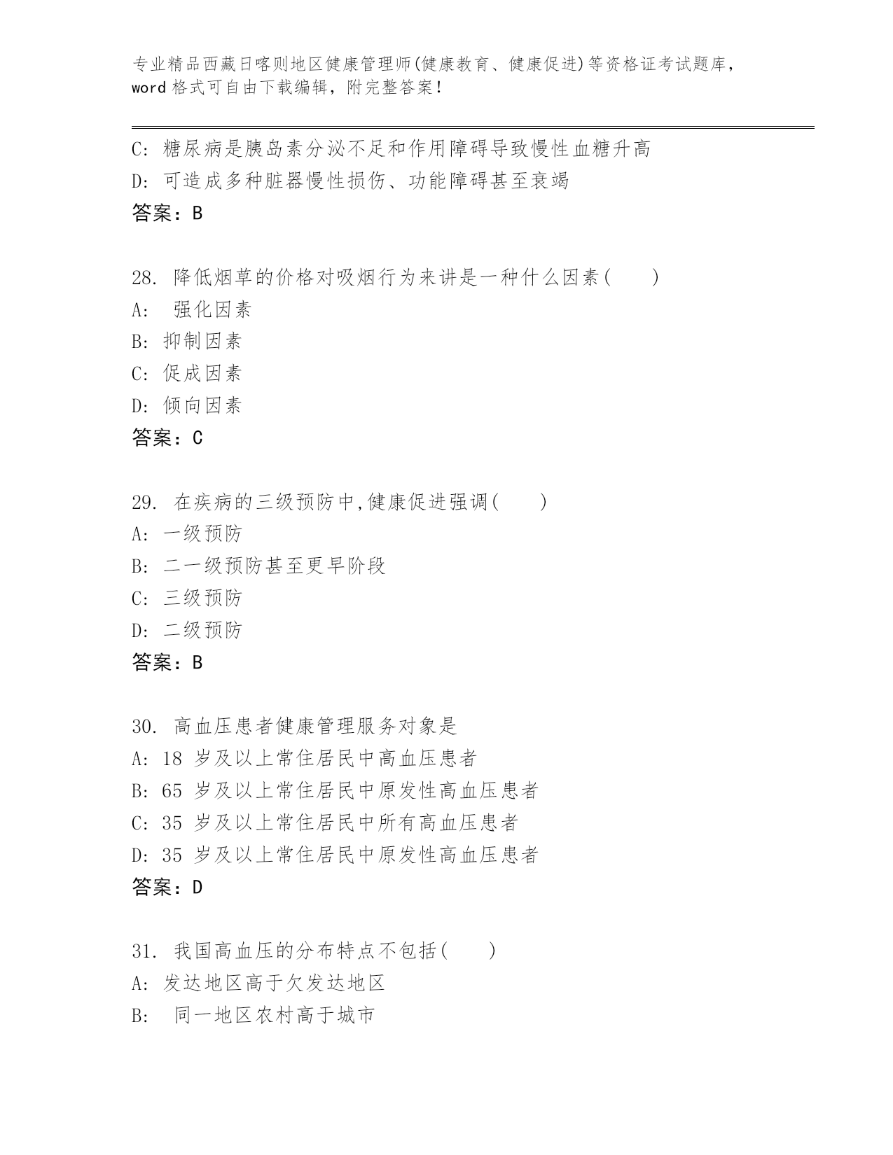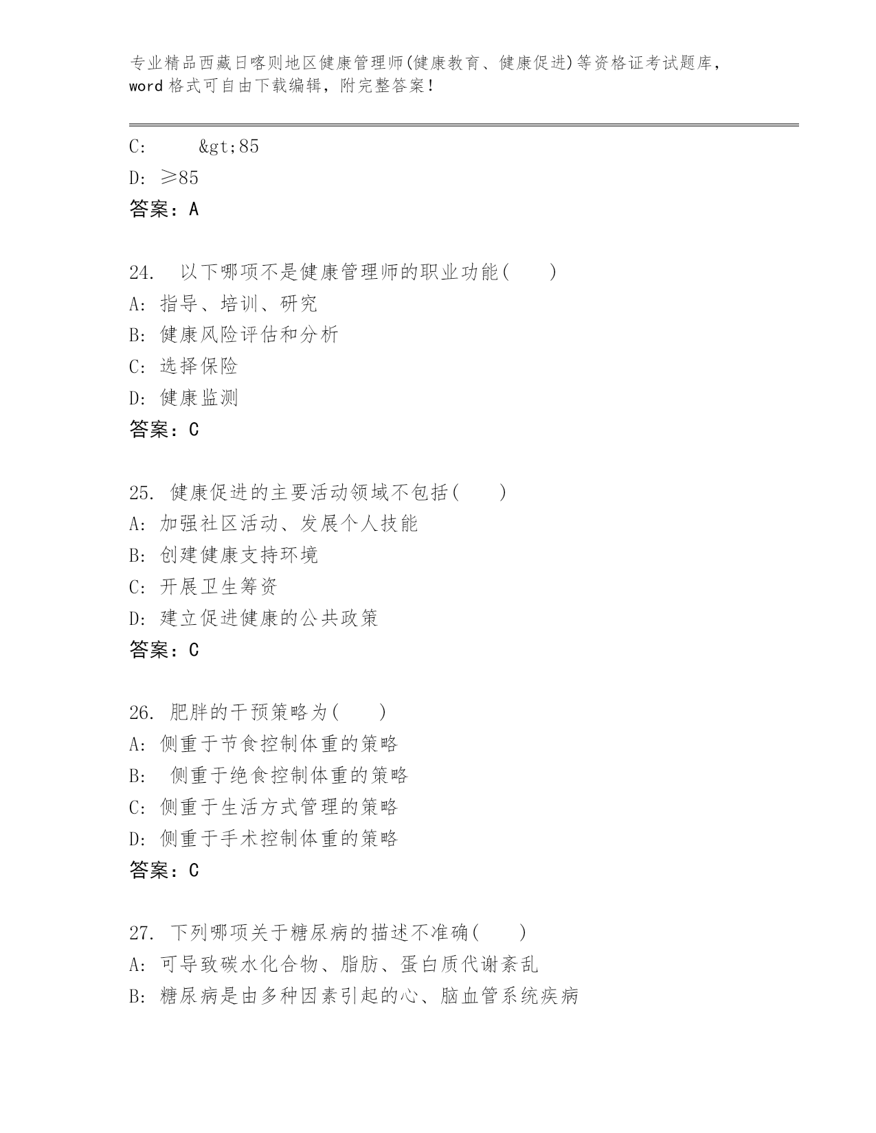 精心整理西藏日喀则地区健康管理师(健康教育、健康促进)等资格证考试精选题库含答案