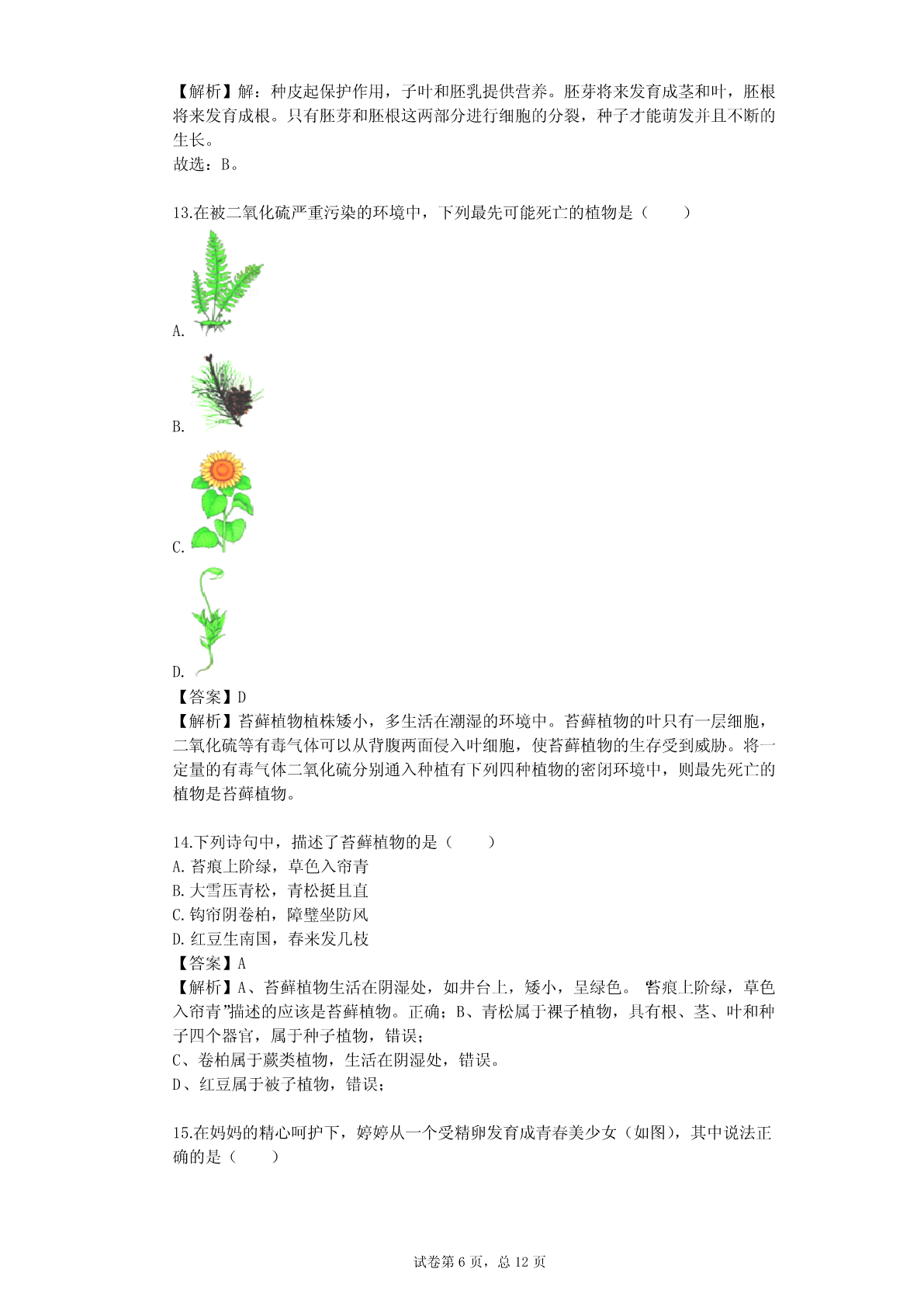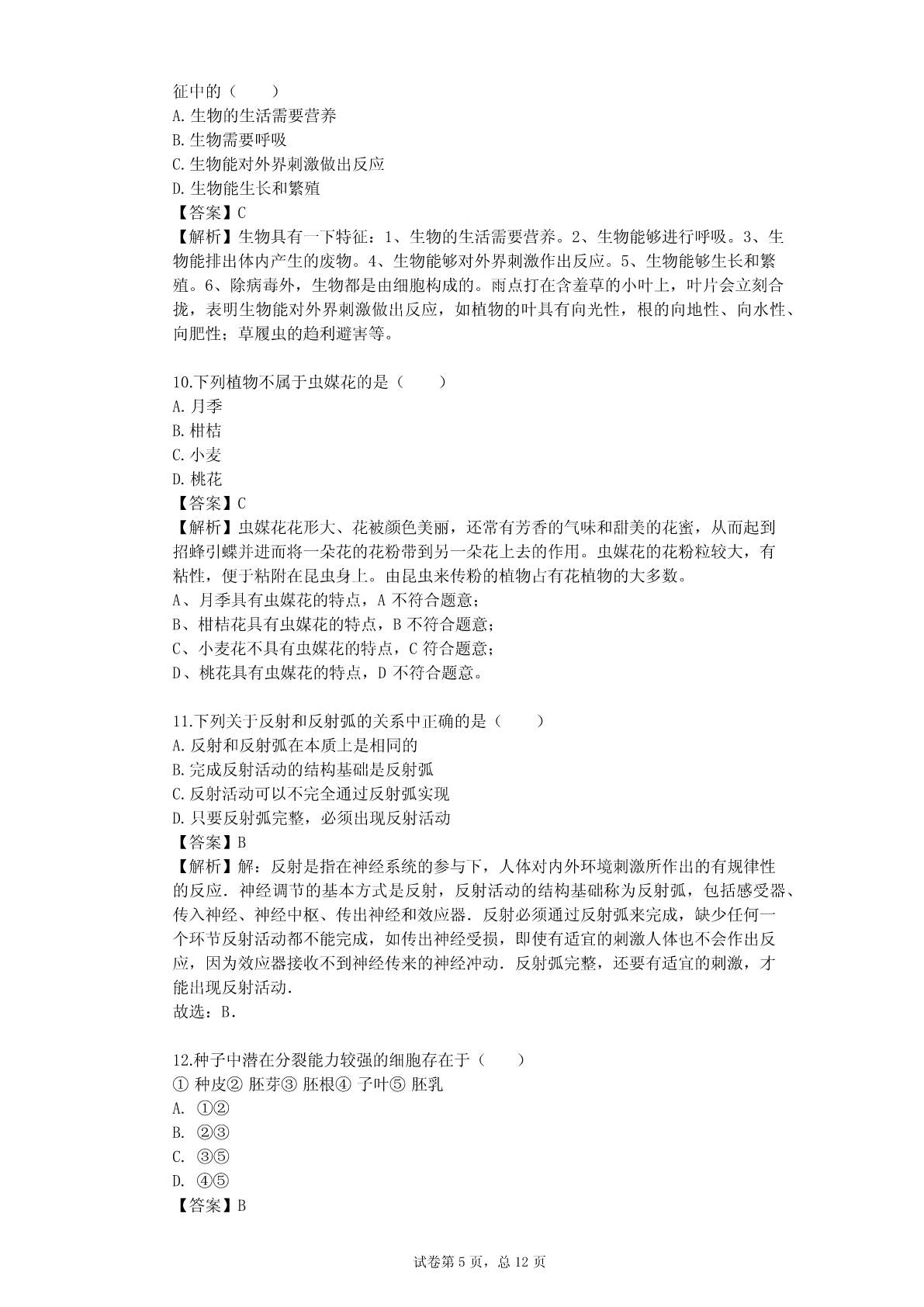 2023-2024学年山东聊城中考专题生物中考模拟(真题及答案).pdf