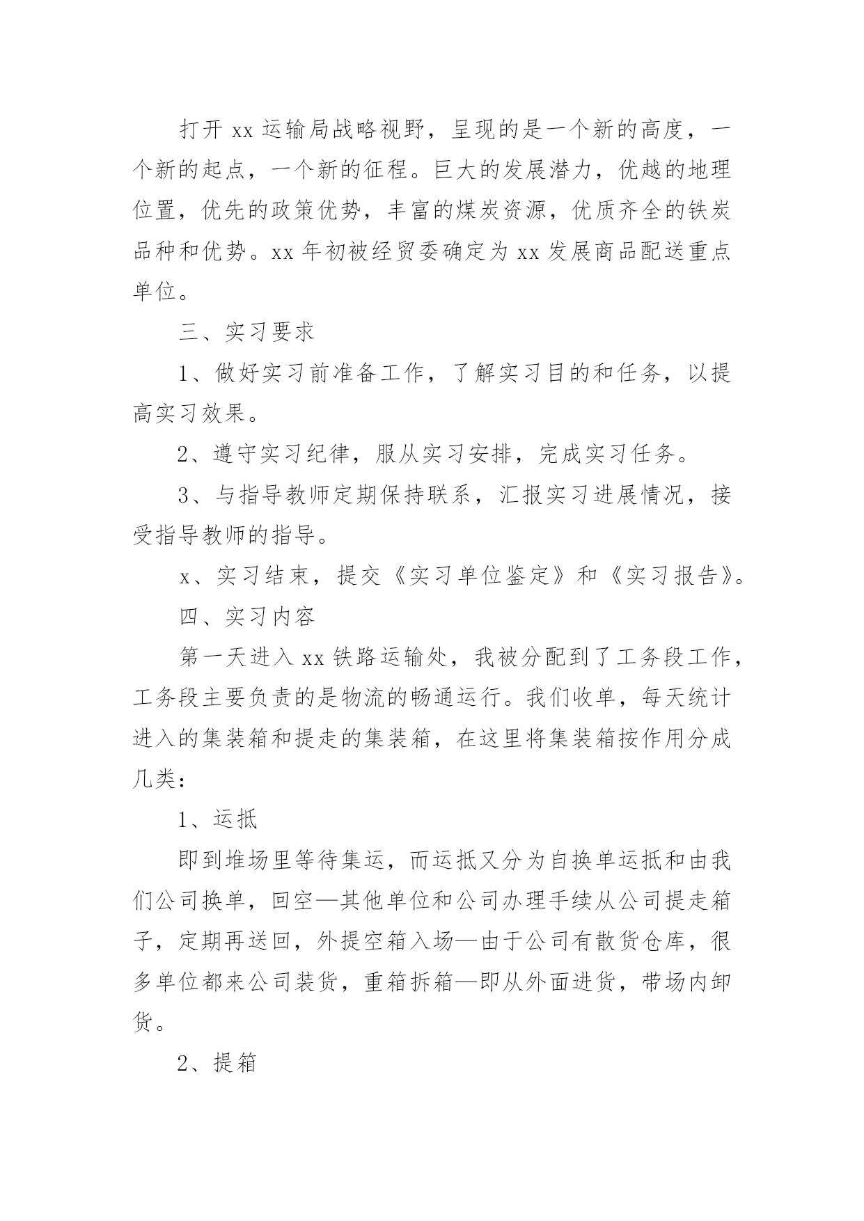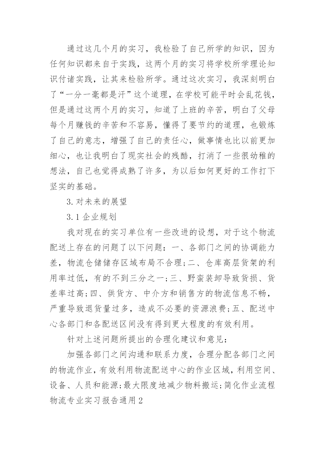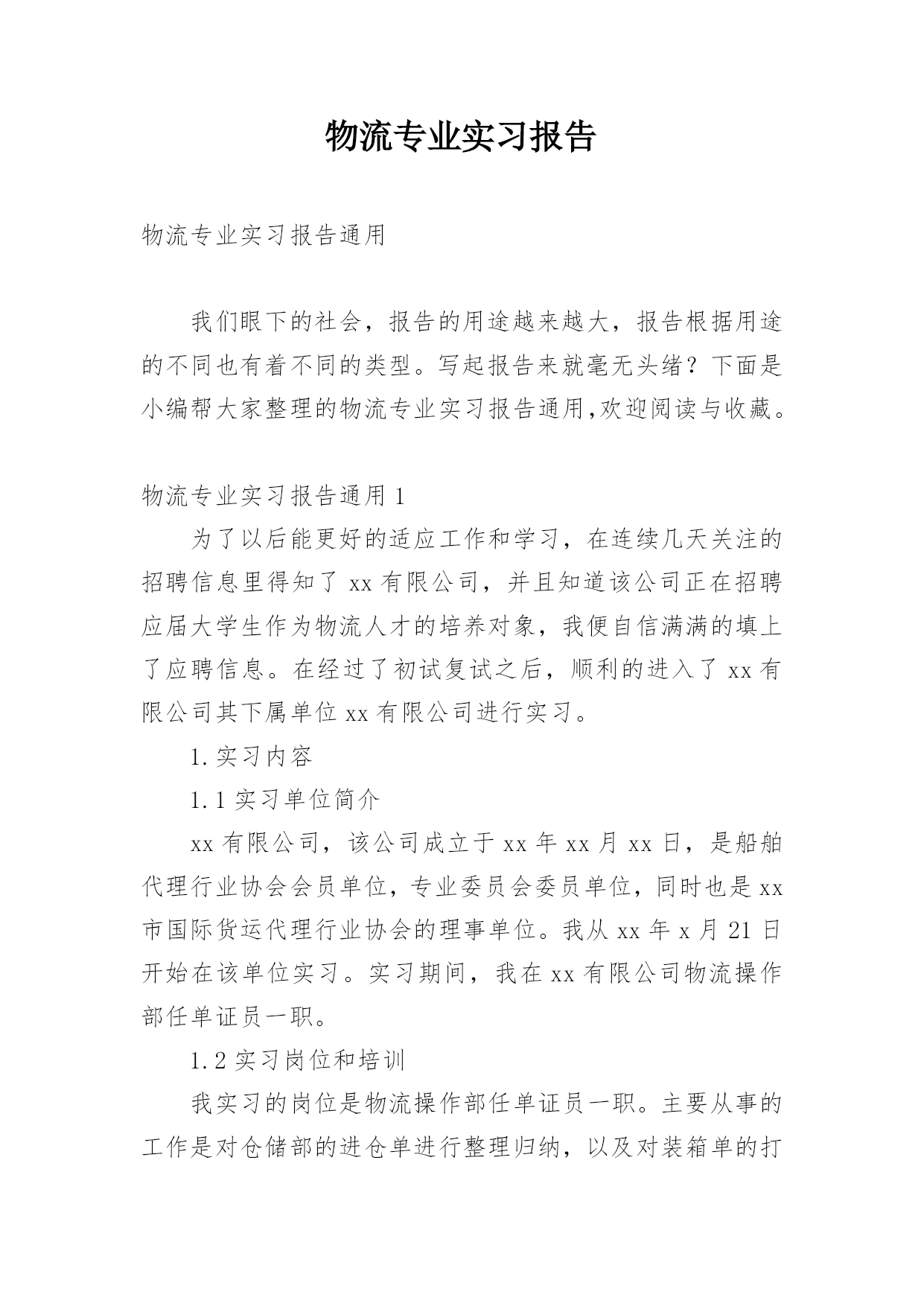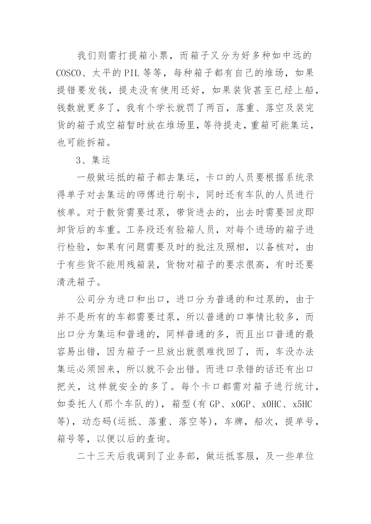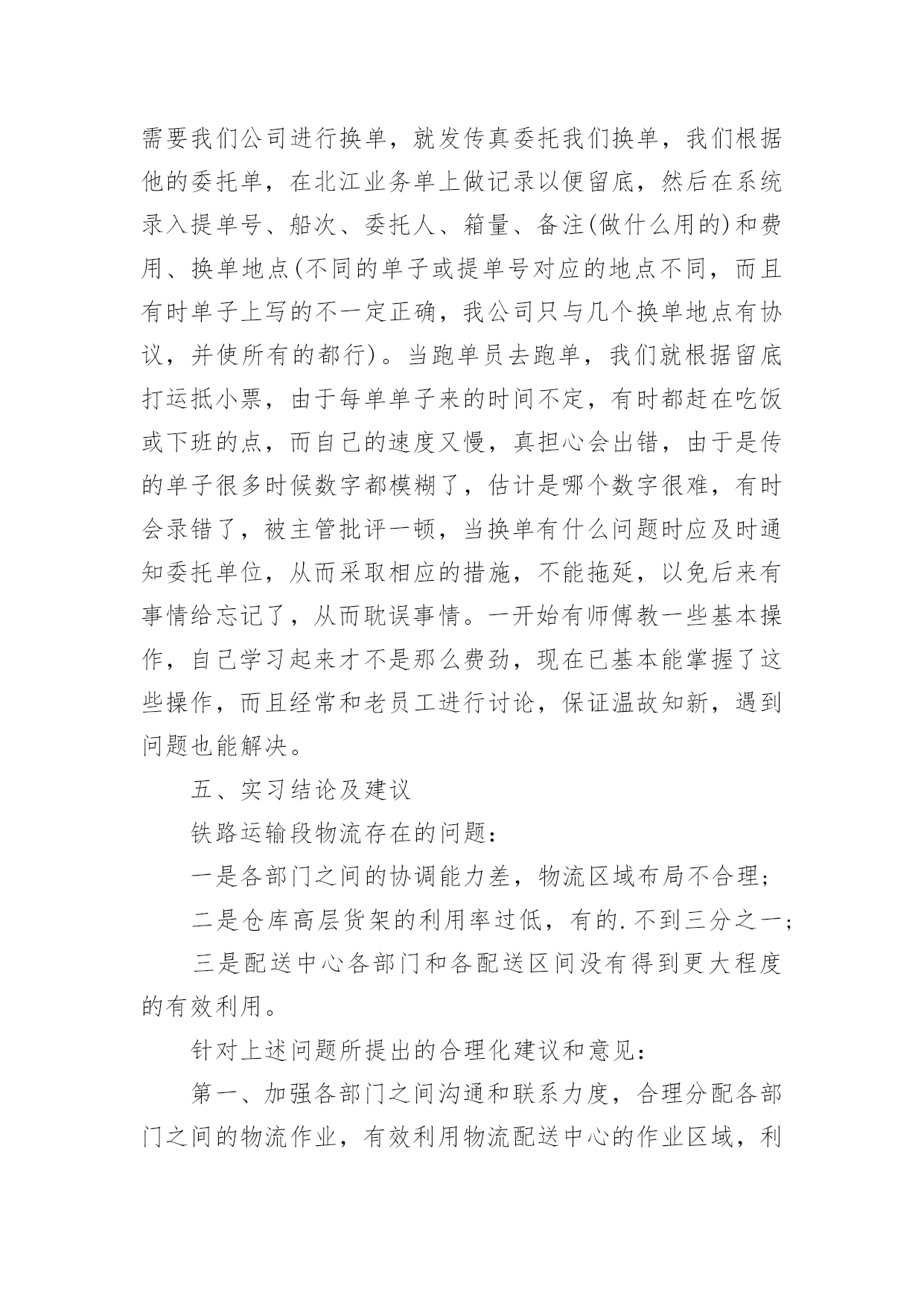 物流专业实习报告物流专业实习报告通用我们眼下的社会,报告的用途越来越大,报告根据用途的不同也有着不同的类型。写起报告来就毫无头绪?下面是小编帮大家整理的物流专业实习报告通用,欢迎阅读与收藏。物流专业实习报告通用1为了以后能更好的适应工作和学习,在连续几天关注的招聘信息里得知了xx有限公司,并且知道该公司正在招聘应届大学生作为物流人才的培养对象,我便自信满满的填上了应聘信息。在经过了初试复试之后,顺利的进入了xx有限公司其下属单位xx有限公司进行实习。1.实习内容1.1实习单位简介xx有限公司,该公司成立于xx年xx月xx日,是船舶代理行业协会会员单位,专业委员会委员单位,同时也是xx市国际货运代理行业协会的理事单位。我从xx年x月21日开始在该单位实习。实习期间,我在xx有限公司物流操作部任单证员一职。1.2实习岗位和培训我实习的岗位是物流操作部任单证员一职。主要从事的工作是对仓储部的进仓单进行整理归纳,以及对装箱单的打印及预录和审单。对这个环节有所了解后,我被调到了外仓库,进行了实地的收发货。主要是收货时对供应商送来的货物进行清点,核对收货单数量,入库,按客户的要求请将货物分批出货,配送时点安排做到准确,准时。之后又深入了zp11项目开发组工程师一职,和上汽公司参与了zp11项目前期试装的工作。主要收货,做报表,准确准时,清楚无误的将货物信息发给我们的客户。由于我们是第三方物流所以主要的还是收发货的事宜。岗前培训看似简单枯燥,却让我得到了很大大的收获,我的带教师傅个个都是资深人士,因此在与人交流方面具有很丰富的经验,在培训期间老师教会了我许多,不仅仅是理论知识,实践知识,收发货,调配人员,配送等一系列的知识,还有怎样与人相处的方法,做人的道理等等。1.3实习工作内容培训结束之后,便是正式的实习工作。现在我主要从事zp11项目前期试装的工作。首先,在收货环节上我们严格把关,按收货标准对供应商进行货物清点验收。其次,在货物入库时将零件归类,堆放秩序,最后基于前期工作的充分准备,做到顺利进行发货,使得配送做到准确,准时。2.实习的收获和体会2.1了解工作流程通过这次实习,我学会了许多书本上学不到的知识,也对自己所学的关于物流方面的专业知识有了更深一步的了解。在物流操作部任单证员岗位上实习工作的主要流程分为:制单,整理,分类,归纳,分箱,打印箱单,配箱,预录,审单等。制单就是对每一份入仓的货物制作一份专属的货物证明,单子上主要显示的信息有:进仓编号,业务编号,日期,数量,尺码,货物名称,库位,唛头等。整理即对已经入仓的货物的入仓单进行核对,核对其进仓通知书上及进仓单上信息是否一致。分类归纳这两项工作就是针对相同或者不同进仓编号的进仓单进行整理,为下一步分箱做简单的铺垫。在对货物的详细分类后,根据尺码大小,和客户的要求,对需要分一起或者必须分开的货物,按照要求做出分箱,然后将信息核对后打印出需要的装箱单。打完箱单以后变是将货物信息一份份的详细列出装箱要求表,以便理货员进行装箱操作。而接下来将要处理的便是装箱单的预录,也就是将箱子的信息,以电子装箱单的形式反馈到港区的网络上。再第二次审核没问题的情况下发送至港区网络,等货物报关完成后就可以让车队安排将集装箱进港等一系列运输工作了。第一天来到公司,这里的一切对我来说都是陌生的,不知道该如何融入到这个大家庭中,自己该如何扮演好自己的角色,特别是面对职场上的人员,一切那么的懵懂。刚被分配到师傅那边的时候,我能做的除了静静地坐在师傅的旁边,就是呆呆的看着她如何进行一系列的操作。看似简单到不能简单的步骤,到了自己的手里,却如一匹未训的马,非常难驾驭。一周的时间也只会了点在实际操作中需要掌握的`基本理论知识,看似都只是些英文字母与数字,确是这些小小的符号掌握了全部的重要信息,的确是一门值得深入学习的“课程”。随着对实际工作的了解、熟悉,我们开始逐步深入实践操作中让我们更有体系的认识到了整个流程。2.2仓库收发货仓库实地的收发货,接货并且负责发货配送,所谓发货配送,对于我来说由于配送的是汽车零件,零件的诸多,对于最后的发货造成了相当大的困难,所以每当接到订单的时候,提前根据客户要求,对货物进行拣选、加工、包装、分割、组配等作业,并按时送达指定地点的物流活动。所以仓库是要保证零库存的,不然会导致生产线停线,所谓零库存就是以仓库储存形式的某种或某些种物品的储存数量很低的一个概念完成每一阶段的生产,甚至可以为“零”,即不保持库存。发货的工作是相当辛苦的,首先是接收货物,因为所有的零件来自不同供应商,对于货物接收的要求也有所不同,对于零件的体积,件数,归类便于进行分拣,对于忙了一天、累了一天的我来说,考验了一个人意志力,每天做到精神饱满的开始每一天的工作,当然在实习中最值得骄傲的也就是这点,每天对工作充满