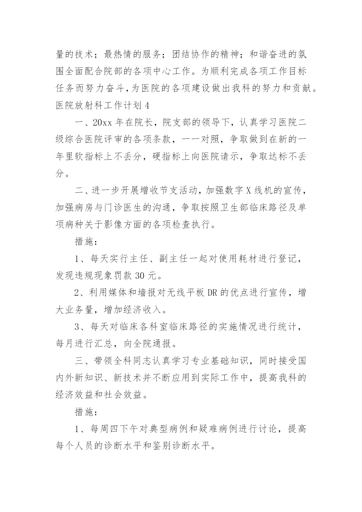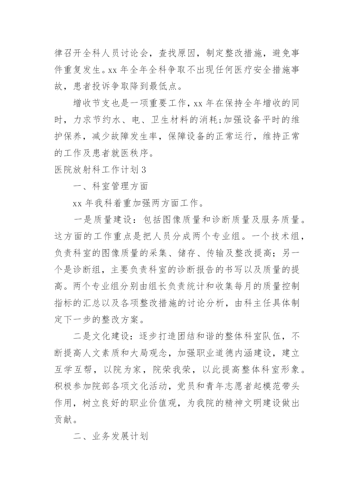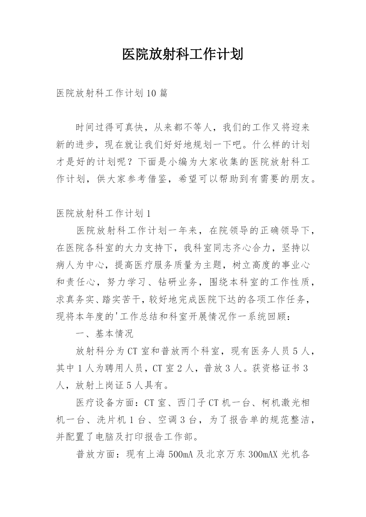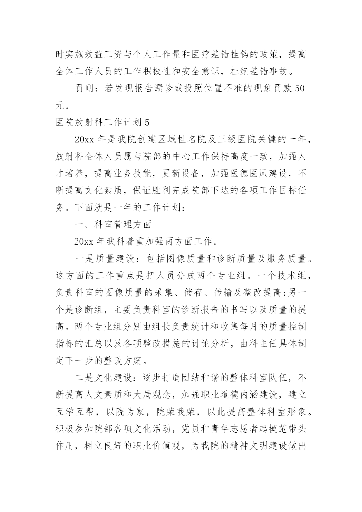 医院放射科工作计划医院放射科工作计划10篇时间过得可真快,从来都不等人,我们的工作又将迎来新的进步,现在就让我们好好地规划一下吧。什么样的计划才是好的计划呢?下面是小编为大家收集的医院放射科工作计划,供大家参考借鉴,希望可以帮助到有需要的朋友。医院放射科工作计划1医院放射科工作计划一年来,在院领导的正确领导下,在医院各科室的大力支持下,我科室同志齐心合力,坚持以病人为中心,提高医疗服务质量为主题,树立高度的事业心和责任心,努力学习、钻研业务,围绕本科室的工作性质,求真务实、踏实苦干,较好地完成医院下达的各项工作任务,现将本年度的'工作总结和科室开展情况作一系统回顾:一、基本情况放射科分为CT室和普放两个科室,现有医务人员5人,其中1人为聘用人员,CT室2人,普放3人。获资格证书3人,放射上岗证5人具有。医疗设备方面:CT室、西门子CT机一台、柯机激光相机一台、洗片机1台、空调3台,为了报告单的规范整洁,并配置了电脑及打印报告工作部。普放方面:现有上海500mA及北京万东300mAX光机各一台,洗片机2台,空调1台,除湿机1台,为了报告的规范性也配置了电脑以及打印机。二、工作开展情况科室全体人员积极参加院内外的业务学习,努力提高自己的业务素质和业务水平,不断更新、知识、提高技术水平,加上我院积极开展“树行业新风,创一流服务活动,就医人员不断增加,截止到12月31日”1、普放摄片人数达到4520张,其中合医1080张,医保720张,门诊和住院病人检查2720人次,检查人次比20xx年增加880人次。甲片率张数3616,其符合率达到80%,乙片张数452,其符合率小于15%。诊断符合率达到70%。2、透视方面:干部职工健康体检1102人次,学生1328人次,征兵体检60余人次。特殊造影:48例。其总收入为144390元。CT室:由(10月7日至12月30日)共接待病人338人次,总收入74360元。月收入突破2万元以上。三、存在的问题1、书写报告不规范,详简不一,没有统一认可的标准,漏诊率较高,导致临床不信任放射科报告。2、提高质量不高,许多体位不够标准,有责任心因素,技术因素,暗房及胶片因素。3、部份医生态度差,话语不够温馨,显示不出“以病人为中心的宗旨”。4、与临床科的协调度不够。5、发放报告不及时。医院放射科工作计划2xx年是我院创建区域性名院及三级医院关键的一年,放射科全体人员愿与院部的中心工作保持高度一致,加强人才培养,提高业务技能。一.科室管理方面xx年我科着重加强两方面工作。一是质量建设:包括图像质量和诊断质量及服务质量。这方面的工作重点是把人员分成两个专业组。一个技术组,负责科室的图像质量的采集、储存、传输及整改提高;另一个是诊断组,主要负责科室的诊断报告的书写以及质量的提高。两个专业组分别由组长负责统计和收集每月的质量控制指标的汇总以及各项整改措施的讨论分析,由科主任具体制定下一步的整改方案。二是文化建设:逐步打造团结和谐的整体科室队伍,不断提高人文素质和大局观念,加强职业道德内涵建设,建立互学互帮,以院为家,院荣我荣,以此提高整体科室形象。积极参加院部各项文化活动,党员和青年志愿者起模范带头作用,树立良好的职业价值观,为我院的精神文明建设做出贡献。二.业务发展计划xx年也是我科持续发展关键的一年。面临着人员结构老化,部分设备需要更新,新业务新技术需要突破发展等众多发展瓶颈问题。首先加强人才培养计划工作。把人才引进,高层次引进;人才培养,高层次培养作为科室发展的重点工作。采取请进来(把优秀专家请进来),送出去(科室业务骨干送出去培养)的方法,不断提高业务技能。加强专业理论知识的学习和深造,继续开展科室内业务串讲活动,要求每个人每年至少两次备课,进行业务串讲学习。注重本专业的.常见病,多发病开展讨论和分析。要求40岁以下人员人人熟练掌握该类疾病的影像特点及诊断要点,大大减少漏诊及误诊率。另外要求40岁以下人员每周一次集中学习和病例讨论、读片活动。针对日常工作中遇到的问题总结解决办法。科主任带头参加每一次的集中学习,把要注意的问题和诊断原则分析思路逐步落实到每一位工作人员当中。新业务新技术方面,xx年计划开展2--3项新的造影技术及乳腺dr的摄影技术、全景齿科检查技术,不断地结合我科实际情况,拓宽检查范畴,全面提升收入增长点。简化检查流程,合理的全方位的开发利用pass系统功能,建立健全远程会诊系统的利用开发,更好的及便捷的为患者服务。争取xx年我科全年总收入较xx年增长10%左右。医疗安全方面,我科制定了xx年度一系列规范化的流程方案,各类人员工作流程及全科质量控制指标纳入全科的全面考核,凡出现的医疗差错、纠纷,甚至是患者投诉,一律召开全科人员讨论会,查找原因,制定整改措施,避免事件重复发生。xx年全年全科争取不