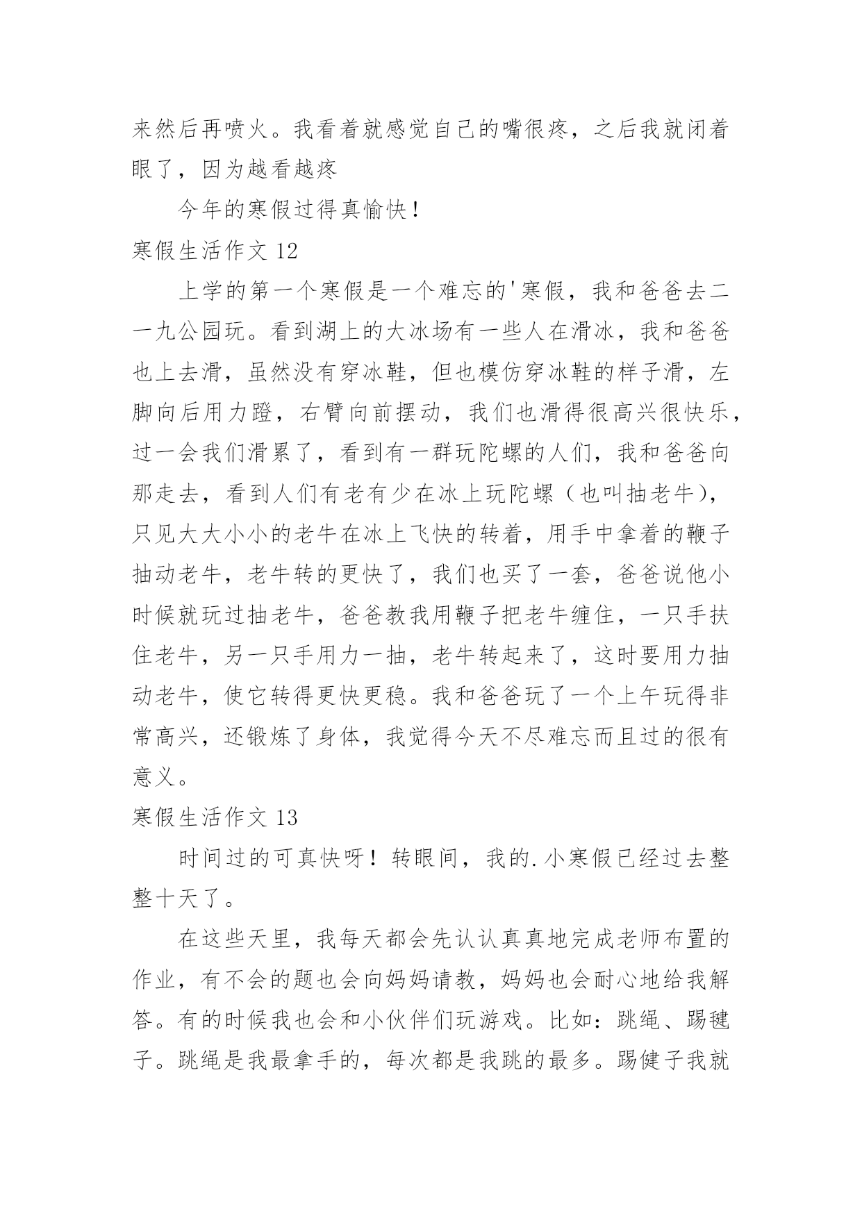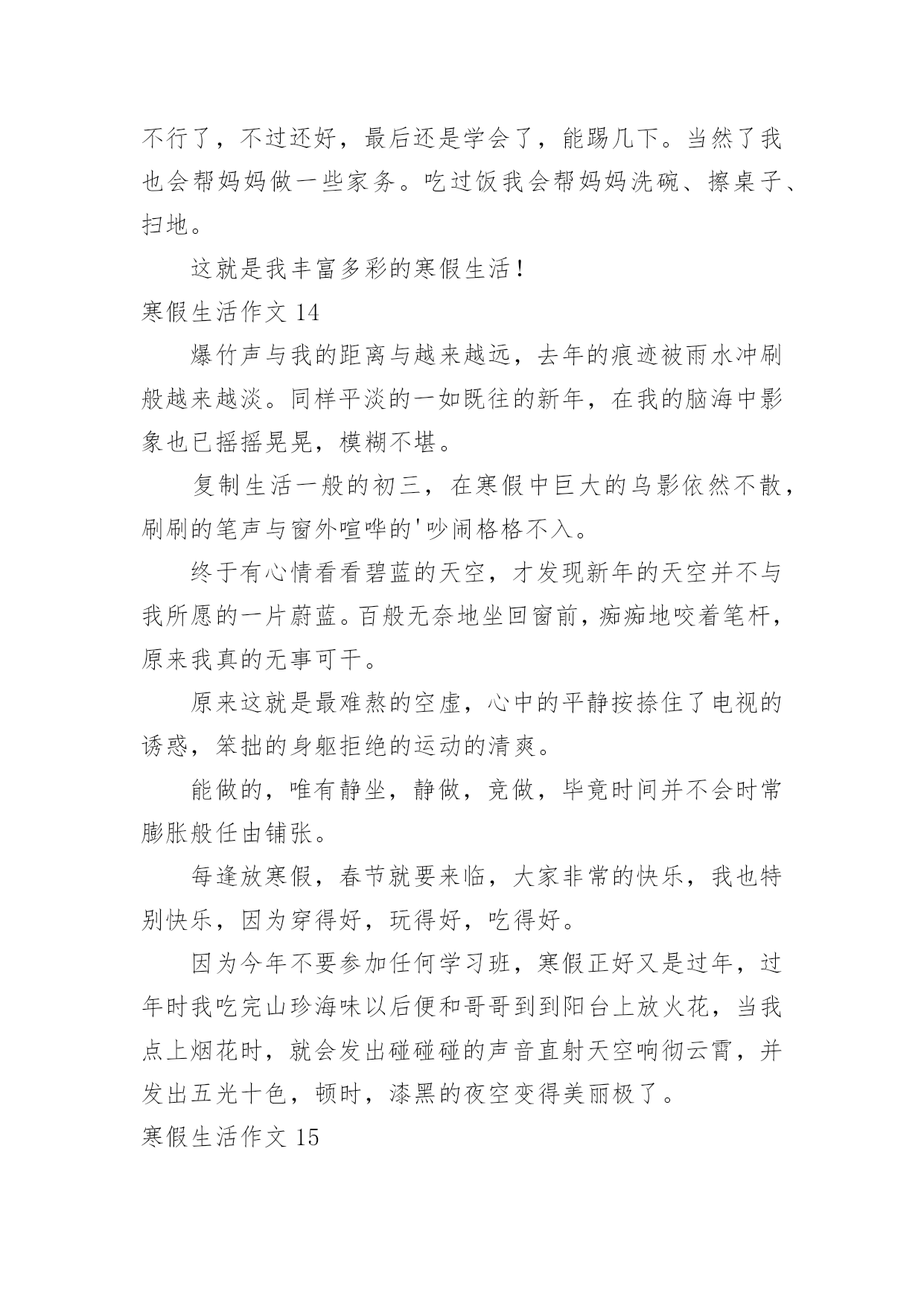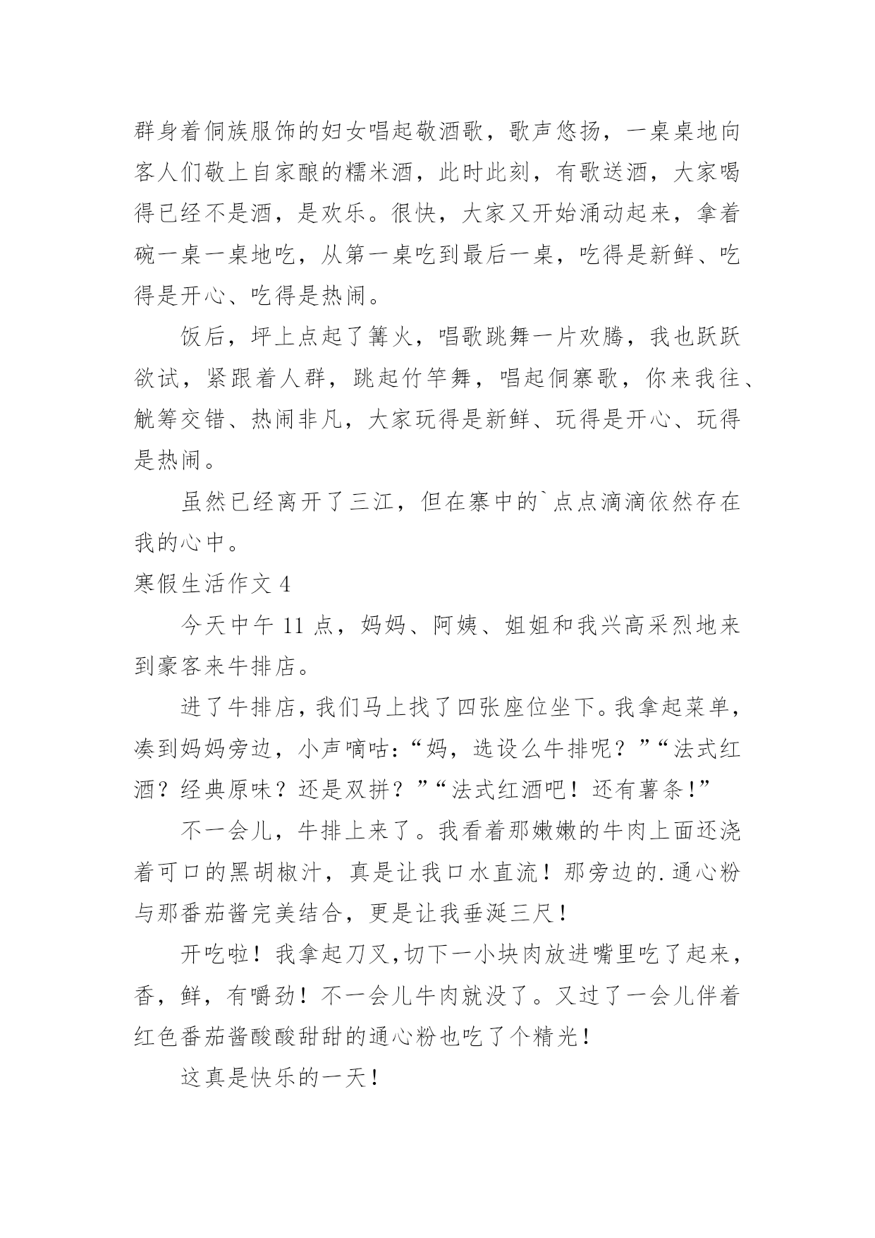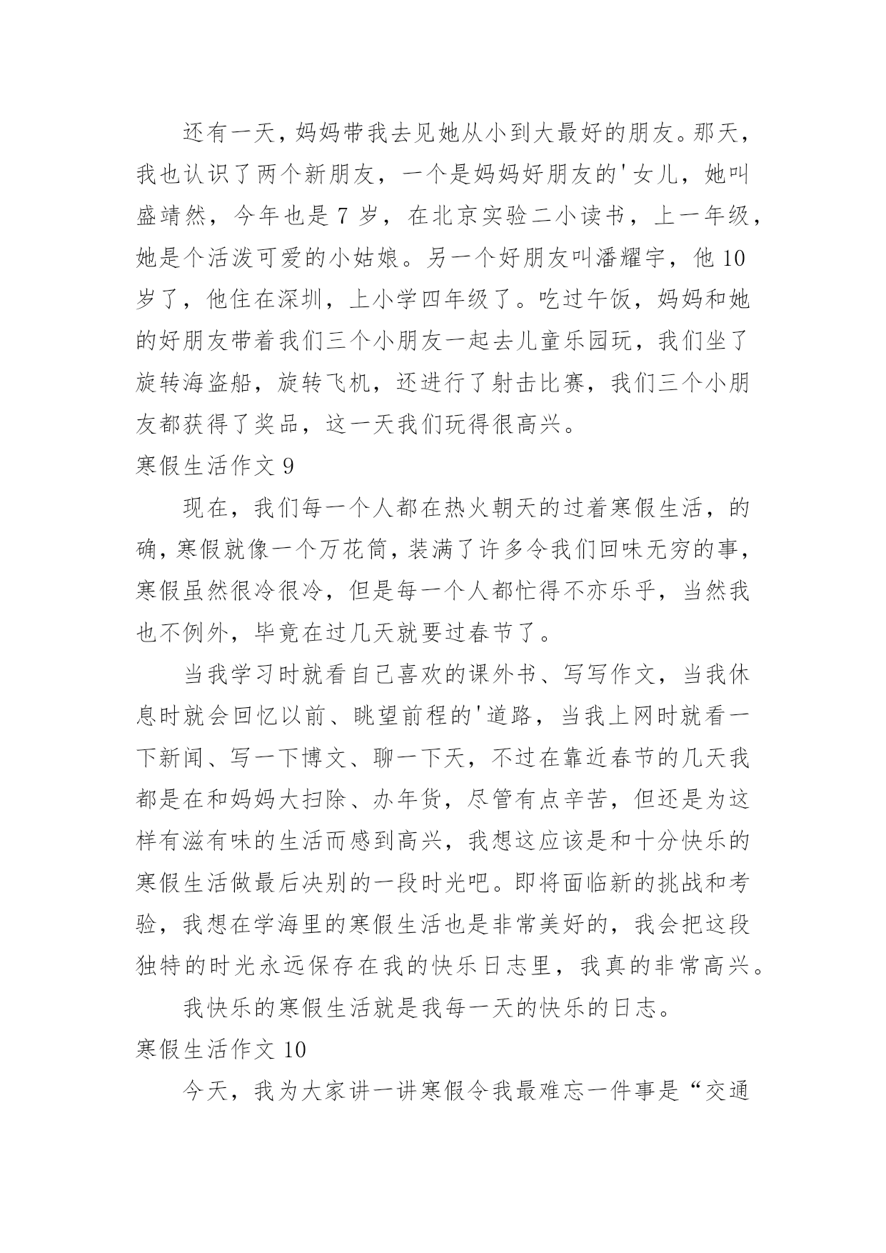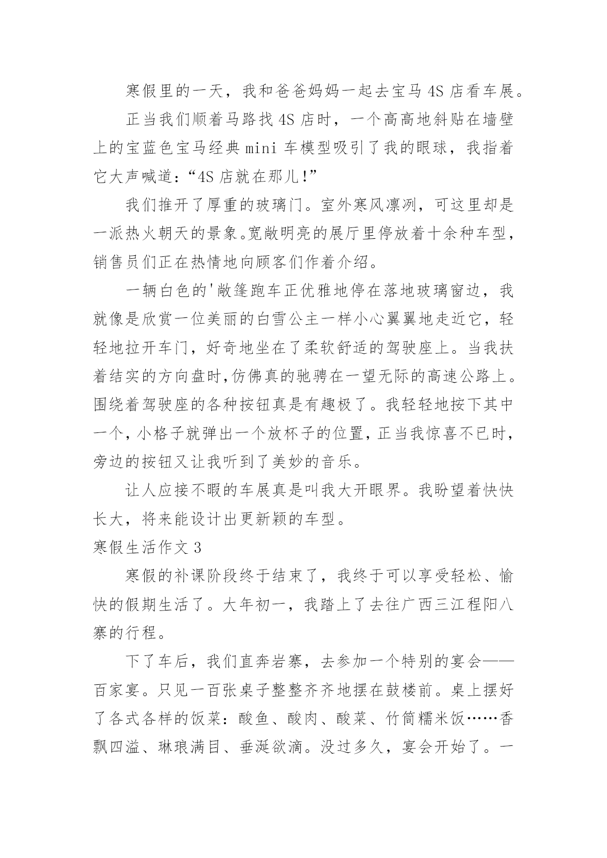 寒假生活作文寒假生活作文集锦[15篇]在日常的学习、工作、生活中,大家都不可避免地要接触到作文吧,作文可分为小学作文、中学作文、大学作文(论文)。你所见过的作文是什么样的呢?下面是小编精心整理的寒假生活作文,仅供参考,欢迎大家阅读。寒假生活作文1寒假里有很多有趣的事情,但最有趣的是做饭。那天我和表哥来到堂弟家,因为他说今天要给我们尝一尝他亲手做的'炒鸡蛋。首先他从冰箱里拿出三四个鸡蛋,堂弟为了表演自己的技术非常好,所以把鸡蛋向上抛,准备用右手帅气地接住时,鸡蛋却偏偏落到了地上摔碎了。弄得地上一片狼藉,我和表哥笑得直不起腰来,我说:“叫你耍酷。”堂弟说:“我不信,我一定能成功的!”接着堂弟又向上抛起了一个鸡蛋,你猜怎么了,这个鸡蛋又落到了地上,哈哈哈……这时堂弟的奶奶神不知鬼不觉地站在我们后面说:“你们三个在干嘛?”我说:“堂弟要给我们做炒鸡蛋的,结果就成了这样了。”说完我和表哥赶紧跑了出去,堂弟在里面挨骂。等他奶奶走了我叫堂弟赶紧出来,我们三个躲在角落一直笑。童年趣事就是这么有滋有味,令人回味。寒假生活作文2寒假里的一天,我和爸爸妈妈一起去宝马4S店看车展。正当我们顺着马路找4S店时,一个高高地斜贴在墙壁上的宝蓝色宝马经典mini车模型吸引了我的眼球,我指着它大声喊道:“4S店就在那儿!”我们推开了厚重的玻璃门。室外寒风凛冽,可这里却是一派热火朝天的景象。宽敞明亮的展厅里停放着十余种车型,销售员们正在热情地向顾客们作着介绍。一辆白色的'敞篷跑车正优雅地停在落地玻璃窗边,我就像是欣赏一位美丽的白雪公主一样小心翼翼地走近它,轻轻地拉开车门,好奇地坐在了柔软舒适的驾驶座上。当我扶着结实的方向盘时,仿佛真的驰骋在一望无际的高速公路上。围绕着驾驶座的各种按钮真是有趣极了。我轻轻地按下其中一个,小格子就弹出一个放杯子的位置,正当我惊喜不已时,旁边的按钮又让我听到了美妙的音乐。让人应接不暇的车展真是叫我大开眼界。我盼望着快快长大,将来能设计出更新颖的车型。寒假生活作文3寒假的补课阶段终于结束了,我终于可以享受轻松、愉快的假期生活了。大年初一,我踏上了去往广西三江程阳八寨的行程。下了车后,我们直奔岩寨,去参加一个特别的宴会——百家宴。只见一百张桌子整整齐齐地摆在鼓楼前。桌上摆好了各式各样的饭菜:酸鱼、酸肉、酸菜、竹筒糯米饭……香飘四溢、琳琅满目、垂涎欲滴。没过多久,宴会开始了。一群身着侗族服饰的妇女唱起敬酒歌,歌声悠扬,一桌桌地向客人们敬上自家酿的糯米酒,此时此刻,有歌送酒,大家喝得已经不是酒,是欢乐。很快,大家又开始涌动起来,拿着碗一桌一桌地吃,从第一桌吃到最后一桌,吃得是新鲜、吃得是开心、吃得是热闹。饭后,坪上点起了篝火,唱歌跳舞一片欢腾,我也跃跃欲试,紧跟着人群,跳起竹竿舞,唱起侗寨歌,你来我往、觥筹交错、热闹非凡,大家玩得是新鲜、玩得是开心、玩得是热闹。虽然已经离开了三江,但在寨中的`点点滴滴依然存在我的心中。寒假生活作文4今天中午11点,妈妈、阿姨、姐姐和我兴高采烈地来到豪客来牛排店。进了牛排店,我们马上找了四张座位坐下。我拿起菜单,凑到妈妈旁边,小声嘀咕:“妈,选设么牛排呢?”“法式红酒?经典原味?还是双拼?”“法式红酒吧!还有薯条!”不一会儿,牛排上来了。我看着那嫩嫩的牛肉上面还浇着可口的黑胡椒汁,真是让我口水直流!那旁边的.通心粉与那番茄酱完美结合,更是让我垂涎三尺!开吃啦!我拿起刀叉,切下一小块肉放进嘴里吃了起来,香,鲜,有嚼劲!不一会儿牛肉就没了。又过了一会儿伴着红色番茄酱酸酸甜甜的通心粉也吃了个精光!这真是快乐的一天!寒假生活作文5我的寒假生活多姿多彩,其中令我最开心的`事情就是我给妹妹煎鸡蛋,妹妹可开心了。正月初十,我和妹妹跟着小姨一起来到城里。第二天,妈妈、小姨、姥姥和姥爷都去店里忙了,只留我和妹妹看家。到中午时,妹妹对我说她饿了,我一时也想不起来做什么饭,就回忆起妈妈以前给我煎鸡蛋的样子,于是我戴上围裙,从冰箱拿出一个鸡蛋,便开始进厨房煎鸡蛋了。我先把锅放在煤气灶上,把锅烧热,锅烧热后,我又往锅里适量地放入一些油,然后把油烧热,油热后,我把鸡蛋往锅上一磕,一些蛋清流了出来,然后我的双手捏住碎的两边,“啪!”鸡蛋掉到锅中。过了大约一分钟,我把鸡蛋翻到了另一面,又过了大约一分钟,鸡蛋已经完全熟了。我把它倒入盘中,端到妹妹面前,妹妹大口大口地吃起来,看着她的样子,我不禁笑了起来。寒假生活作文6寒假里,我跟着爸爸妈妈坐了整整十六个小时的飞机,绕了大半个地球,来到非洲的毛里求斯。这里的海水是我见过的最美的,海水在阳光的照射下,有蓝的、有绿的,甚至还有黑的`。更让我惊奇的是,这里竟然是夏天!蓝天白云、红花椰果、还有从未见过的红鸟……我迫不及待地来到海滩上,哇,这里真是贝壳的世界!五颜六色的贝壳躺在沙滩上晒太阳,真漂亮啊!我