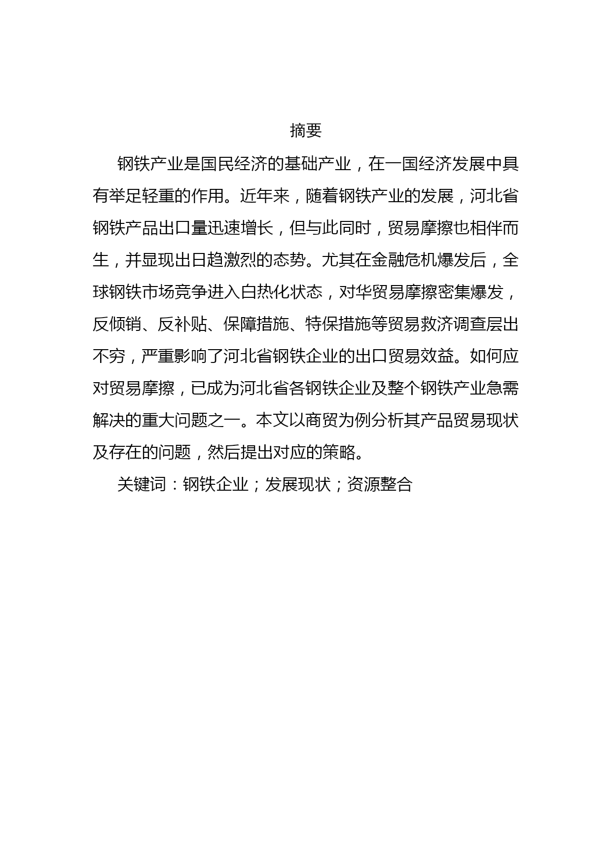 河北省钢铁产业现状及未来发展--本科毕业汇编.doc