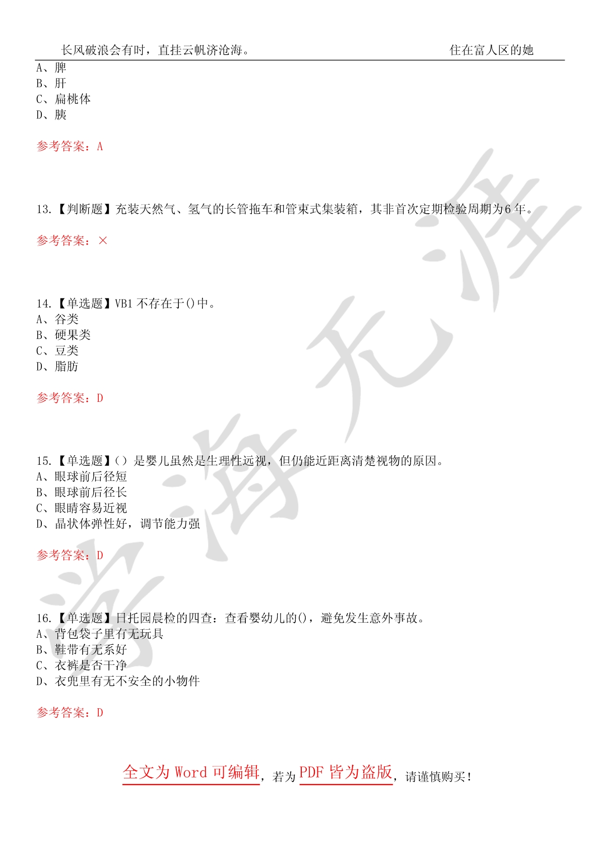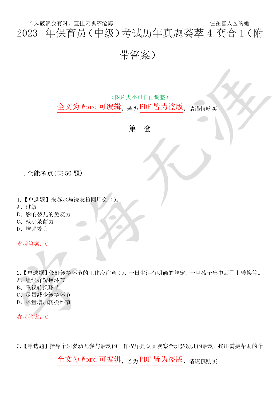 2023年保育员(中级)考试历年真题荟萃4套合1(附带答案)套卷14.pdf