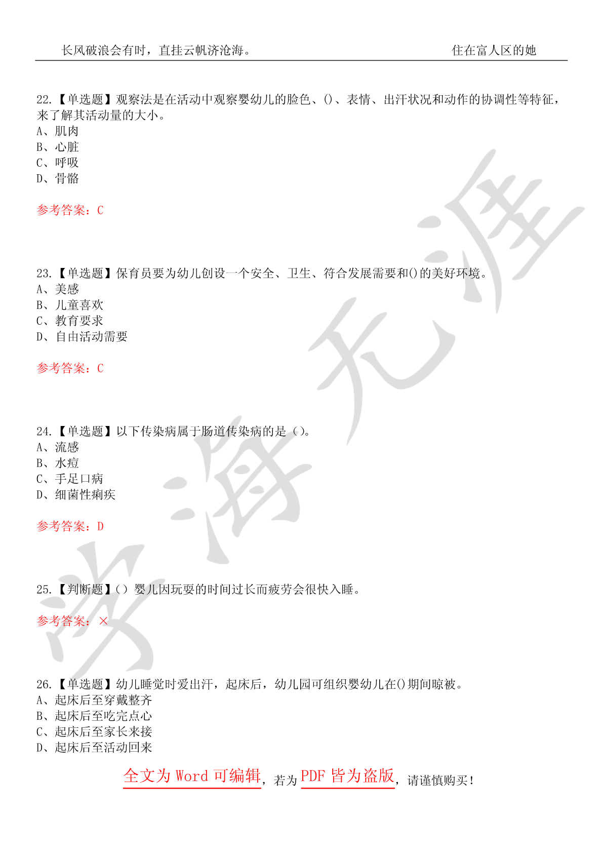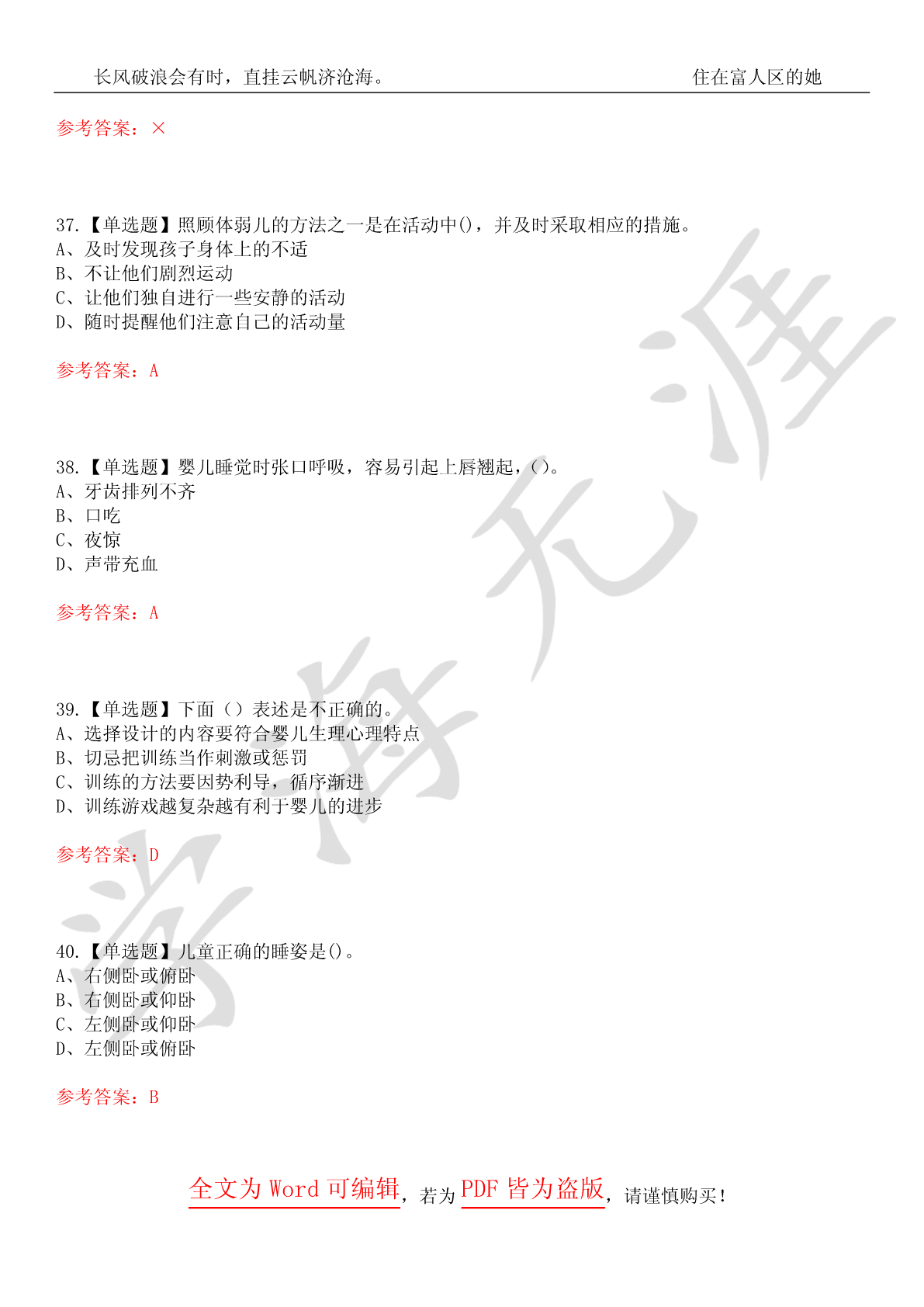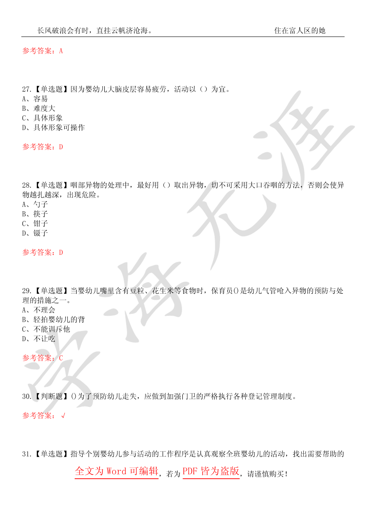 2023年保育员(中级)考试历年真题荟萃4套合1(附带答案)套卷14