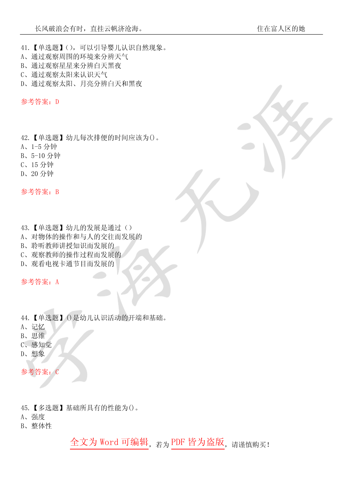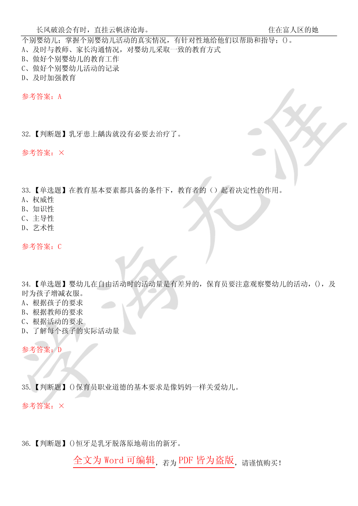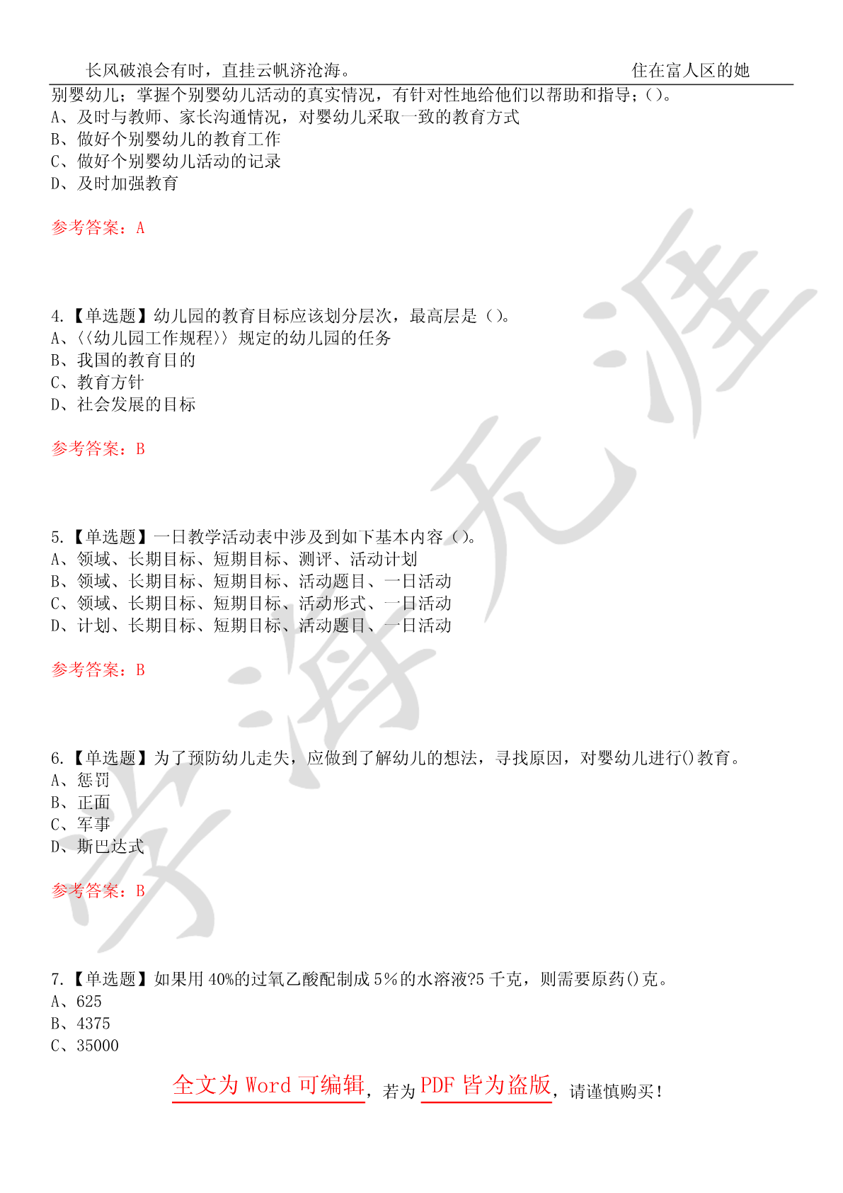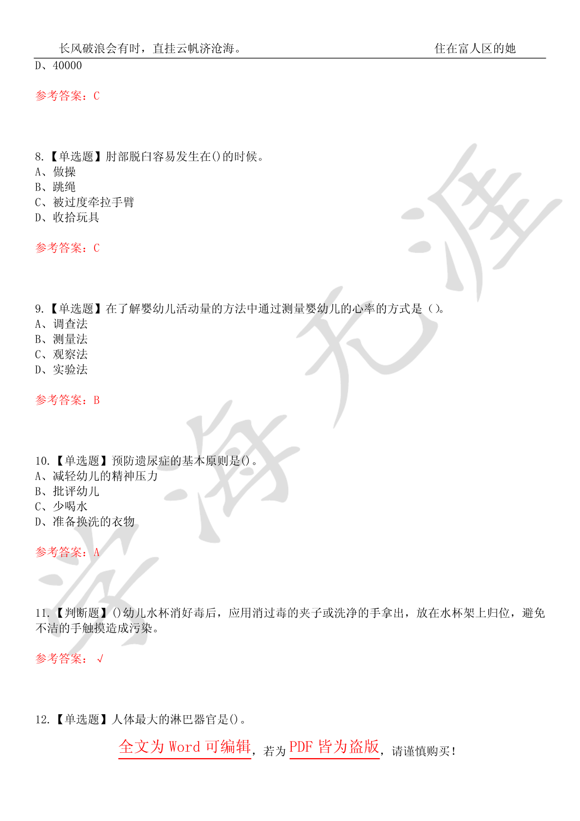 2023年保育员(中级)考试历年真题荟萃4套合1(附带答案)套卷14