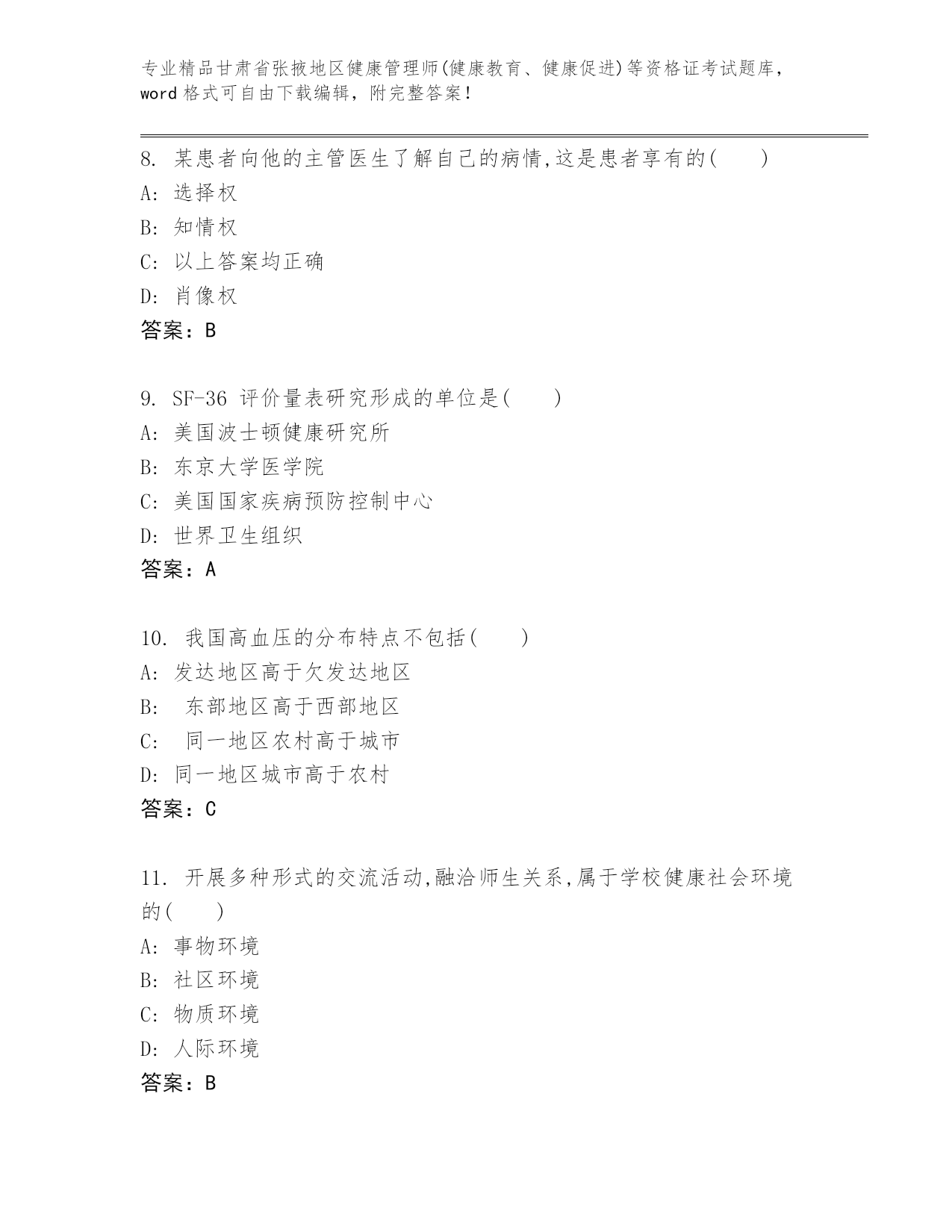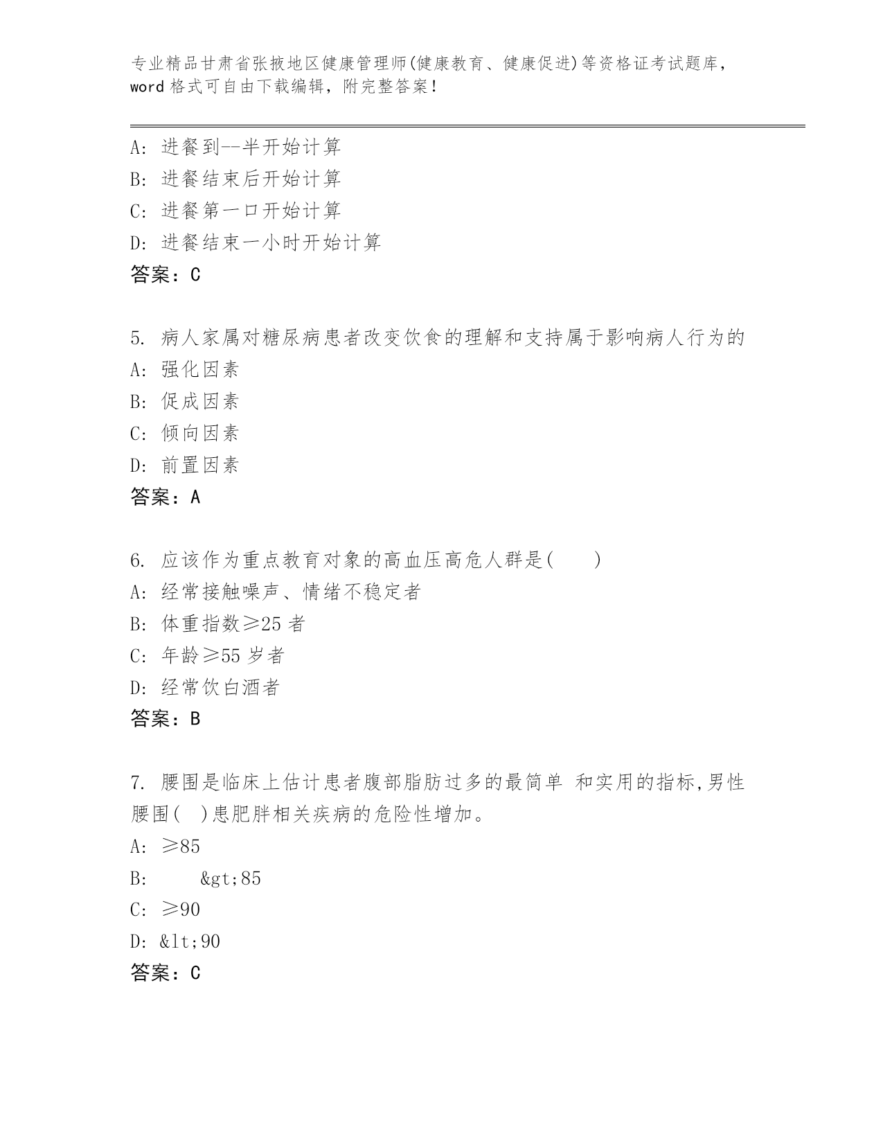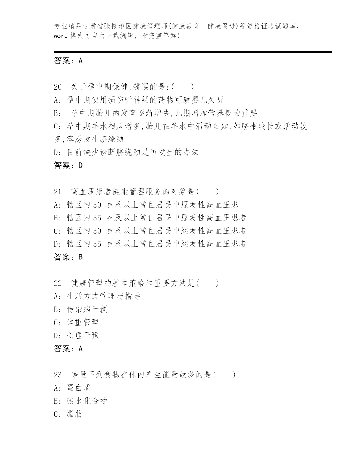 甘肃省张掖地区健康管理师(健康教育、健康促进)等资格证考试真题附答案【综合题】.docx