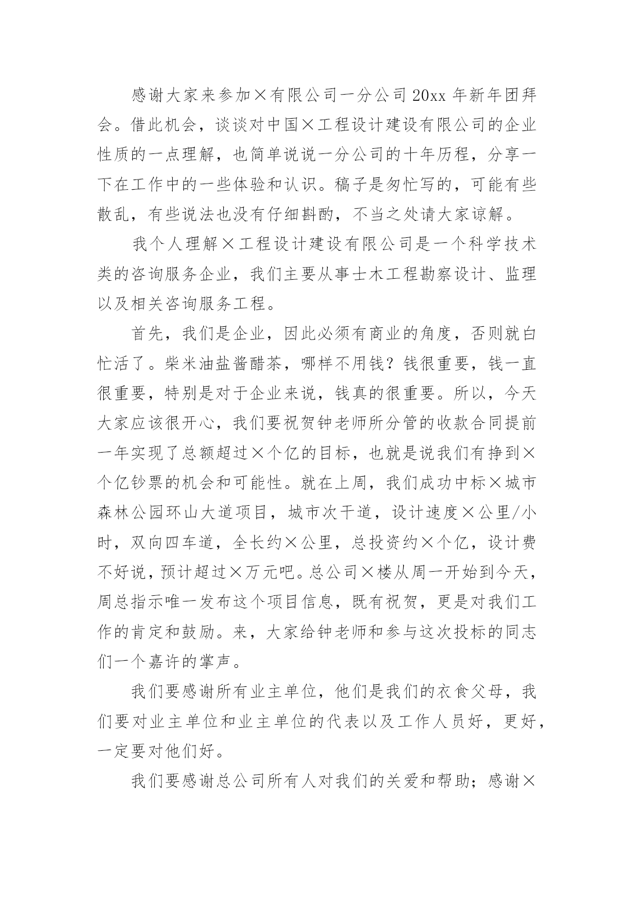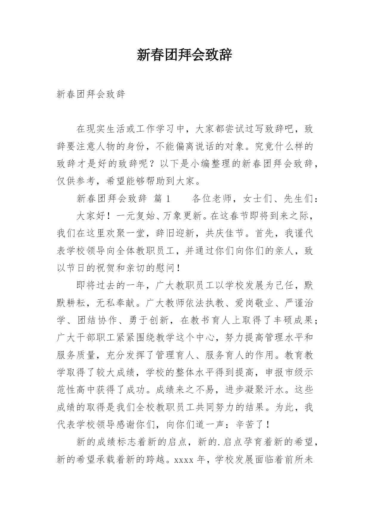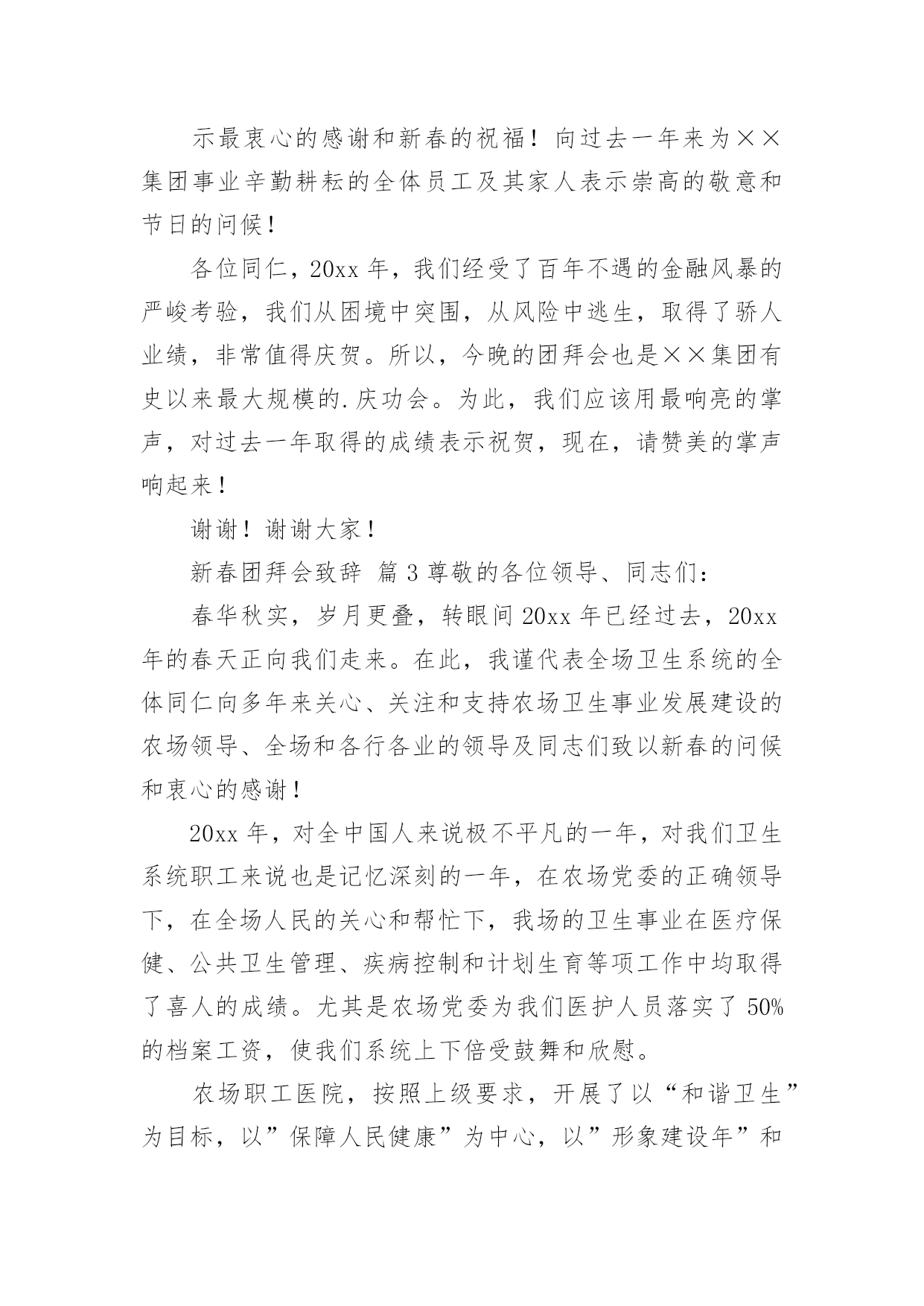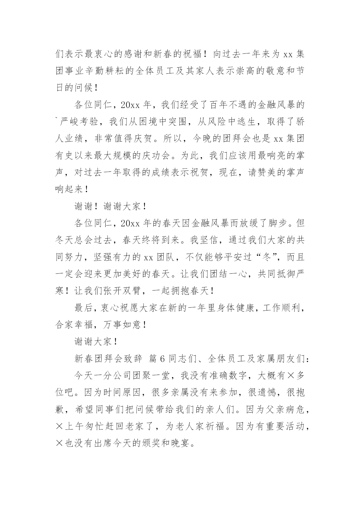 新春团拜会致辞新春团拜会致辞在现实生活或工作学习中,大家都尝试过写致辞吧,致辞要注意人物的身份,不能偏离说话的对象。究竟什么样的致辞才是好的致辞呢?以下是小编整理的新春团拜会致辞,仅供参考,希望能够帮助到大家。新春团拜会致辞篇1各位老师,女士们、先生们:大家好!一元复始、万象更新。在这春节即将到来之际,我们在这里欢聚一堂,辞旧迎新,共庆佳节。首先,我谨代表学校领导向全体教职员工,并通过你们向你们的亲人,致以节日的祝贺和亲切的慰问!即将过去的一年,广大教职员工以学校发展为己任,默默耕耘,无私奉献。广大教师依法执教、爱岗敬业、严谨治学、团结协作、勇于创新,在教书育人上取得了丰硕成果;广大干部职工紧紧围绕教学这个中心,努力提高管理水平和服务质量,充分发挥了管理育人、服务育人的作用。教育教学取得了较大成绩,学校的整体水平得到提高,申报市级示范性高中获得了成功。成绩来之不易,进步凝聚汗水。这些成绩的取得是我们全校教职员工共同努力的结果。为此,我代表学校领导感谢你们,向你们道一声:辛苦了!新的成绩标志着新的启点,新的.启点孕育着新的希望,新的希望承载着新的跨越。xxxx年,学校发展面临着前所未有的机遇和挑战。我们将进一步解放思想,更新观念,与时俱进,抓住机遇,深化改革,加快发展;我们将继续坚持“以人为本”的办学理念,紧紧依靠广大教职员工,充分发挥广大教职员工的智慧和力量;我们将加强学生政治思想工作,切实提高教学质量和办学效益,全面提高我校的综合实力与办学水平,积极创办省级示范性高中。同时,也希望广大教职员工要进一步加强学习,提高思想素质和业务水平,进一步加强师德建设。“桃李不言,下自成蹊”,我们要在思想政治上、道德品质上、教风学风上,以身作则,率先垂范,用高尚的人格魅力感染学生,用渊博的文化知识教育学生,用科学的教育方法引导学生,全面提高教育质量。让我们在校长王运跃同志的领导下,团结起来,奋力拼搏,为实现成功创办省级示范性高中的目标而努力奋斗!最后,祝全体教职员工新春幸福、阖家欢乐!谢谢!新春团拜会致辞篇2尊敬的各位领导,各位来宾,各位同仁:晚上好!在中华民族的传统节日——春节即将来临之际,我们以“不畏寒、度时艰、迎春来”为主题,隆重举行××集团新春团拜活动。借此机会,我谨代表集团公司各班子,向长期以来关心、支持××集团发展的保税区管委会的领导和同志们表示最衷心的感谢和新春的祝福!向过去一年来为××集团事业辛勤耕耘的全体员工及其家人表示崇高的敬意和节日的问候!各位同仁,20xx年,我们经受了百年不遇的金融风暴的严峻考验,我们从困境中突围,从风险中逃生,取得了骄人业绩,非常值得庆贺。所以,今晚的团拜会也是××集团有史以来最大规模的.庆功会。为此,我们应该用最响亮的掌声,对过去一年取得的成绩表示祝贺,现在,请赞美的掌声响起来!谢谢!谢谢大家!新春团拜会致辞篇3尊敬的各位领导、同志们:春华秋实,岁月更叠,转眼间20xx年已经过去,20xx年的春天正向我们走来。在此,我谨代表全场卫生系统的全体同仁向多年来关心、关注和支持农场卫生事业发展建设的农场领导、全场和各行各业的领导及同志们致以新春的问候和衷心的感谢!20xx年,对全中国人来说极不平凡的一年,对我们卫生系统职工来说也是记忆深刻的一年,在农场党委的正确领导下,在全场人民的关心和帮忙下,我场的卫生事业在医疗保健、公共卫生管理、疾病控制和计划生育等项工作中均取得了喜人的成绩。尤其是农场党委为我们医护人员落实了50%的档案工资,使我们系统上下倍受鼓舞和欣慰。农场职工医院,按照上级要求,开展了以“和谐卫生”为目标,以”保障人民健康”为中心,以”形象建设年”和“建立平安医院”活动为平台,继续深入开展“医院管理年”活动,较圆满地完成了全场人民的医疗保健卫生服务工作,完成了对全场老干部及医保人员的医疗救助及药费报销工作;顺利透过省专家组对我场艾滋病初筛实验室的检查验收;我们投入的23万余元购置的医院管理软件及投入22万余元购买的新型救护车都已经投入使用;我们还顺利地透过了总局礼貌单位的检查验收,成为总局级礼貌单位;并荣获总局级“医疗卫生工作先进单位”光荣称号。农场卫生监督所加强了对食品卫生工作的监管力度,确保了全场人民的食品安全,全年无一例食物中毒事件发生,无一例甲流发生,全场传染病发病率均控制在规范标准之内,疾控中心荣获总局“20xx年度垦区病病控制工作先进群众”称号。一年来,我们所有成绩的取得,与上级领导、农场党委、全场各单位、各部门领导和同志们的大力支持与帮忙是分不开的。我们深知在我们的肩上担子还很重,在我们的职业行为中,也还存在着这样或那样的问题与不足,但我们有决心有信心加以改善与提高。尽管医疗卫生事业改革步履艰难,尽管在补偿机制不健全的状况下卫生事业发展还面临许多困难,但我们会终贞不渝地坚持这