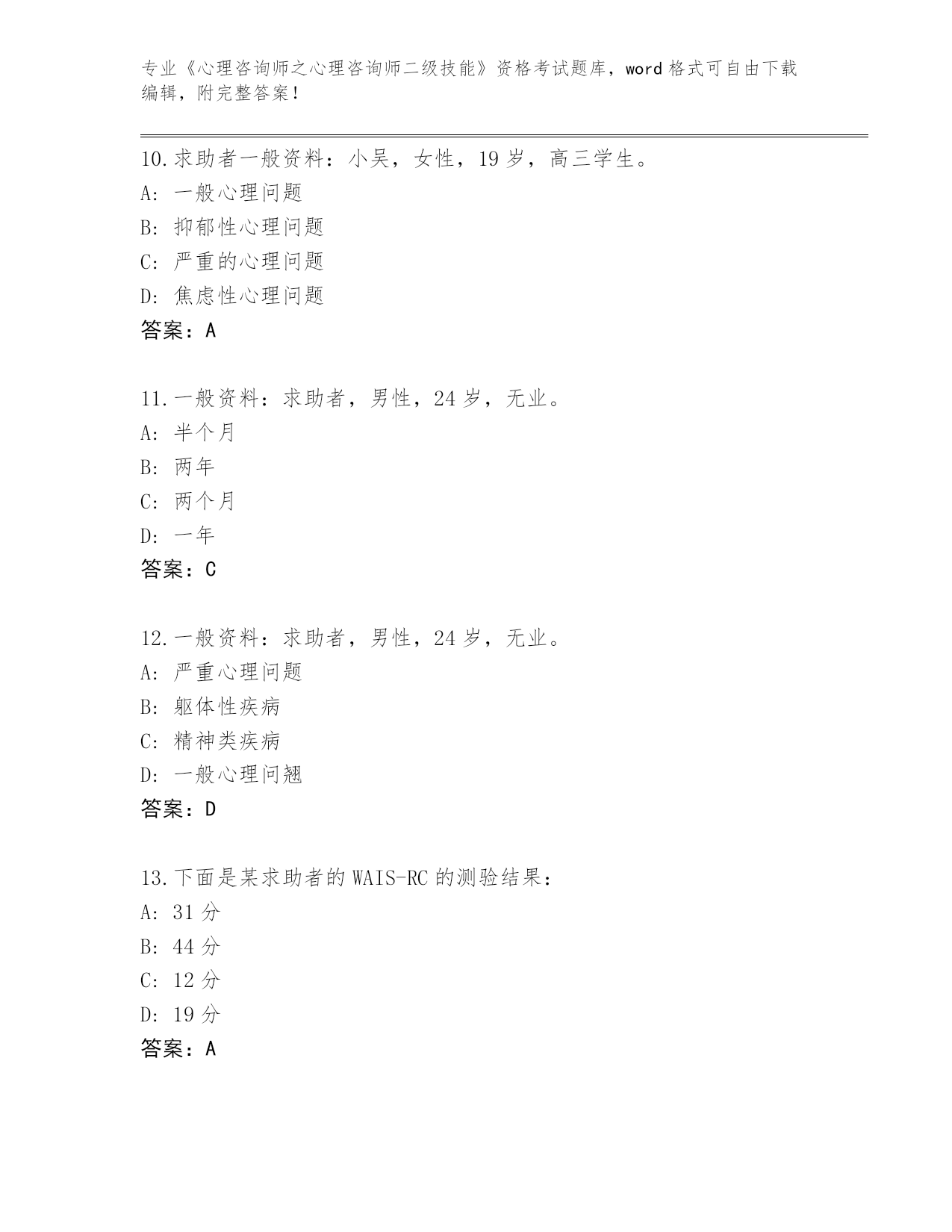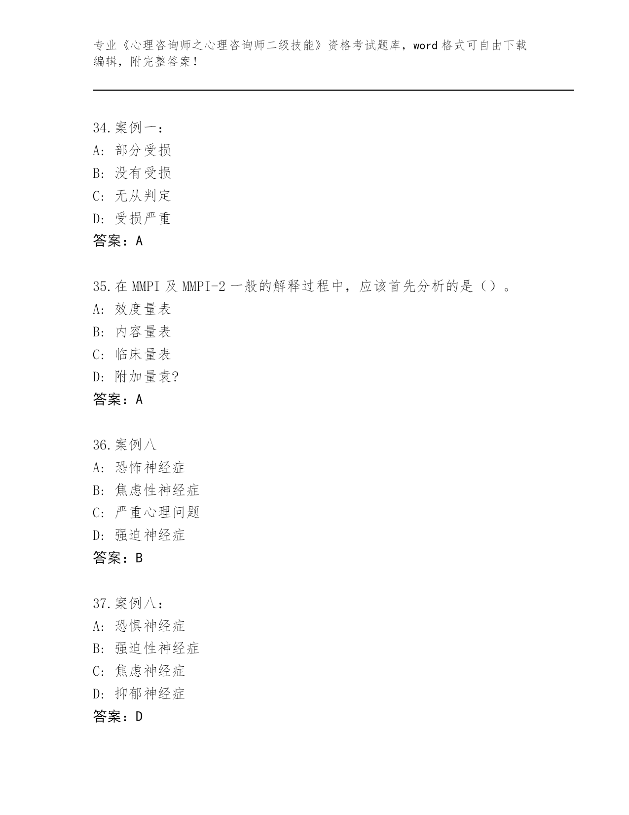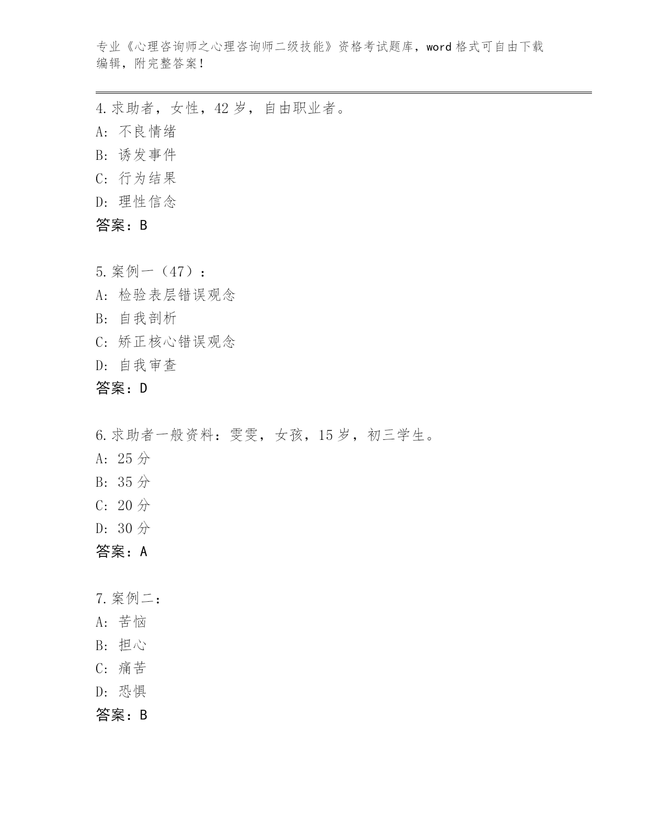 广东省遂溪县完整版《心理咨询师之心理咨询师二级技能》考试必考200题内部题库带答案(夺分金卷)