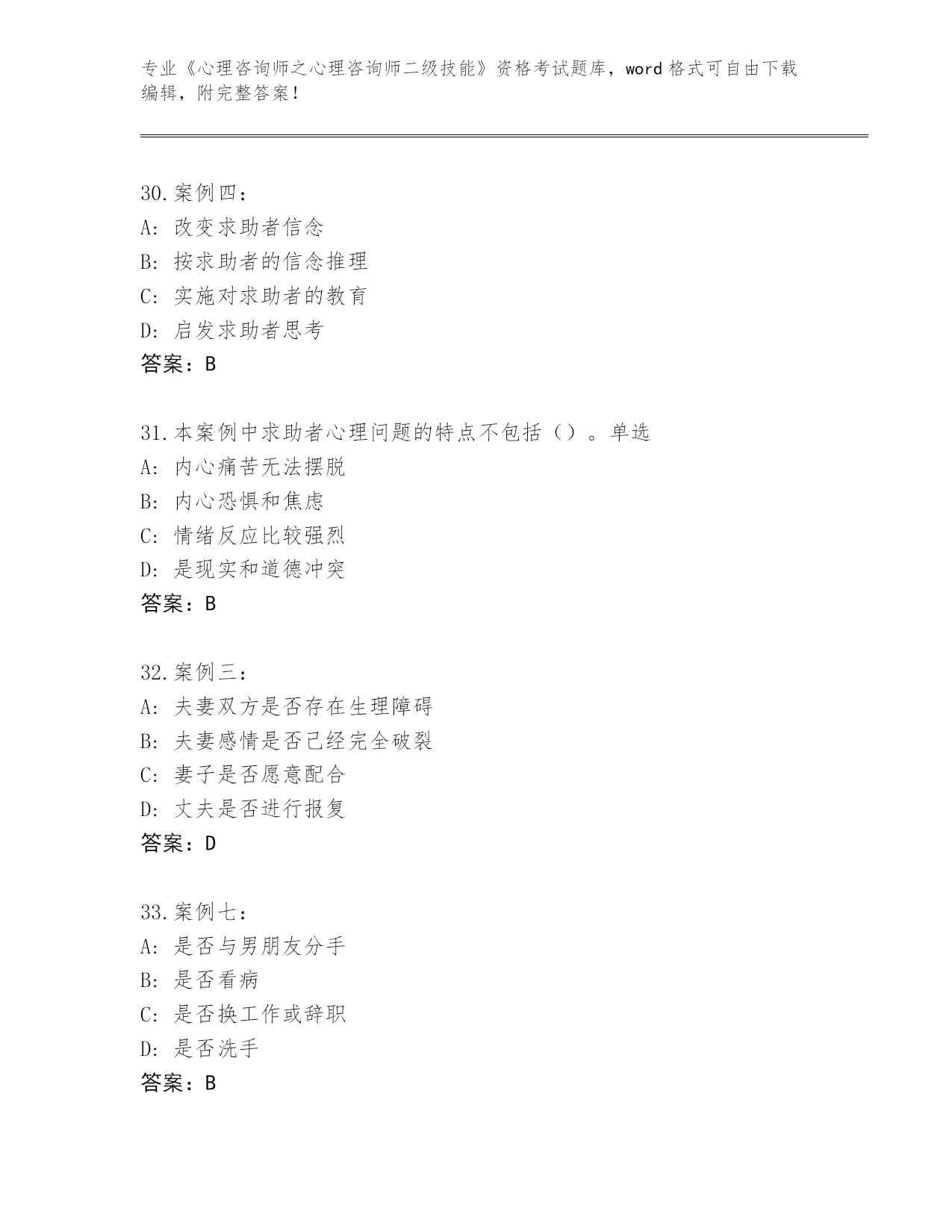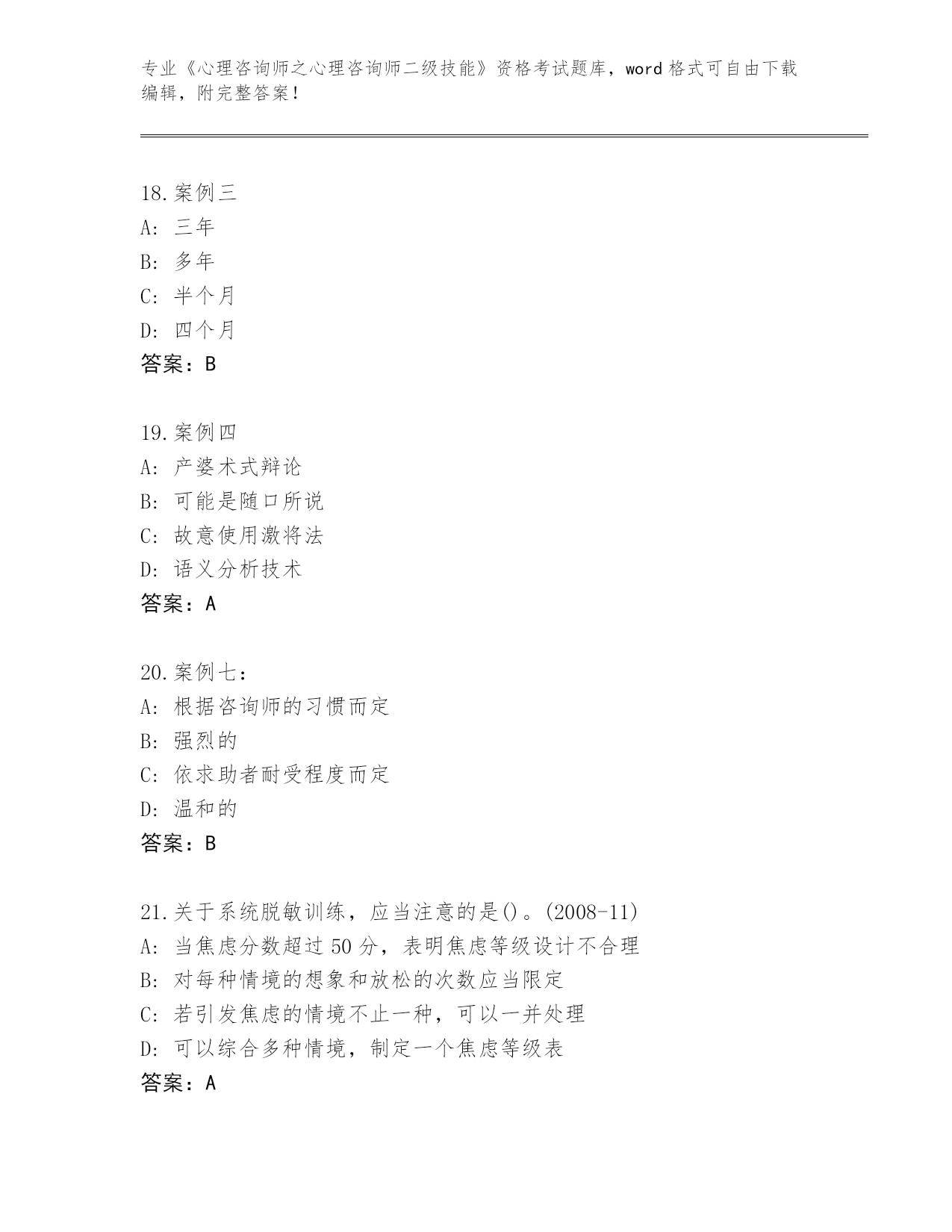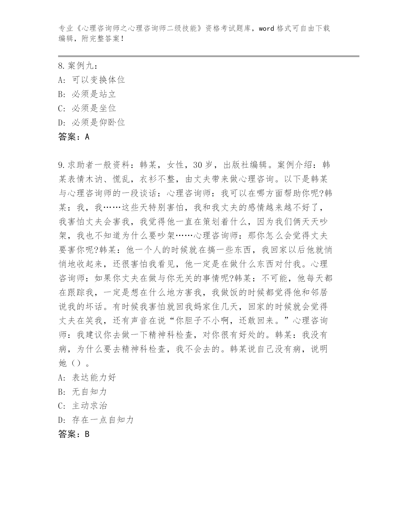 湖北省《心理咨询师之心理咨询师二级技能》资格考试完整题库含答案(夺分金卷)