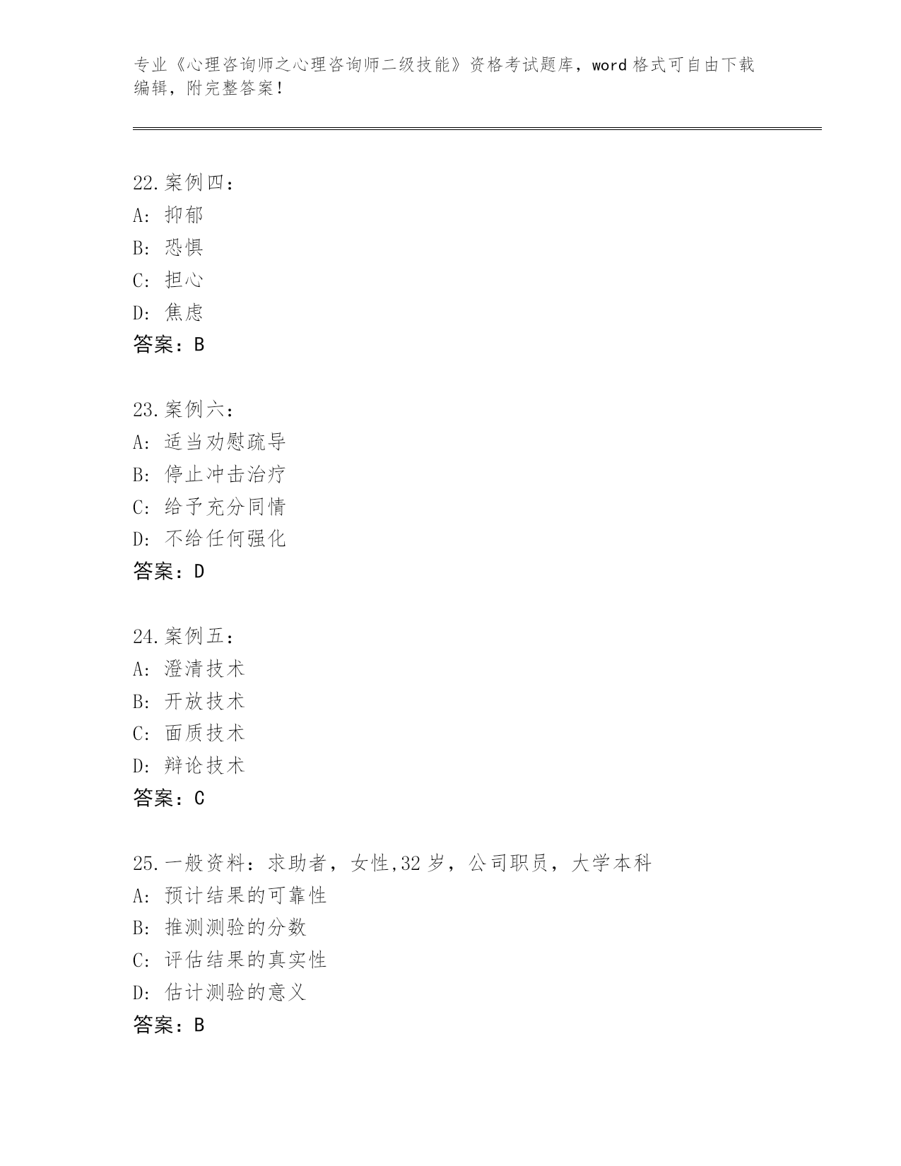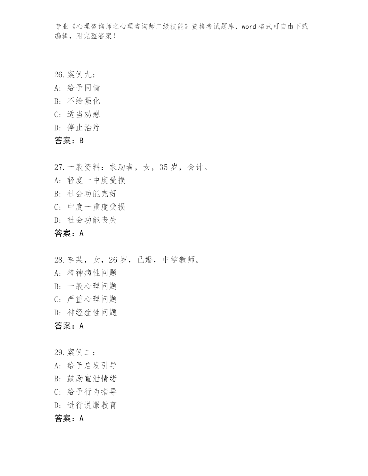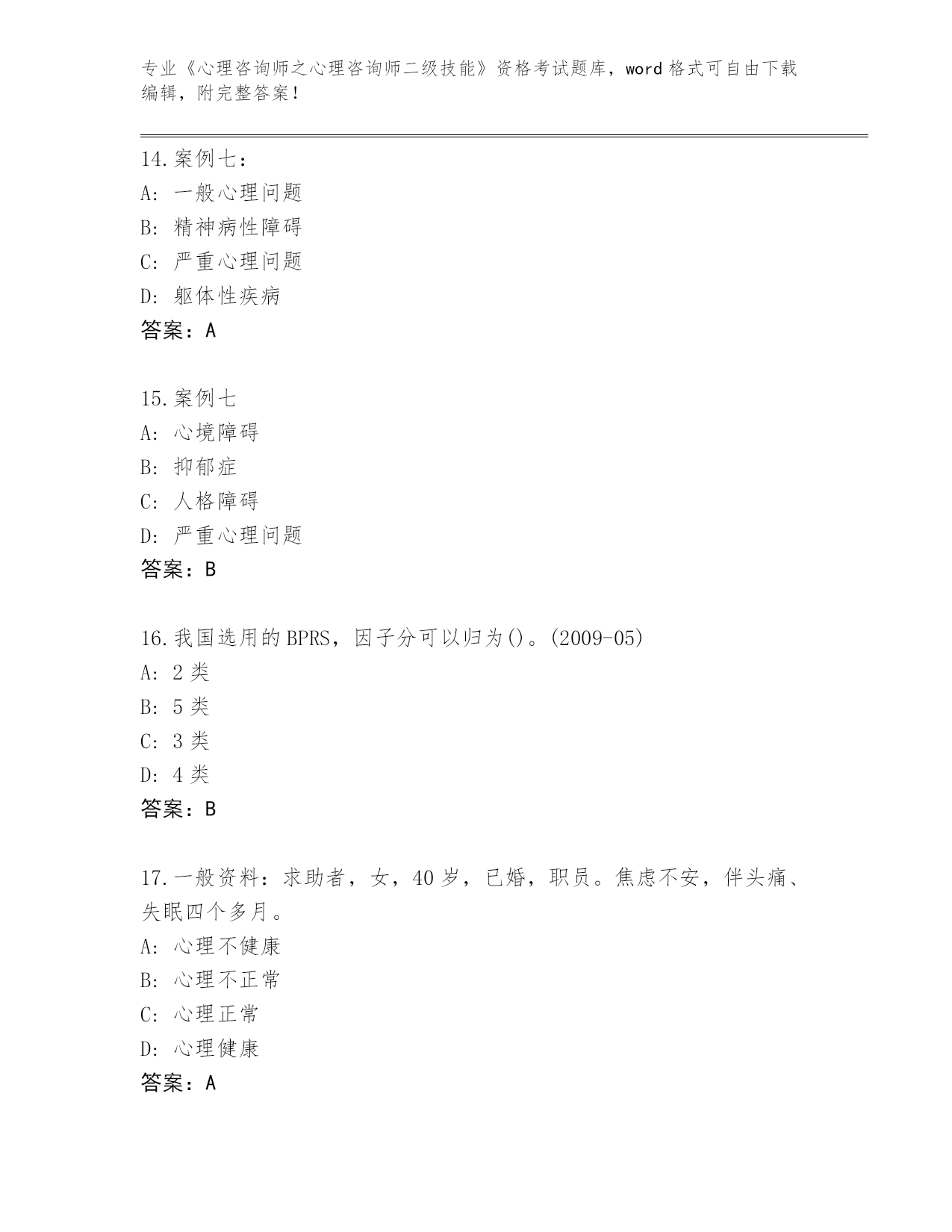 陕西省眉县整理《心理咨询师之心理咨询师二级技能》资格考试完整题库(夺分金卷)