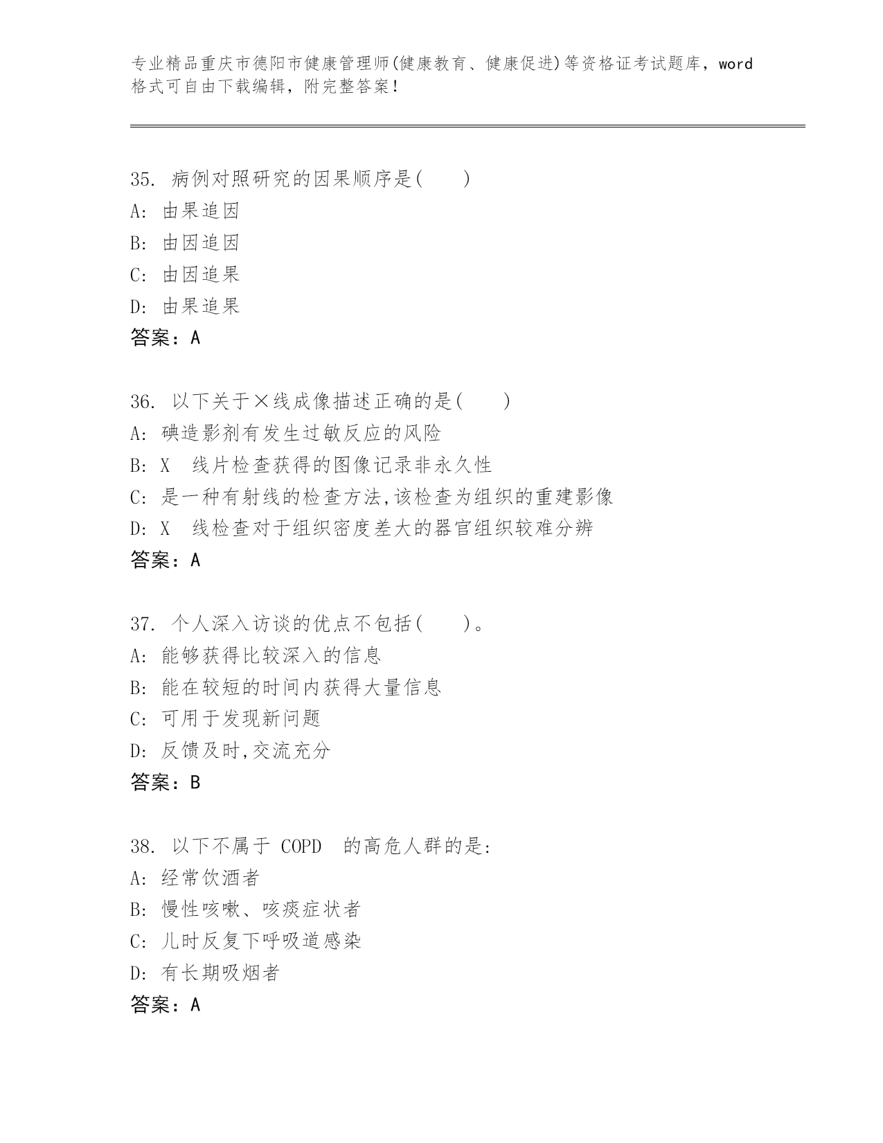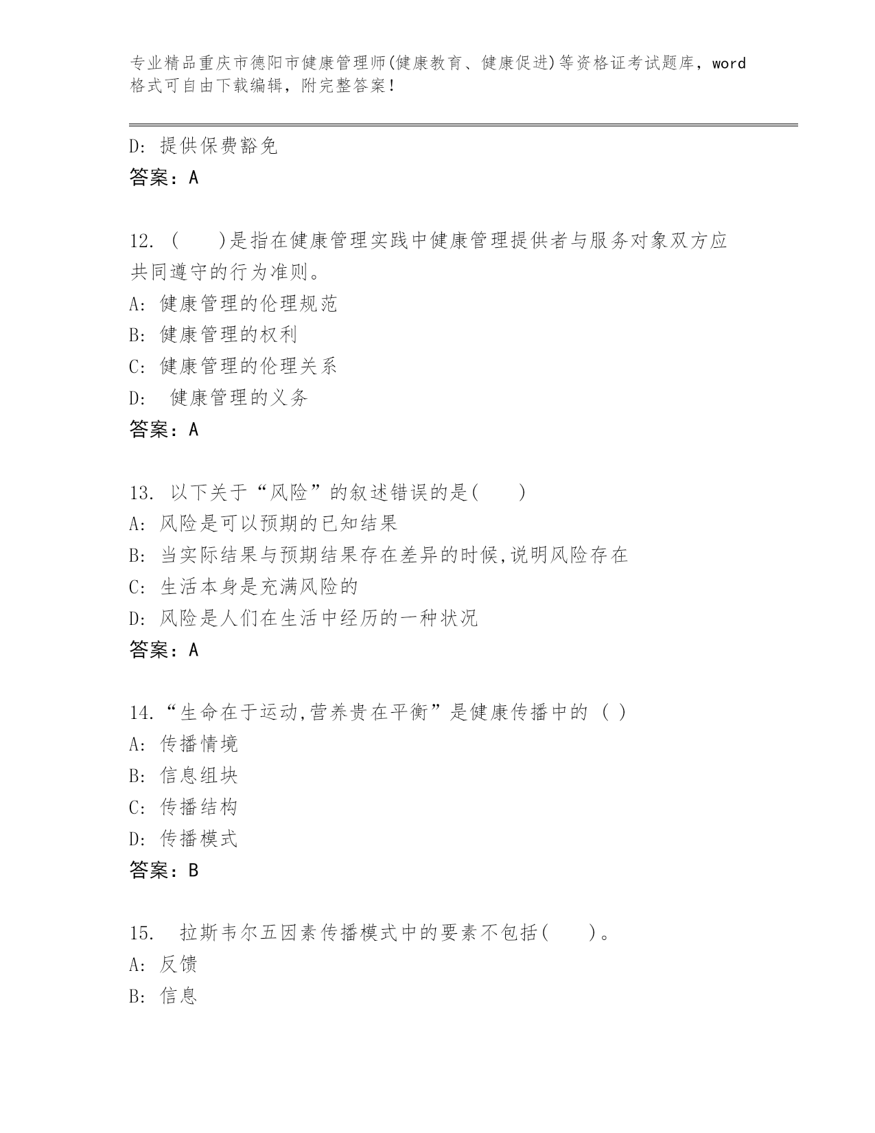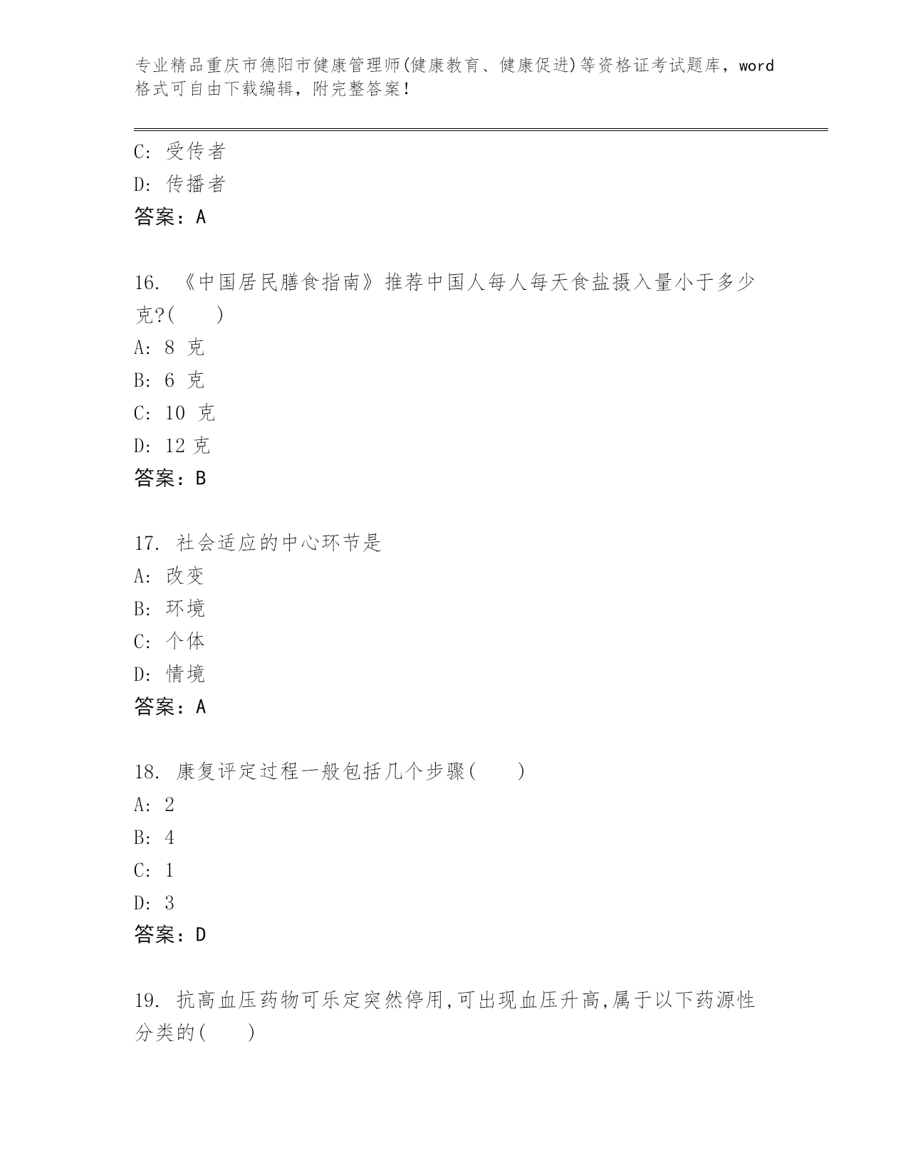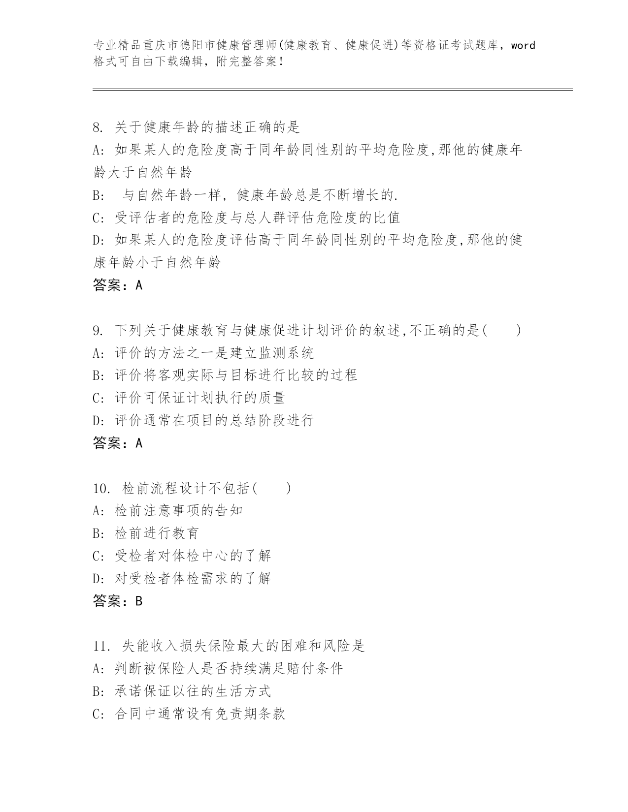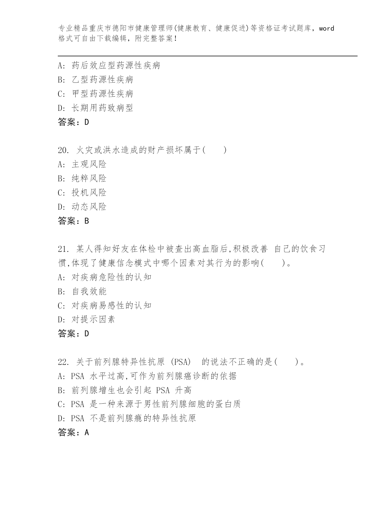 精品重庆市德阳市健康管理师(健康教育、健康促进)等资格证考试大全含答案【突破训练】.docx