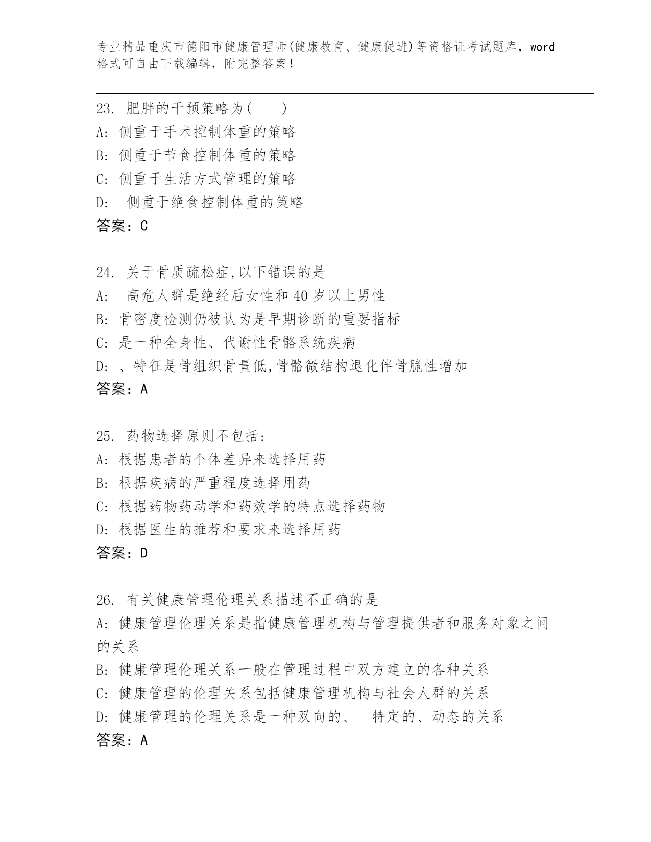 精品重庆市德阳市健康管理师(健康教育、健康促进)等资格证考试大全含答案【突破训练】