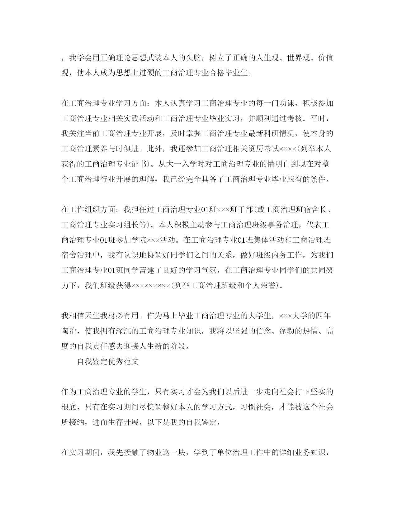 2022工商管理专业毕业生自我鉴定参考参考范文模板
