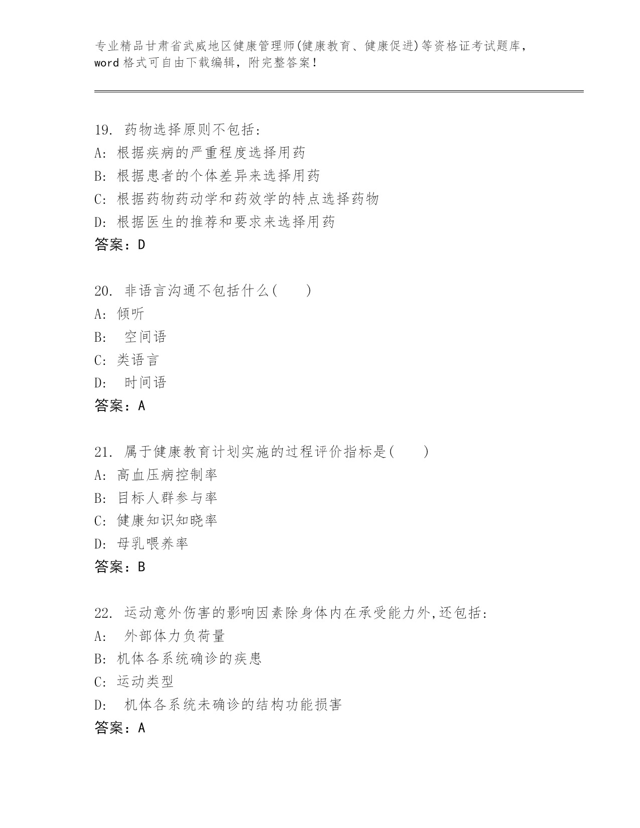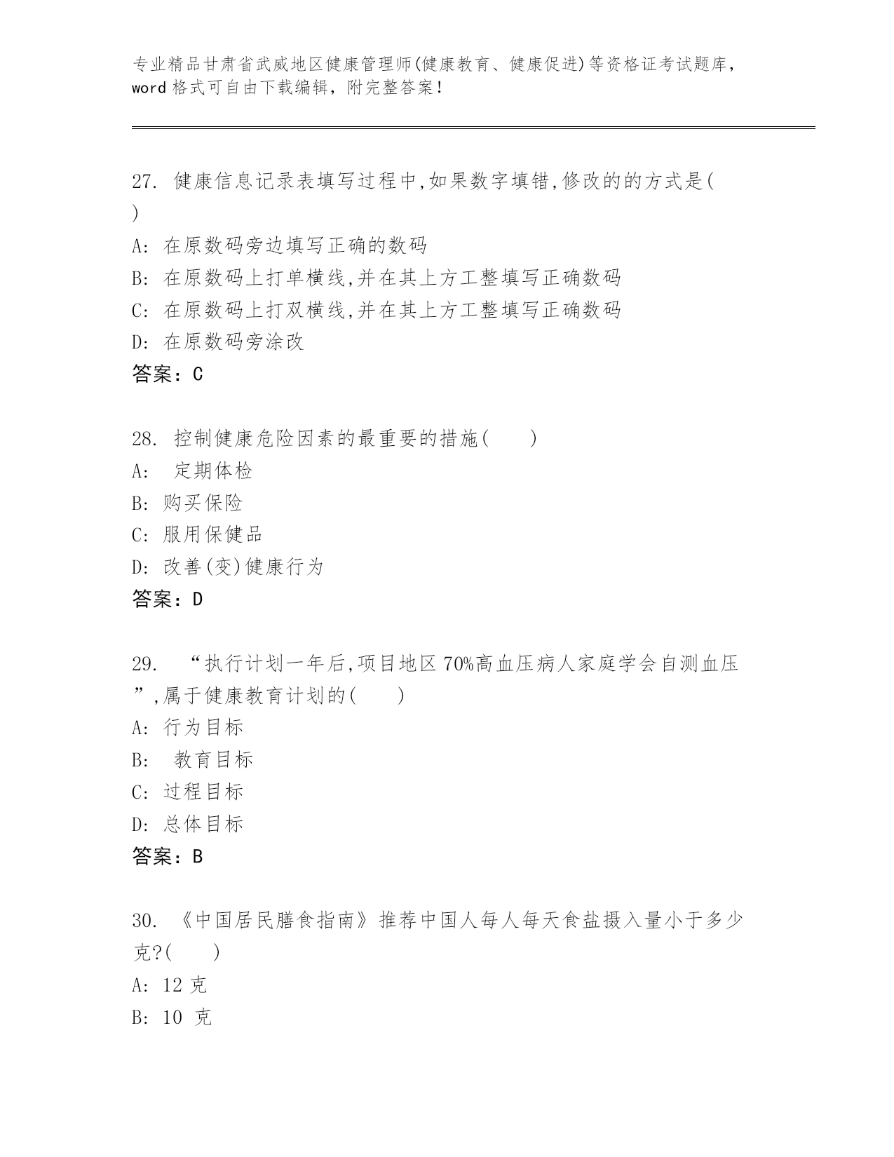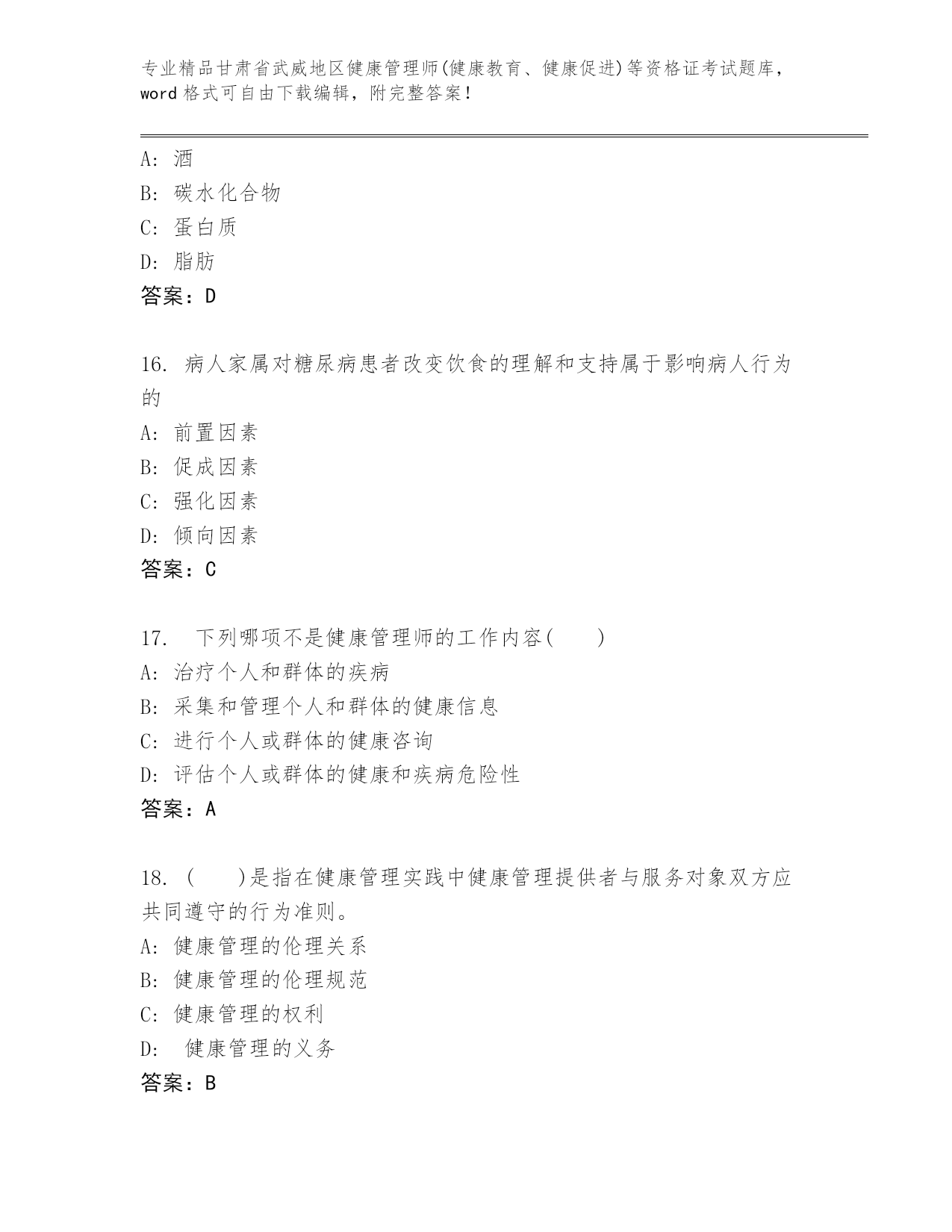 最新甘肃省武威地区健康管理师(健康教育、健康促进)等资格证考试内部题库附答案【巩固】.docx