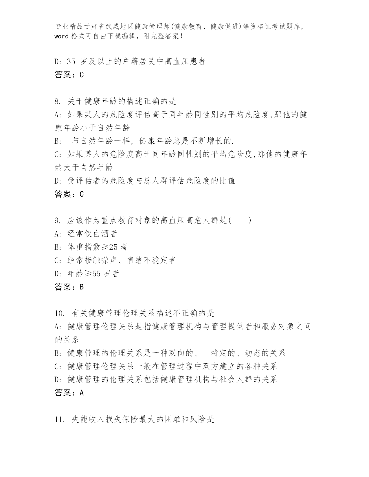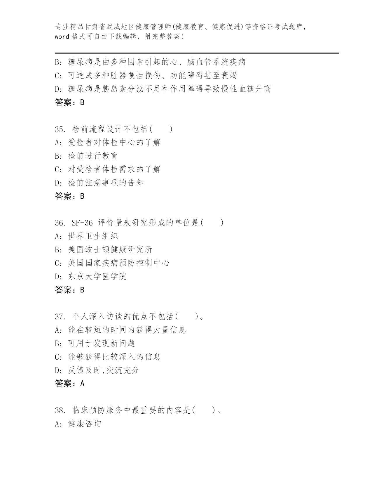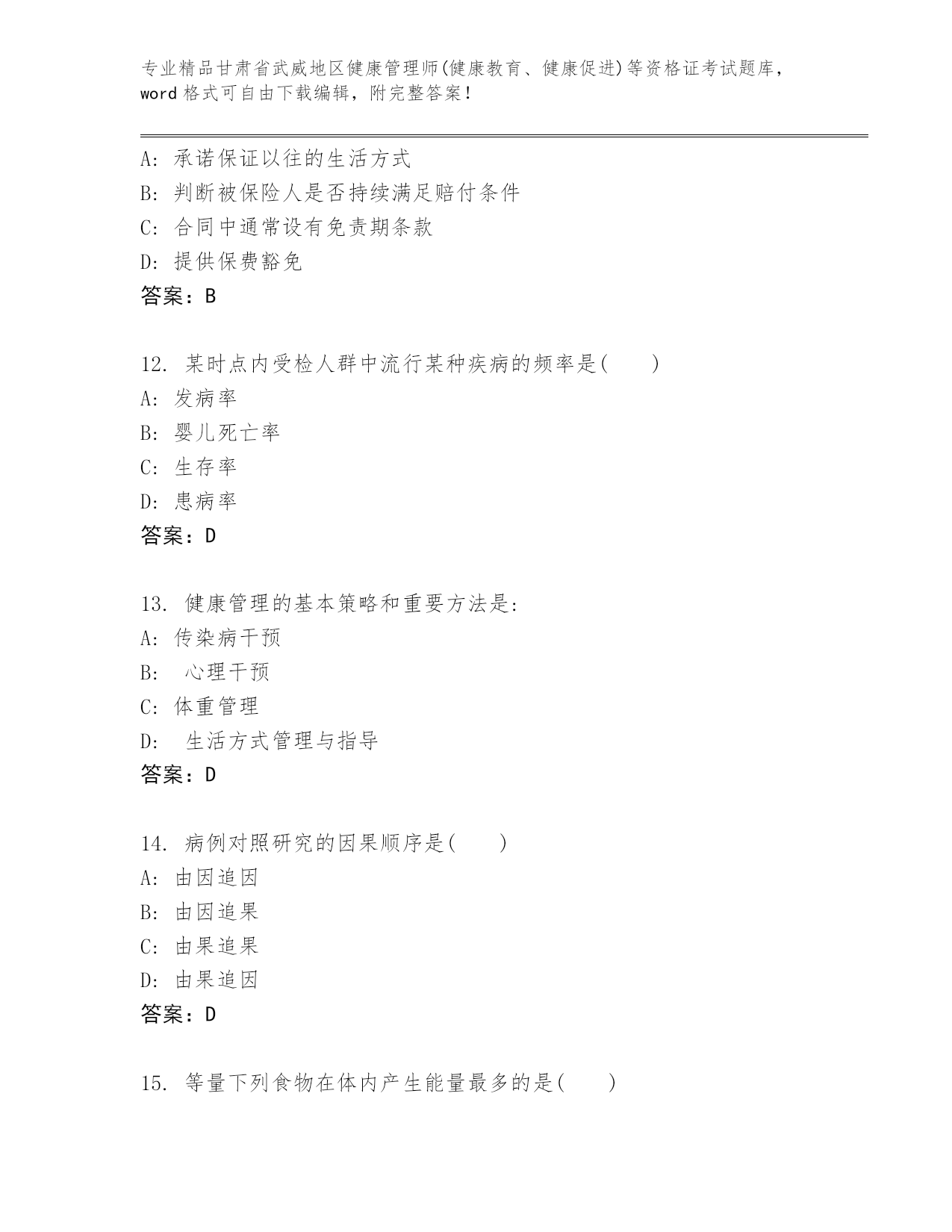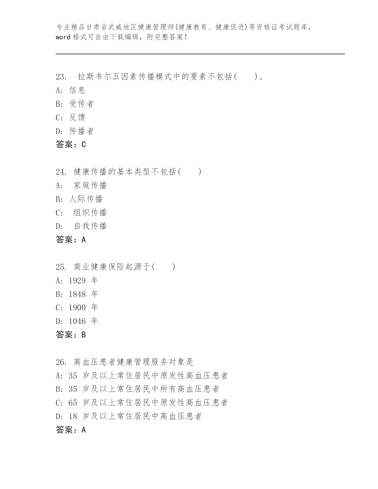 最新甘肃省武威地区健康管理师(健康教育、健康促进)等资格证考试内部题库附答案【巩固】.docx