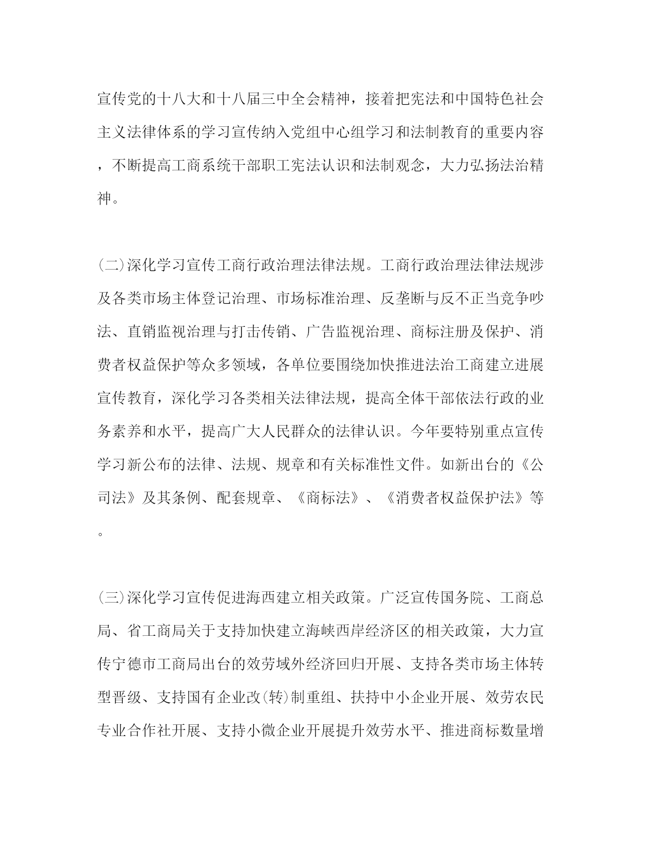 工商局六五普法工作参考计划为了进一步推进我区工商行政治理系统普法工作,实在提高工商干部的法制认识和依法行政水平,不断加强运营者、消费者的法制观念。依照省市局及蕉城区政府的普法工作部署,并结合我局实际情况,特制订本年度法制宣传教育工作打算。一、指导思想高举中国特色社会主义伟大旗帜,以邓小平理论和"三个代表"重要思想为指导,深化贯彻落实科学开展观与"十八大"会议精神,紧紧围绕我区"十二五"时期经济社会开展的目的任务,按照《"六五"普法依法治理规划》,坚持法制宣传教育与社会主义核心价值体系教育相结合、与社会主义法治理念教育相结合、与社会主义公民认识教育相结合、与法治实践相结合,深化开展法制宣传教育,深化推进依法治理,大力弘扬社会主义法治精神,突出重点,着力提高系统领导干部和行政执法人员以及监管效劳对象的法律素养,为我区工商行政治理事业提供坚实的法制保障。二、宣传重点(一)大力宣传以宪法为核心的中国特色社会主义法律体系。深化学习宣传党的十八大和十八届三中全会精神,接着把宪法和中国特色社会主义法律体系的学习宣传纳入党组中心组学习和法制教育的重要内容,不断提高工商系统干部职工宪法认识和法制观念,大力弘扬法治精神。(二)深化学习宣传工商行政治理法律法规。工商行政治理法律法规涉及各类市场主体登记治理、市场标准治理、反垄断与反不正当竞争吵法、直销监视治理与打击传销、广告监视治理、商标注册及保护、消费者权益保护等众多领域,各单位要围绕加快推进法治工商建立进展宣传教育,深化学习各类相关法律法规,提高全体干部依法行政的业务素养和水平,提高广大人民群众的法律认识。今年要特别重点宣传学习新公布的法律、法规、规章和有关标准性文件。如新出台的《公司法》及其条例、配套规章、《商标法》、《消费者权益保护法》等。(三)深化学习宣传促进海西建立相关政策。广泛宣传国务院、工商总局、省工商局关于支持加快建立海峡西岸经济区的相关政策,大力宣传宁德市工商局出台的效劳域外经济回归开展、支持各类市场主体转型晋级、支持国有企业改(转)制重组、扶持中小企业开展、效劳农民专业合作社开展、支持小微企业开展提升效劳水平、推进商标数量增长、商标质量提升等一系列优惠措施,结合实际加强政策的解读、指导和贯彻落实,更好地效劳"六新大宁德"建立。(四)深化推进法治工商建立。认真贯彻落实国家工商总局《关于加快推进法治工商建立的意见》、《工商行政治理机关法治工商建立评价指标体系》和省局《关于加快推进法治工商建立的施行意见》要求,大力宣传《指标体系》与《意见》对推进法治工商建立工作的重要意义,积极宣传本单位贯彻落实的详细情况,及时宣传依法行政工作获得的进展和成效,扎实推进法治工商建立。三、普法对象和工作要求(一)加强对执法队伍的法制宣传教育1、坚持领导干部带头学法制度,实在提高各级领导干部的依法行政才能。接着坚持和完善党组中心组集体学法制度,每年不少于两次。要坚持理论与实践、学习与运用相统一,不断提高领导干部驾驭全面工作的才能。领导要围绕区委、区政府和省、市工商局的严重决策部署,以及区局要处理的严重课题等,深化基层开展调查研究,有针对性地处理工商执法中的难点和热点征询题。2、狠抓行政执法人员特别是基层执法人员的培训,提高其整体法律业务素养,不断提高监管执法的效能和水平。要采取集中与分散、单位组织与个人自学相结合、学习和工作有机结合、积极利用远程教育系统上网学习等多种方式,提高培训效果。每年度每个人学法的时间累计不得少于40学时。3、加强对系统法制机构的人员、法制员、案件主办人的宣传教育。主要进展新公布法律法规、案件核审、文书使用及新情势下如何搞好执法监视的综合培训,提高其指导、协调、综合处理征询题的才能。4、充分利用市局红盾信息网,开展法律法规解答、案例分析、疑难案件讨论、最新执法动态发布、执法和监管经历交流、网上答题竞赛、前沿性征询题讨论等活动,营建上下联动、时时学习、处处提高的学习气氛。(二)进一步加强对社会的培训宣传教育1、接着深化开展"法律六进"主题活动。深化法律"进机关、进乡村、进社区、进企业、进学校、进单位"活动,扩大法制宣传覆盖面,依照不同地区、不同部门、不同行业和不同人群的实际,采取多种方式和途径,进一步推进普法向社会各领域、各行业、各方面延伸,大力加强基层工商行政治理机关、偏僻乡村、新建社区、学校、企业和单位以及非公企业、新社会组织等法制宣传,加强城乡接边、集贸市场、流淌人口聚居区等法制宣传。2、深化开展主题法制宣传活动。充分利用"3.15"国际消费者权益日、诚信兴商宣传月、"12.4"全国法制宣传日等重点宣传时段,扩大宣传面,加强宣传效应。一要充分利用广播、电视、报刊等媒体和采取法律征询、知识竞赛、文艺表演等宣传方式,大力开展宣传教育。二