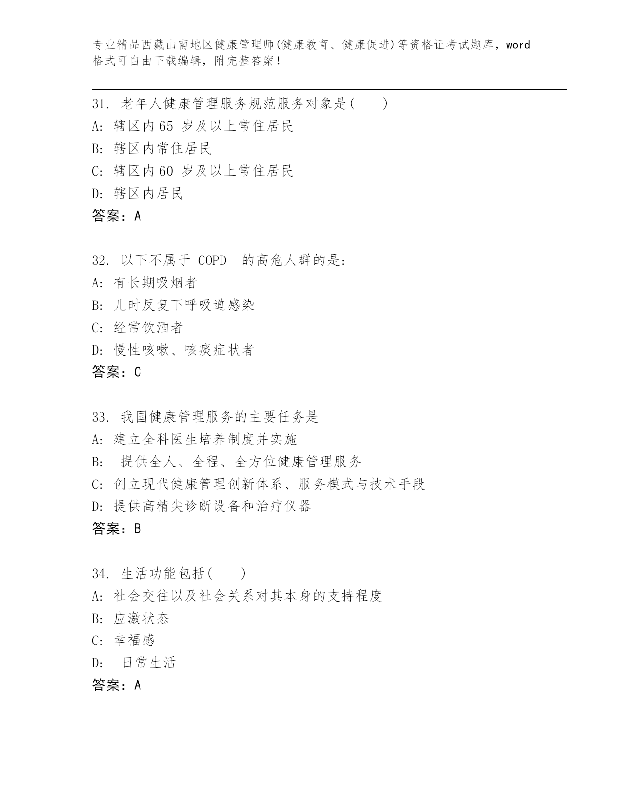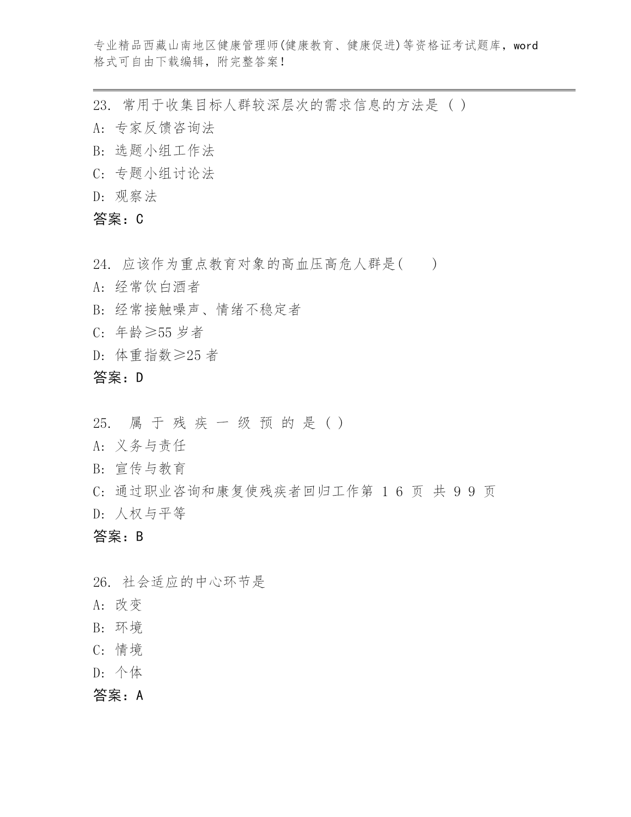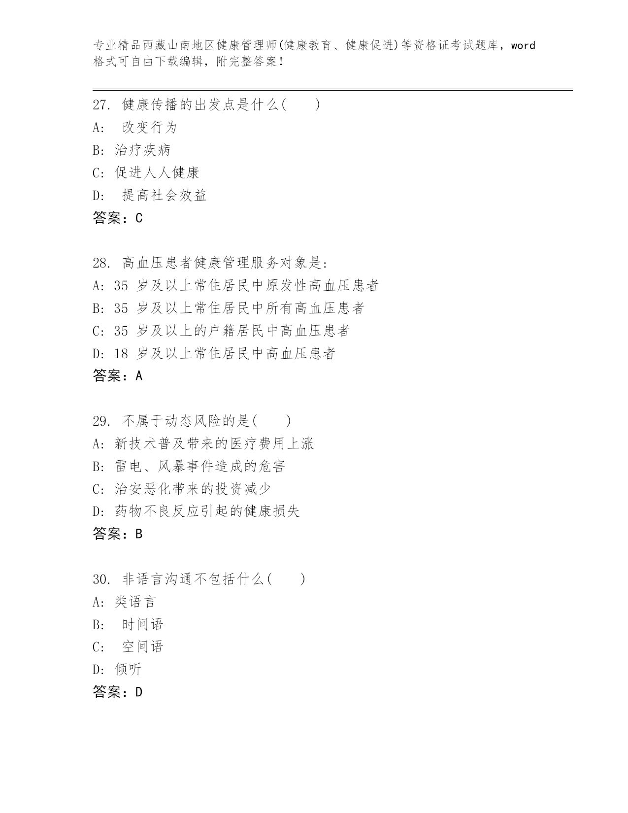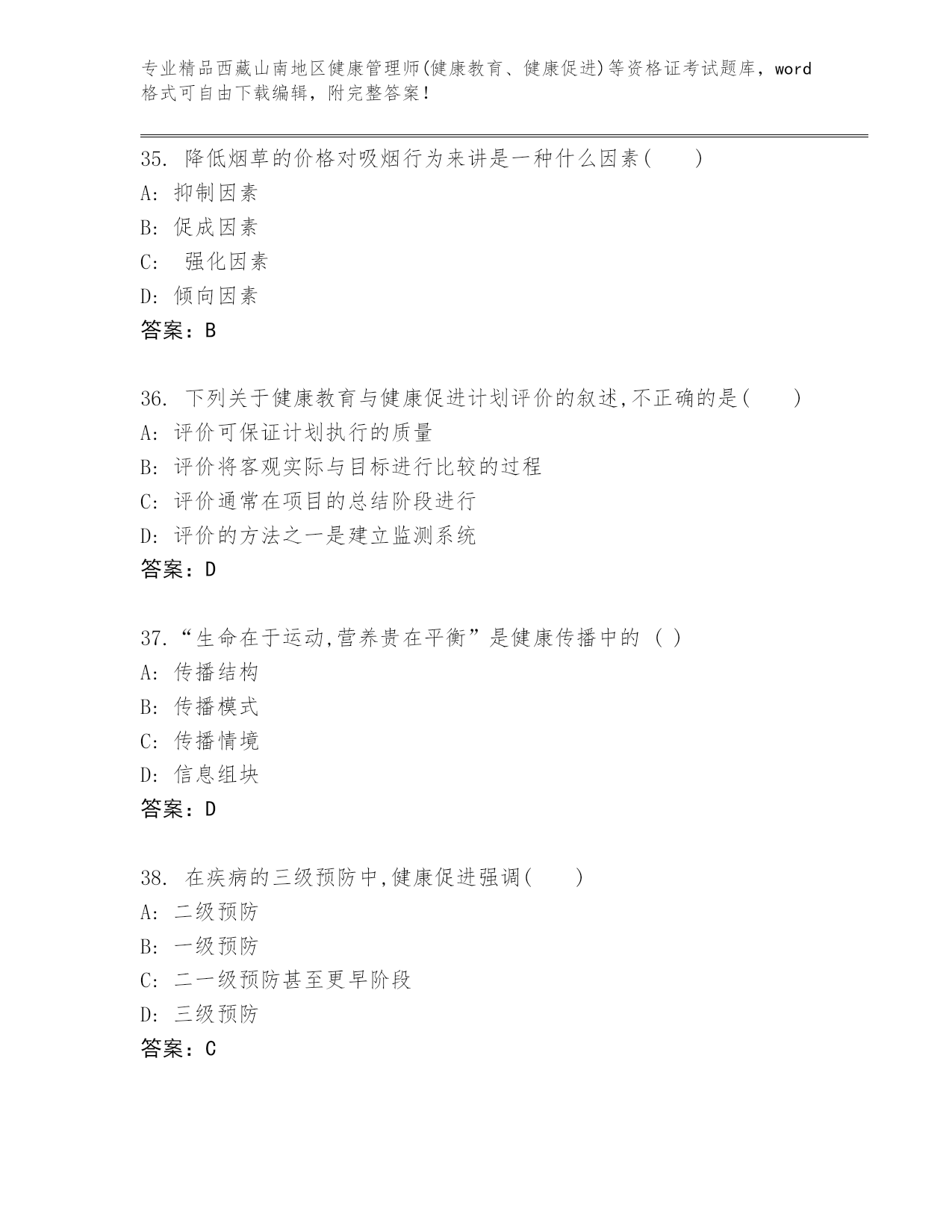 精品西藏山南地区健康管理师(健康教育、健康促进)等资格证考试通用题库含答案(培优A卷).docx