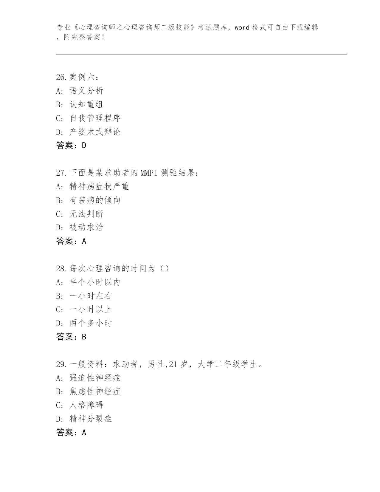 2024年黑龙江省茄子河区《心理咨询师之心理咨询师二级技能》考试题库附答案(培优A卷)