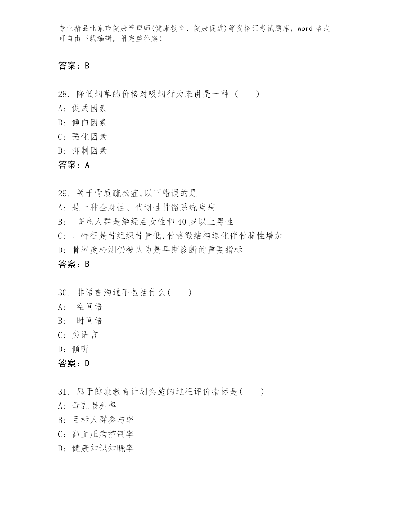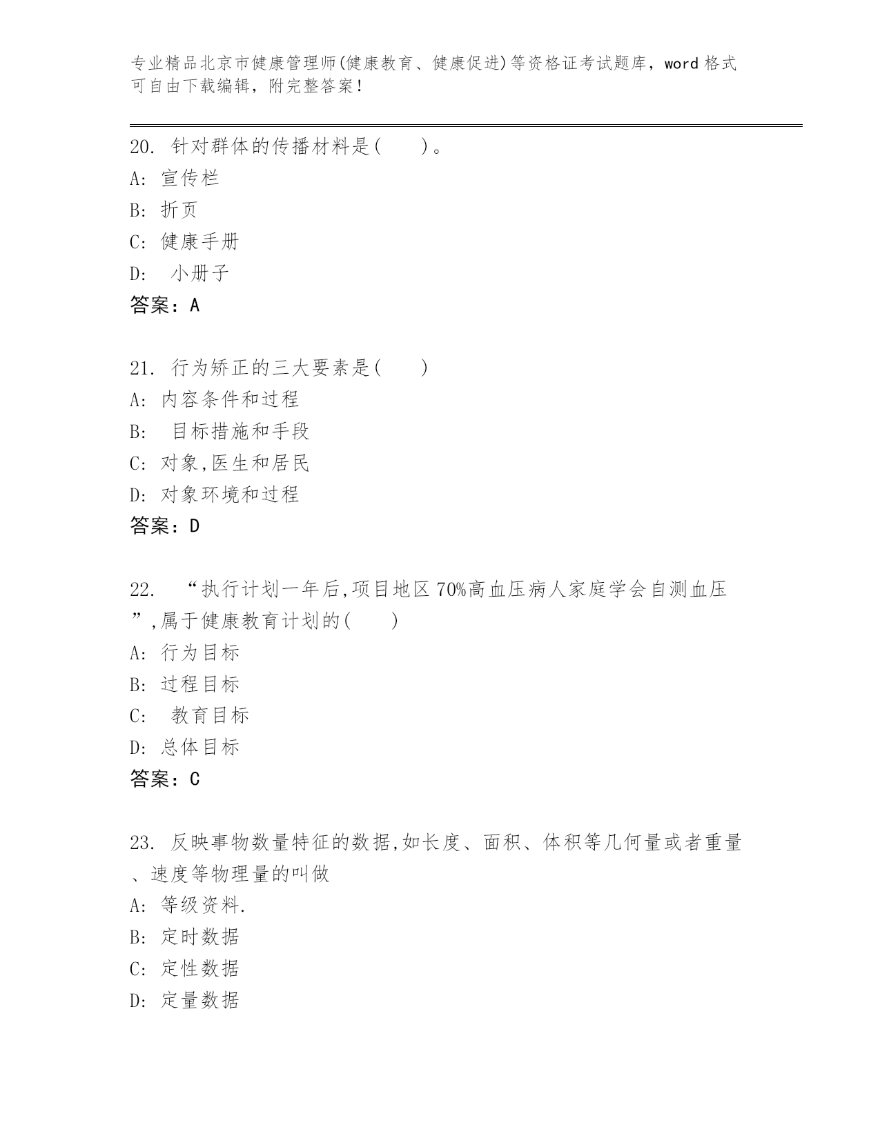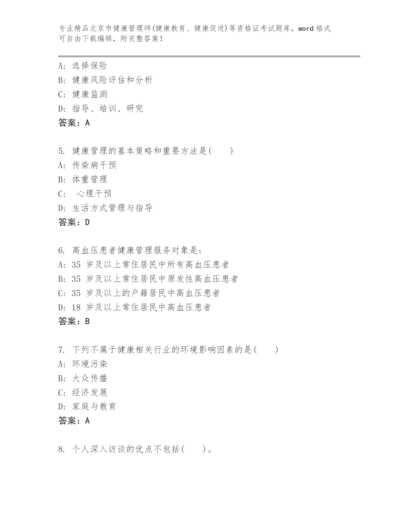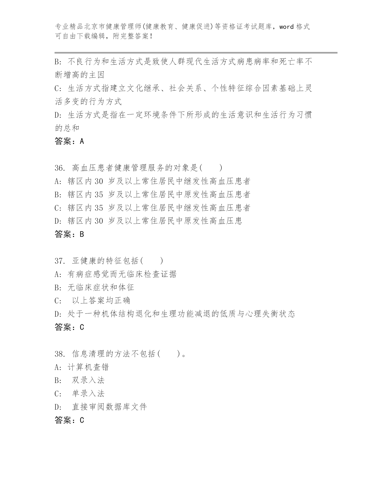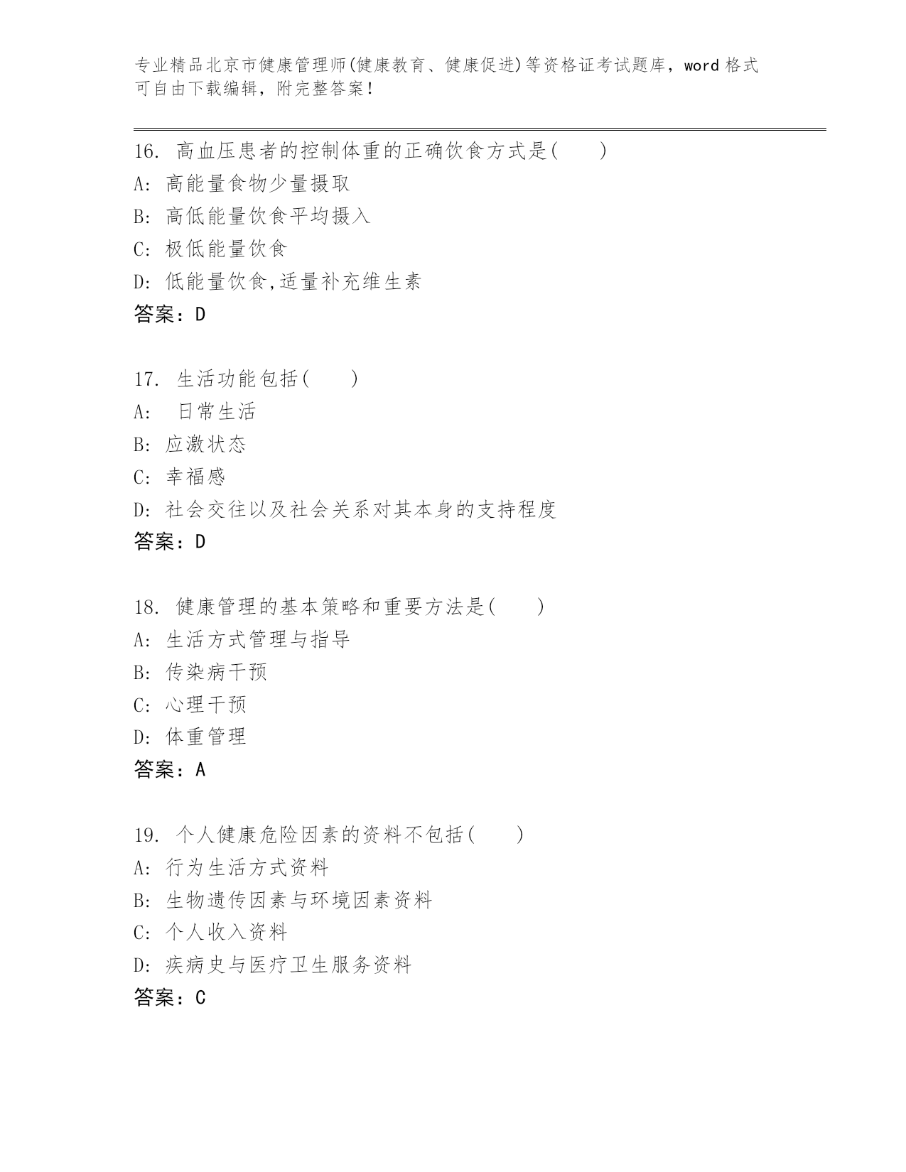 精心整理北京市健康管理师(健康教育、健康促进)等资格证考试真题及答案参考.docx