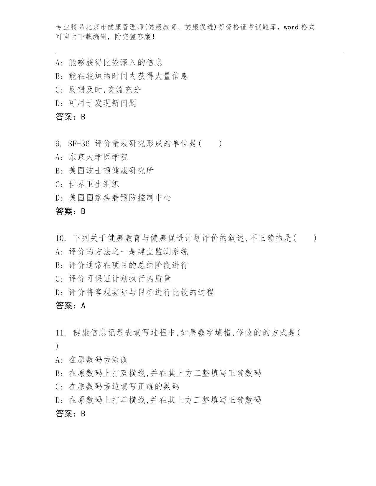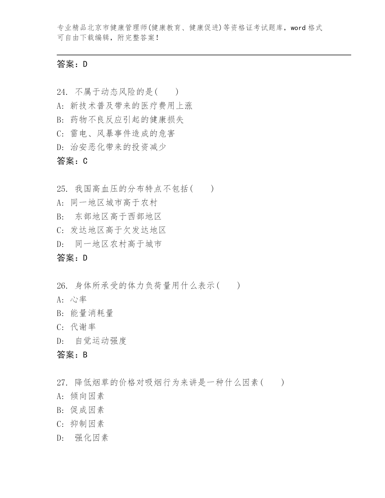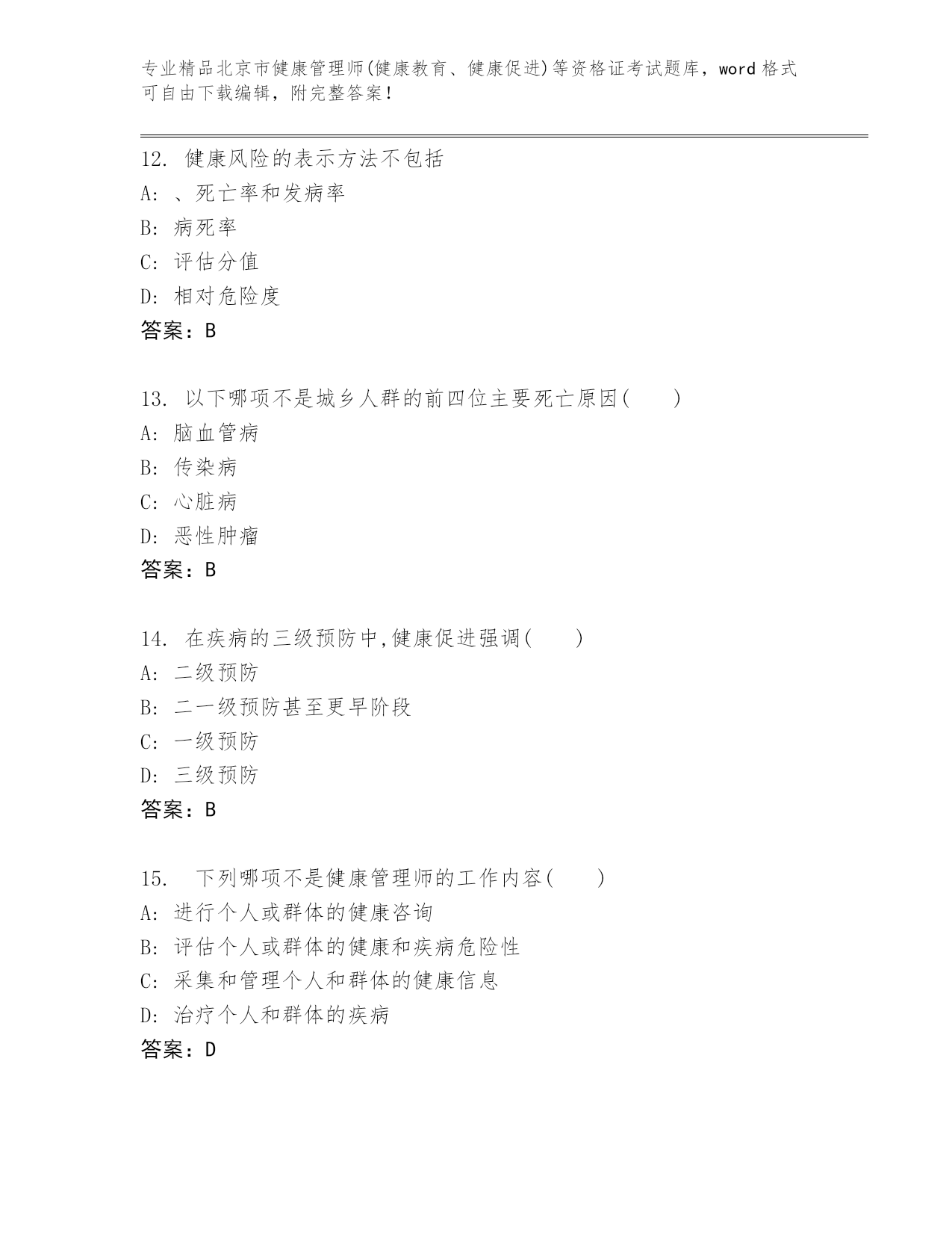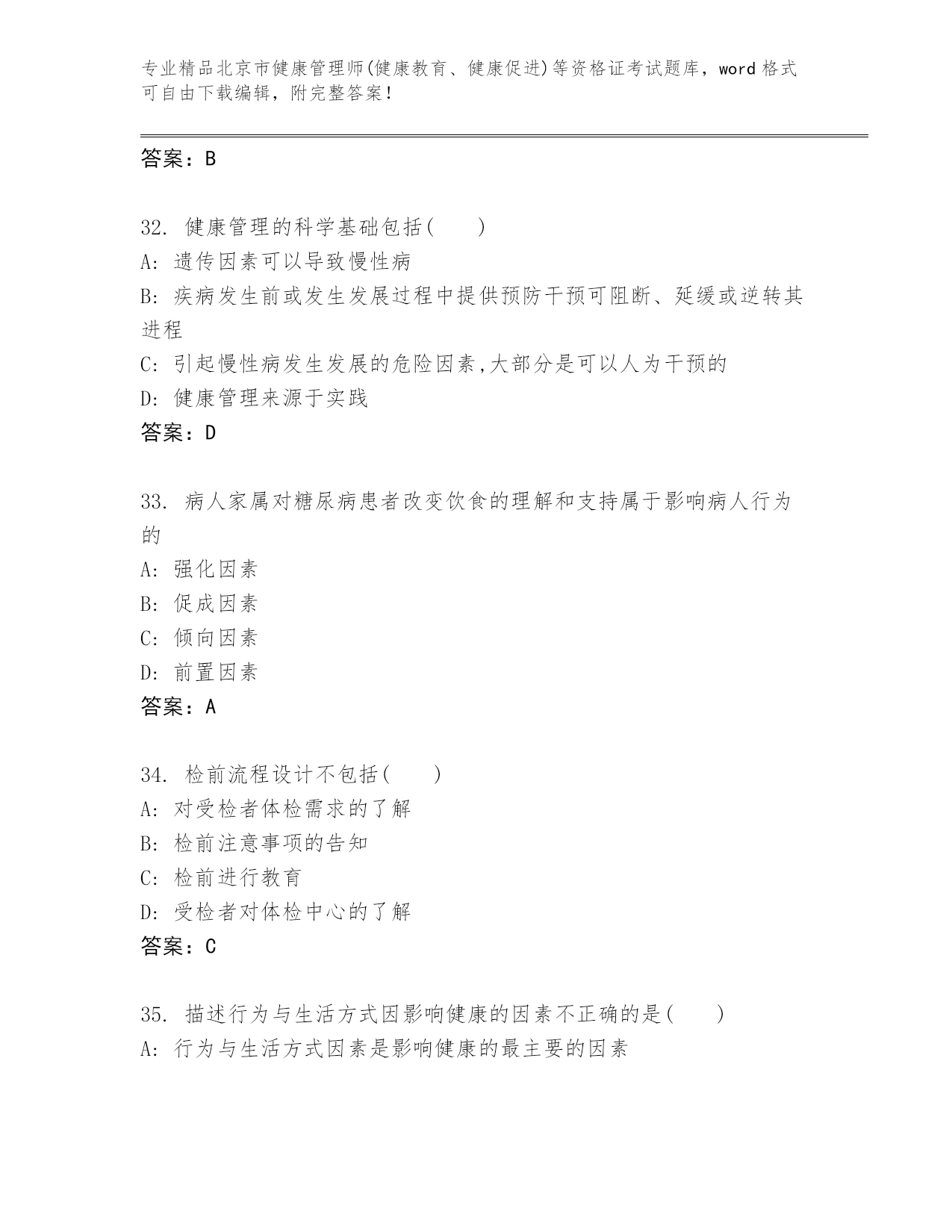 精心整理北京市健康管理师(健康教育、健康促进)等资格证考试真题及答案参考