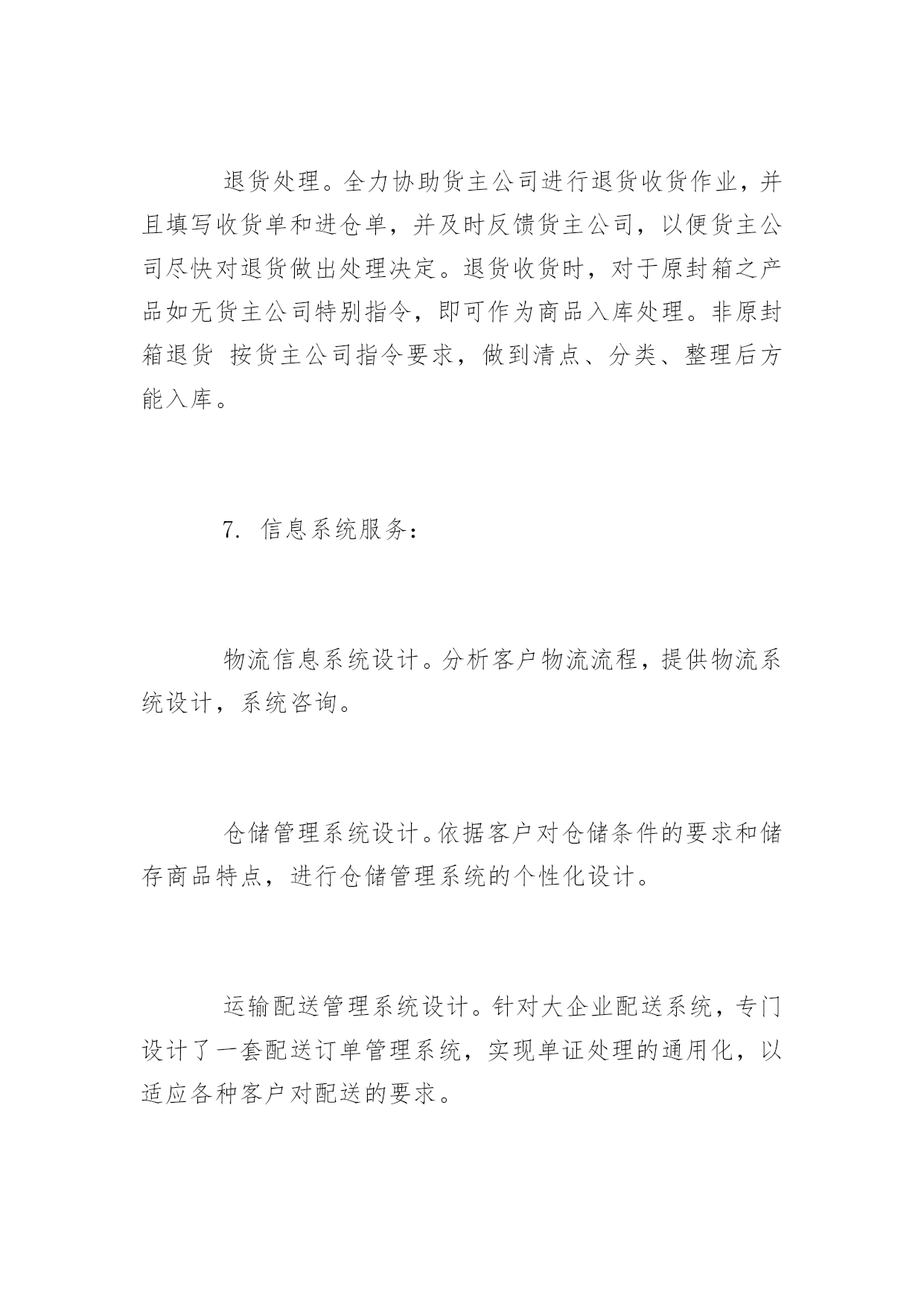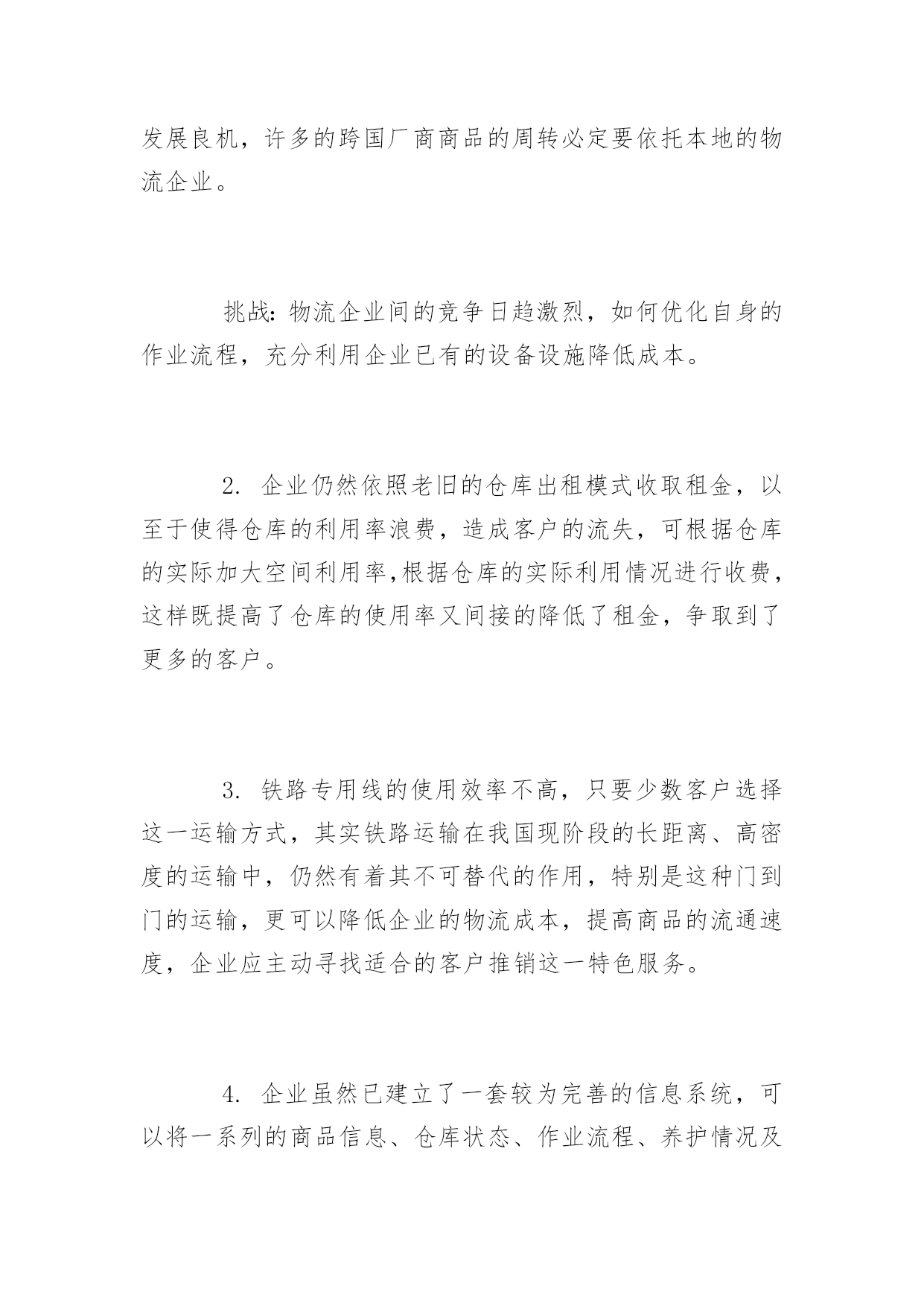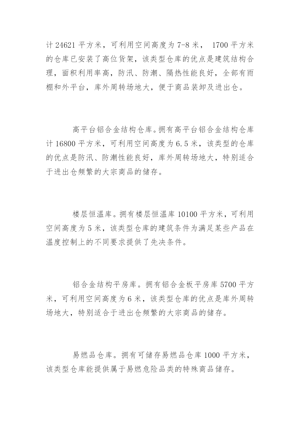 物流实习周记2013物流实习周记一.研究动机:经过一学期《物流基础》的学习,对物流的定义、基本功能、各个作业流程有了一定的理论基础,通过实习将这些理论与实际的操作相结合,在实践中提高运用知识的能力。二.研究目的:了解第三方物流服务的特点、主要设备和作业流程,对其进行分析,并结合所学的理论提出改进意见。三.研究方法:访问法、资料收集法。资料收集的方法:网上收集。四.公司概况1.基本情况:上海商业物流中心位于曹杨路1500号,交于铜川路,比邻武宁路,交通便捷,与上海西站及其铁路沿线仅一步之遥;地处内环线与外环线之间,距离内环线1.5公里,外环线3.5公里,并且距离沪宁和沪嘉高速公路出口处分别仅为1.5公里和4公里。物流中心占地面积为26万平方米,各类仓库10万平方米,拥有4条铁路专用线和40辆箱式货车。2.公司简介:上海商业物流中心系上海商业储运有限公司的子公司,隶属上海一百集团有限公司。中心始建于1952年,是全国商业系统大型的社会化第三方物流企业。XX年初被国家经贸委确定为全国发展商品配送重点单位。3.主要设施:铲车,中心拥有1.5吨至3吨的汽、柴油叉车和干充式电瓶叉车以及前移式高位货架库专用干充式电瓶叉车多辆。手推平板车,拥有多辆手推平板车,手推液压车和登高车6辆,以及国际标准1m*1.2m地台板。运输车辆,中心拥有多辆10吨全封闭厢型货车,8吨全封闭厢型货车,5吨全封闭厢型货车,及2吨以下的厢型货车。同时拥有2个联盟型车队,可调动车辆近百辆。铁路专用线,拥有4条共计长度为1654米铁路专用线,是目前上海商业系统内唯一拥有铁路专用线的专业物流企业,具有100万吨的铁路运输发运能力,以方便客户的产品运输方式有多种选择余地。集装箱场地,拥有1万平方米集装箱场地,龙门吊负载能力为10吨至20吨,适合金属类商品以及集装箱储存业务。4.仓库类型:高平台彩钢板结构仓库。拥有高平台彩钢板结构仓库计24621平方米,可利用空间高度为7-8米,1700平方米的仓库已安装了高位货架,该类型仓库的优点是建筑结构合理,面积利用率高,防汛、防潮、隔热性能良好,全部有雨棚和外平台,库外周转场地大,便于商品装卸及进出仓。高平台铝合金结构仓库。拥有高平台铝合金结构仓库计16800平方米,可利用空间高度为6.5米,该类型的仓库的优点是防汛、防潮性能良好,库外周转场地大,特别适合于进出仓频繁的大宗商品的储存。楼层恒温库。拥有楼层恒温库10100平方米,可利用空间高度为5米,该类型仓库的建筑条件为满足某些产品在温度控制上的不同要求提供了先决条件。铝合金结构平房库。拥有铝合金板平房库5700平方米,可利用空间高度为6米,该类型仓库的优点是库外周转场地大,特别适合于进出仓频繁的大宗商品的储存。易燃品仓库。拥有可储存易燃品仓库1000平方米,该类型仓库能提供属于易燃危险品类的特殊商品储存。其它库房40000平方米,该类型仓库多数属于砖木结构,单幢仓库面积小于上述仓库类型,具有冬暖夏凉的自然调节功能。5.仓储系统服务:市内/国内配送,单品/综合配送,常温/冷藏配送。备有各式车型,承运商品包括:百货用品、冷藏保温、特殊商品。贵重物品配送。提供门到门的服务,确保商品的安全抵达用户手中。隔日零担配送。对于零担配送,公司承诺货物隔日上车、发车。上架陈列。对于市内各大商场、各类超市、连锁网点的配送服务,公司还提供协助客户商品上架陈列的服务。6.仓储系统服务:常温/恒温仓库储存,高层/堆垛货架储存。存货即时控制。有效的货卡登记制度,可随时了解库存商品的数量。确保商品质量,随时检查,出现质量问题及时上报、调整。定时观察库房条件,确保库房内温湿度不超标。加工整理。提供完善的分拣、换包装等加工服务,物流中心内还设有专门的包装加工单位,可随时满足客户的各种要求。订单处理。对订单处理要求做到及时、准确、高效,并承诺:单据收到15分钟内,操作人员到达现场,可开始收发货。退货处理。全力协助货主公司进行退货收货作业,并且填写收货单和进仓单,并及时反馈货主公司,以便货主公司尽快对退货做出处理决定。退货收货时,对于原封箱之产品如无货主公司特别指令,即可作为商品入库处理。非原封箱退货按货主公司指令要求,做到清点、分类、整理后方能入库。7.信息系统服务:物流信息系统设计。分析客户物流流程,提供物流系统设计,系统咨询。仓储管理系统设计。依据客户对仓储条件的要求和储存商品特点,进行仓储管理系统的个性化设计。运输配送管理系统设计。针对大企业配送系统,专门设计了一套配送订单管理系统,实现单证处理的通用化,以适应各种客户对配送的要求。销售供货分析。从客户利益出发,进行常规供货、出货、流通周转、及安全库存的定量分析,替客户计算出最经济的租仓面