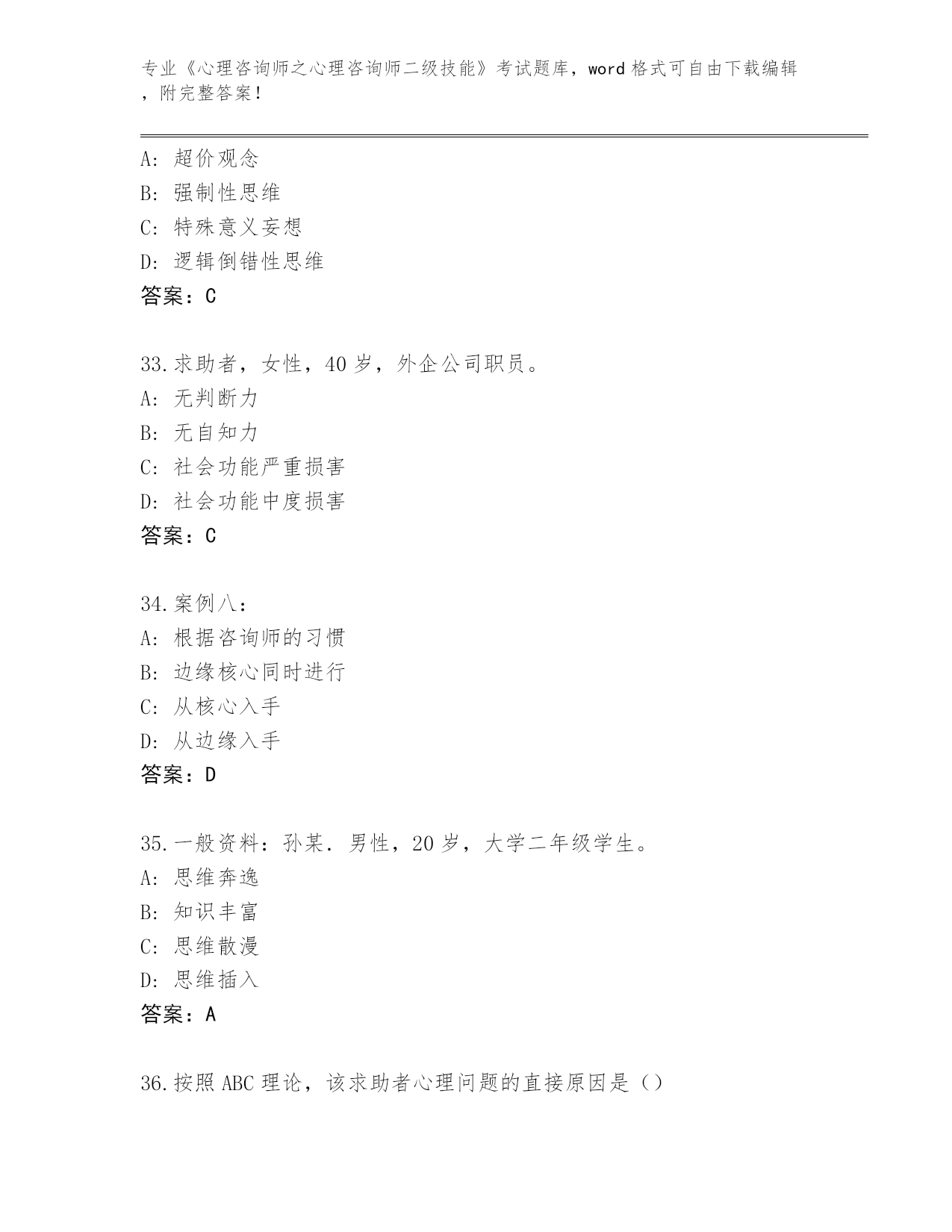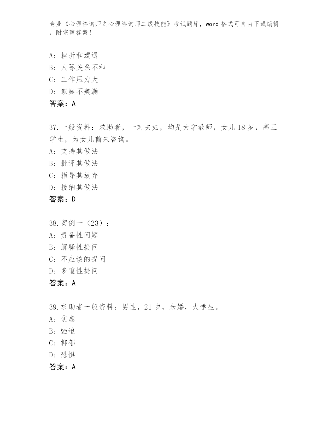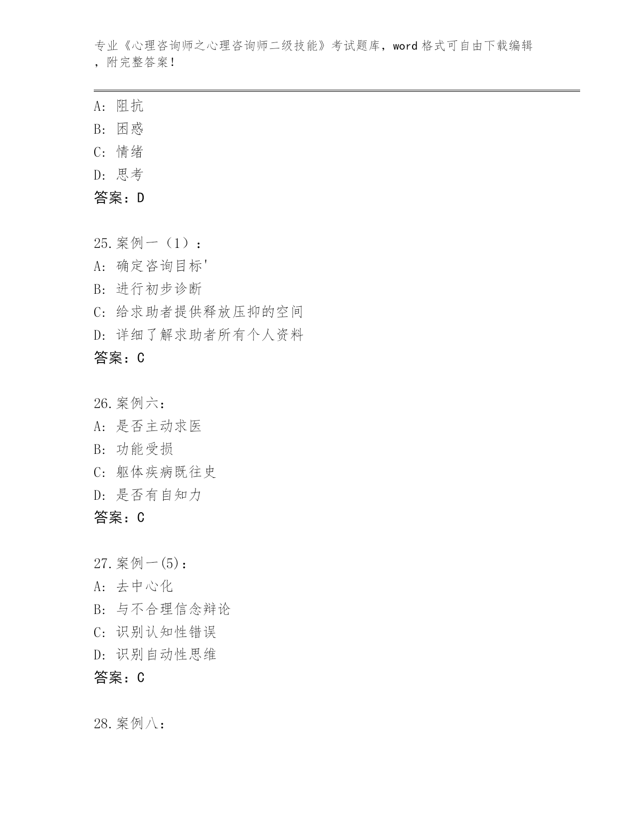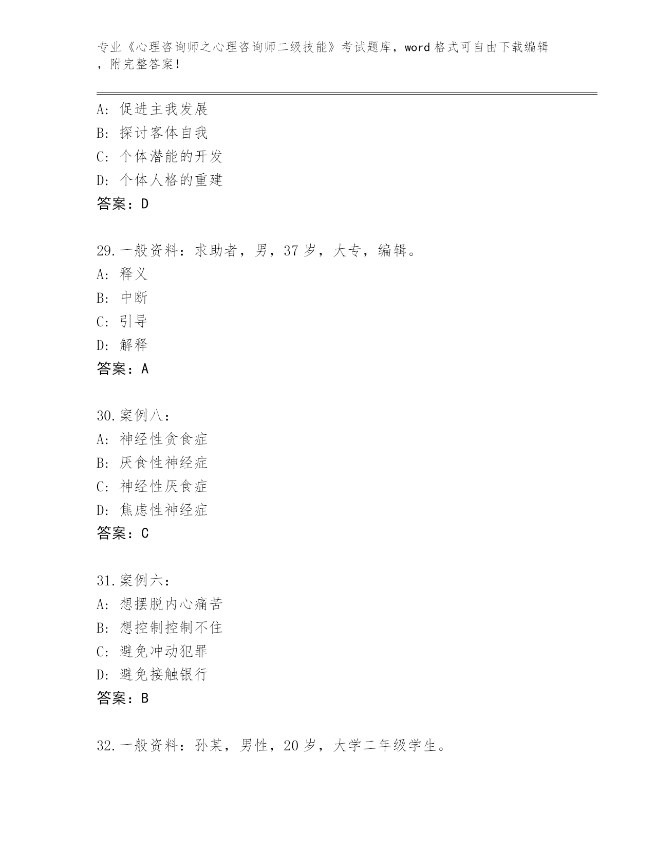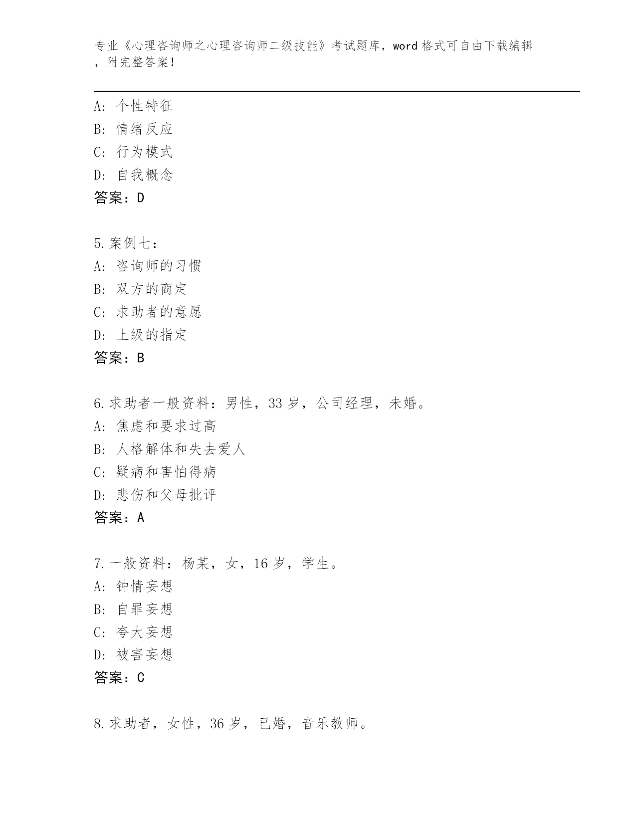 陕西省2024年《心理咨询师之心理咨询师二级技能》考试必考200题王牌题库及答案(名校卷)