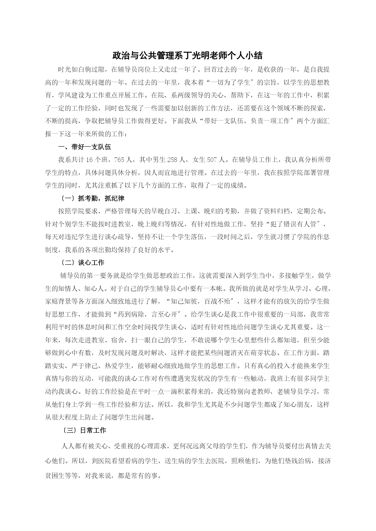 淮阴师范学院2007年度辅导员年终工作小结-政治与公共管理系丁光明老师-