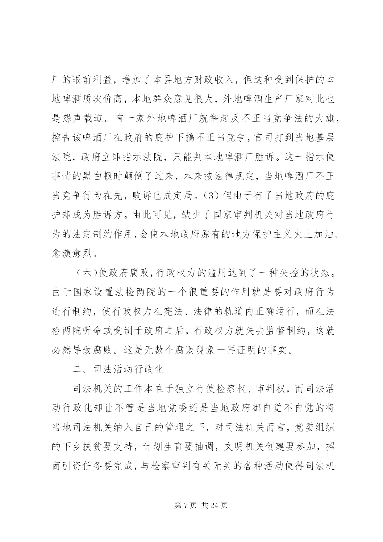 我国现行司法体制存在的问题、危害及对策讲解.docx