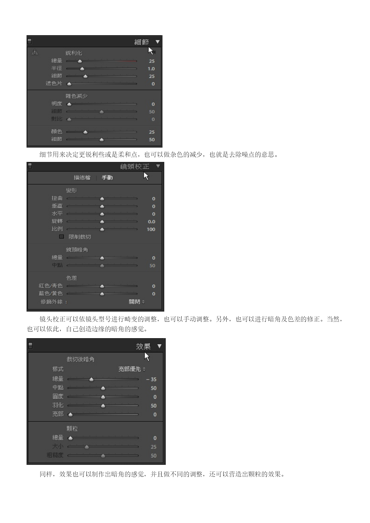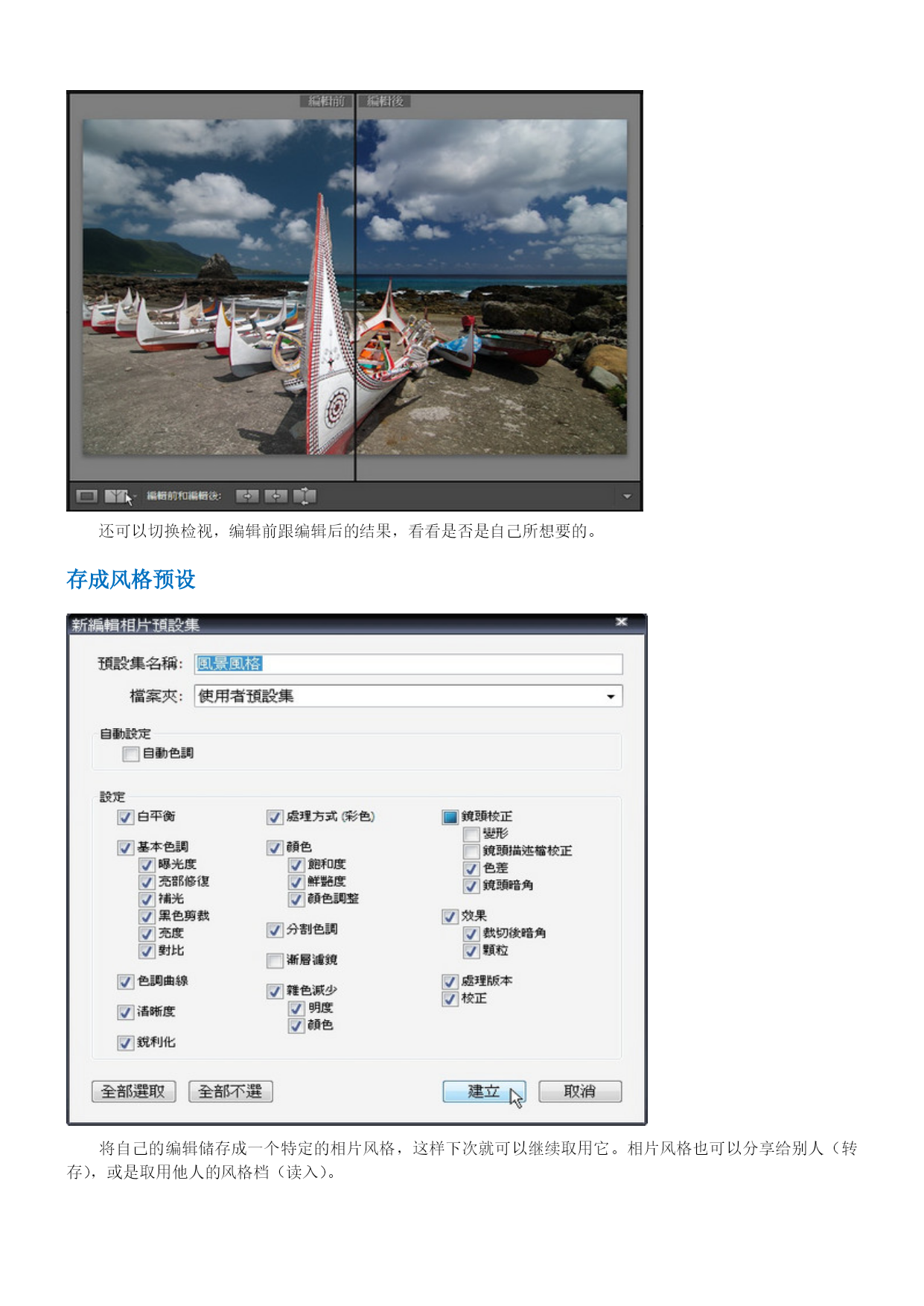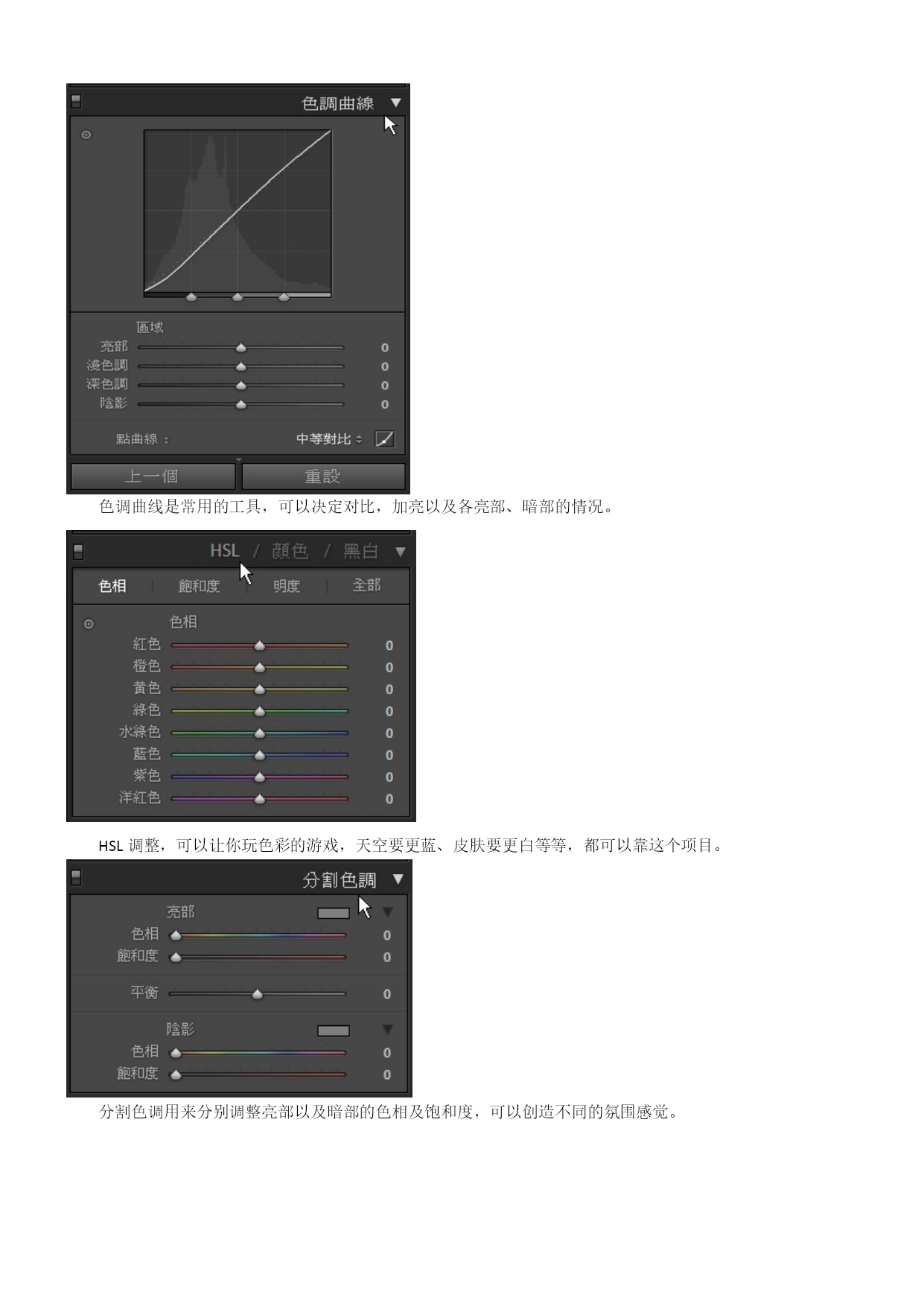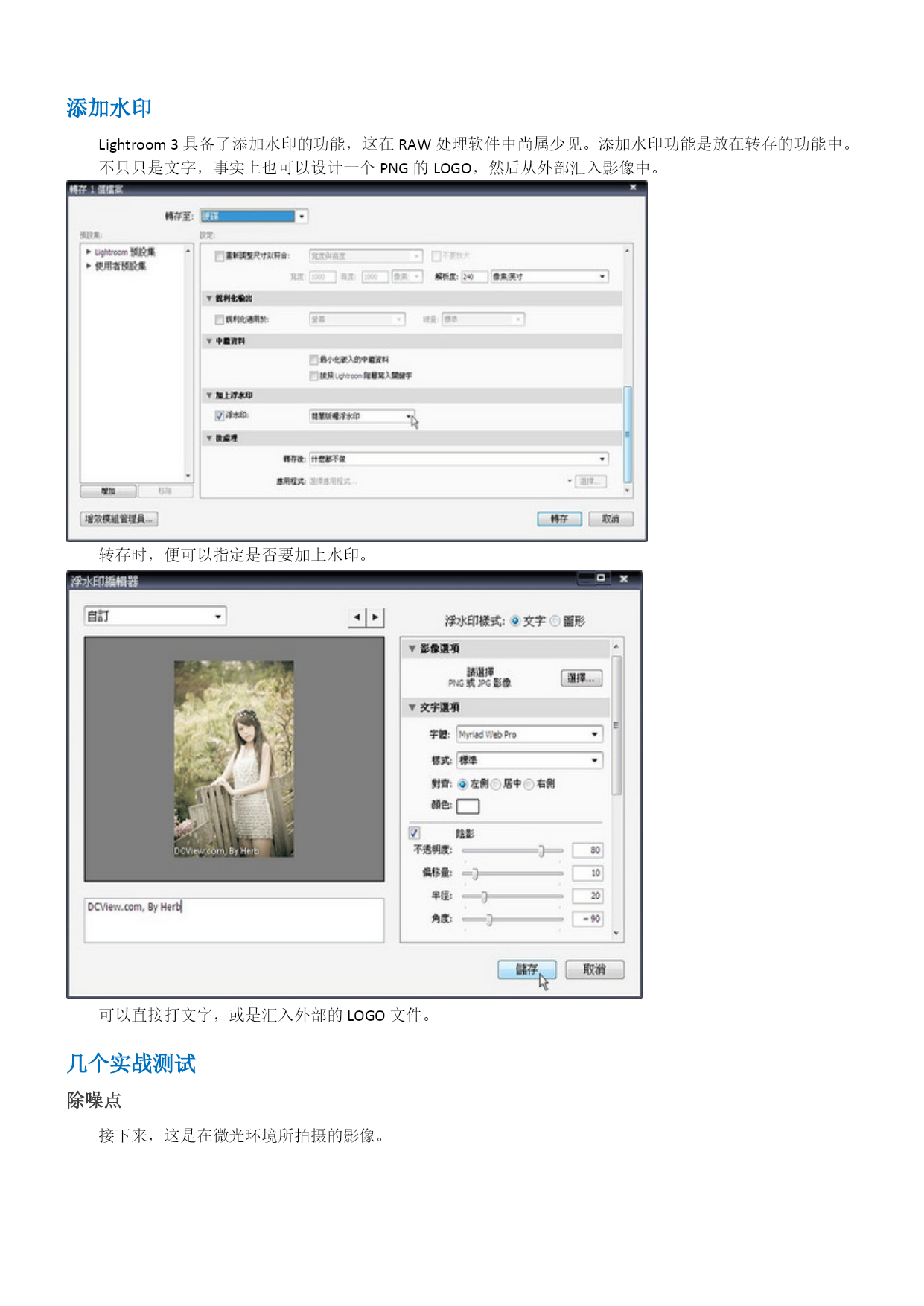 Lightroom3中文教程-数码暗房基础操作概述目录TOC\o"1-3"\h\z\uHYPERLINK\l"_Toc280161245"Lightroom3中文教程-数码暗房基础操作概述PAGEREF_Toc280161245\h1HYPERLINK\l"_Toc280161246"Lightroom3概要PAGEREF_Toc280161246\h1HYPERLINK\l"_Toc280161247"Lightroom3接口及流程PAGEREF_Toc280161247\h1HYPERLINK\l"_Toc280161248"单张照片修整PAGEREF_Toc280161248\h3HYPERLINK\l"_Toc280161249"单张照片细节的处理PAGEREF_Toc280161249\h4HYPERLINK\l"_Toc280161250"存成风格预设PAGEREF_Toc280161250\h8HYPERLINK\l"_Toc280161251"添加水印PAGEREF_Toc280161251\h9HYPERLINK\l"_Toc280161252"几个实战测试PAGEREF_Toc280161252\h10HYPERLINK\l"_Toc280161253"除噪点PAGEREF_Toc280161253\h10HYPERLINK\l"_Toc280161254"色调曲线PAGEREF_Toc280161254\h11HYPERLINK\l"_Toc280161255"编辑佳能照片文件PAGEREF_Toc280161255\h12HYPERLINK\l"_Toc280161256"相片风格的套用PAGEREF_Toc280161256\h13HYPERLINK\l"_Toc280161257"亮部的修复PAGEREF_Toc280161257\h13HYPERLINK\l"_Toc280161258"小结PAGEREF_Toc280161258\h14Lightroom3概要Lightroom3是一套“综合式”的HYPERLINK"http://www.photops.com/Article/xsjc/20100713035634.html"\t"_blank"RAW图像处理软件,可以处理大部份目前存在的相机型号所产生的RAW档案,并赋予个性化的HYPERLINK"http://www.photops.com/Article/zpps/Index.html"\t"_blank"摄影师风格。在Adobe的产品线定位中,Adobe将Lightroom3定位在给摄影玩家及专业摄影师所使用的软件,当然这也涵盖了那些婚礼纪录、婚纱摄影或是网拍、商品摄影工作室的摄影师。Lightroom3提供了一个整合式的弹性处理流程,植基在以RAW为基础上的,包含了影像的管理、单张影像的编修、风格的套用、批次的处理、投影片播放等。相对于NX、DPP等软件,Lightroom3仍有其突出的功能,并在整合至不同的RAW文件时,更具效能及一致化处理的优势,重要的是,现时网络上从过去的Lightroom2至今日的Lightroom3,已经存在非常多的风格档案可供套用,这都让许多摄友逐渐地考虑,是否将Lightroom做为日常处理软件的重要左右手。在Lightroom3的新版本,较引人瞩目的是提供更好的噪声消除功能,另一方面,它也新增加了镜头校正、透视校正的功能,并可以在图片上加上水印,并在效能方面也有所提升。而过去Lightroom2的时代,让许多摄影者较犹豫的还是色彩的部份,Lightroom3所渲染出来的色彩目前则接近于原厂NX2、DPP等RAW软件所渲染出来的色彩,事实上Lightroom3效法了一些尼康的调控档及佳能的PictureStyle相片风格,在“相机校正”功能中,以得到色彩方面的改善。我们接下来便对Lightroom3做一个概观。Lightroom3接口及流程Lightroom3有几个主要的操作切换,分别为图库、编辑相片、幻灯片播放、打印、Web。这是“图库”接口,图库基本上就是正在处理中的影像集合,透过“读入”,在这边做一个汇集。在图库模式,就可以进行一些简单的快速编辑,例如:曝光度、清晰度及鲜艳度的调整,或是白平衡、色调控制。单张照片修整如果要进行比较细部的编修,可以切换进编辑