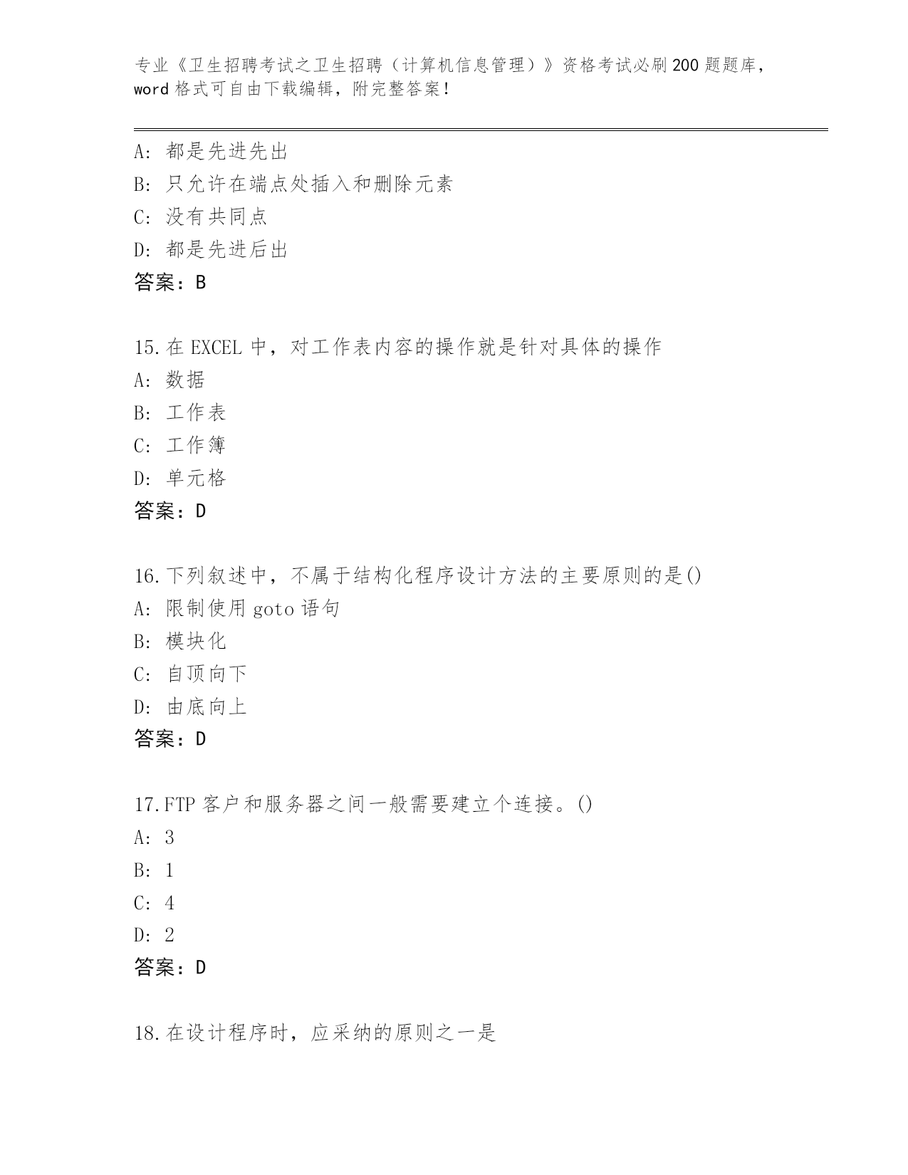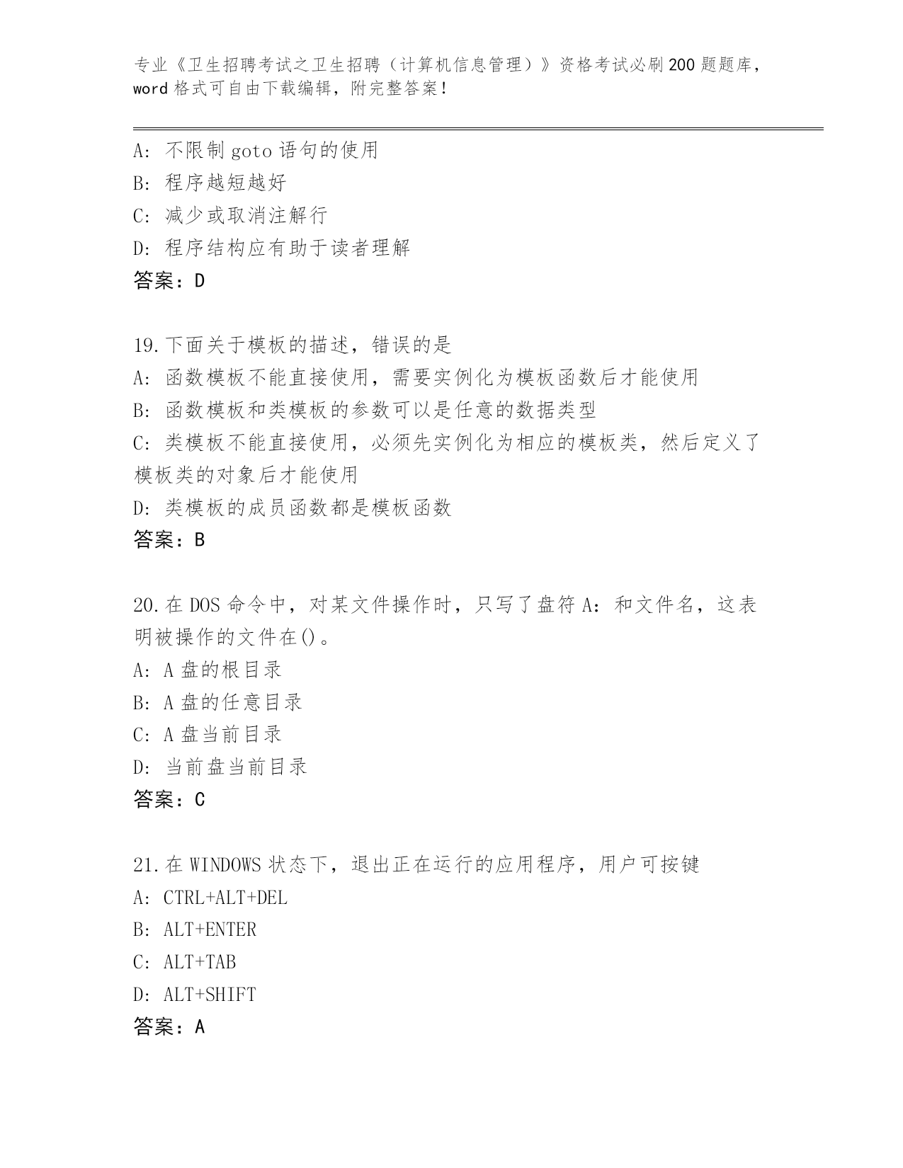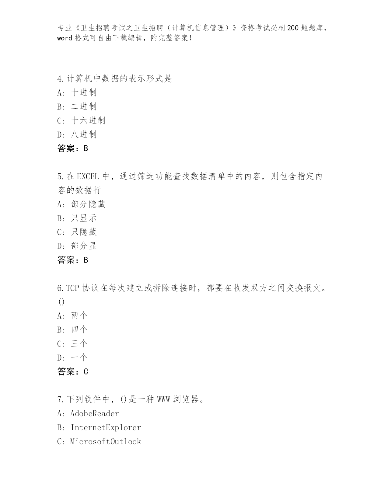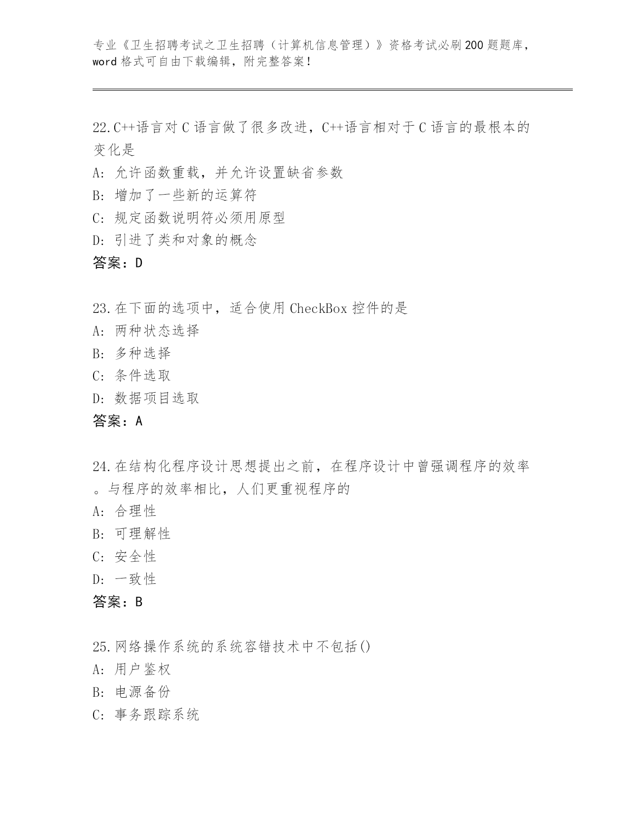 河北省《卫生招聘考试之卫生招聘(计算机信息管理)》考试必刷200题通关秘籍题库(培优B卷)