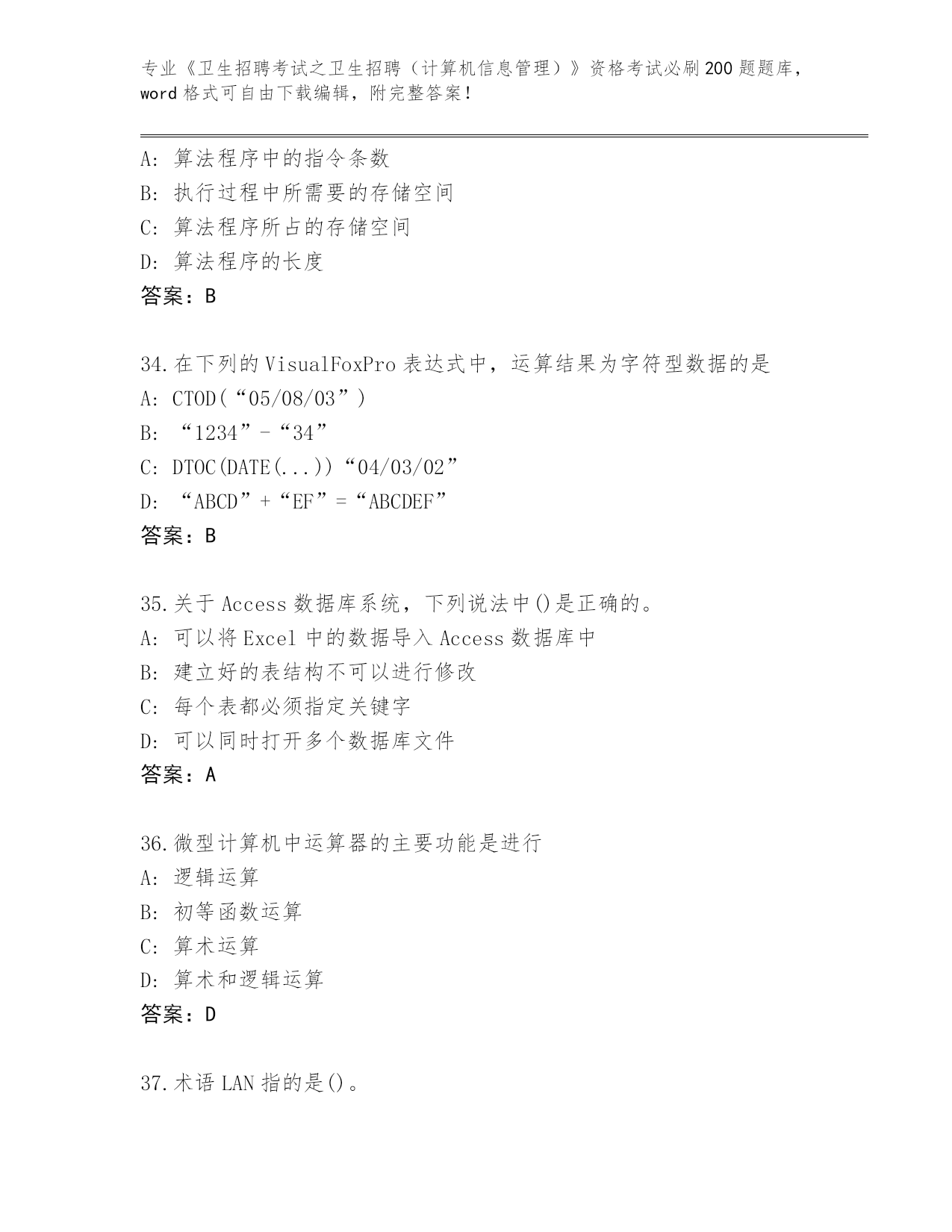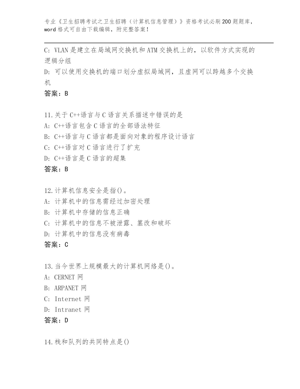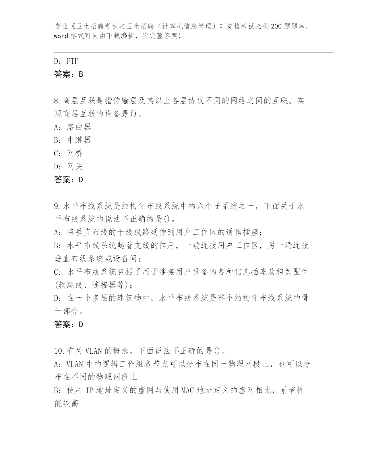 2024福建省涵江区《卫生招聘考试之卫生招聘(计算机信息管理)》考试必刷200题通关秘籍题库【培优B卷】