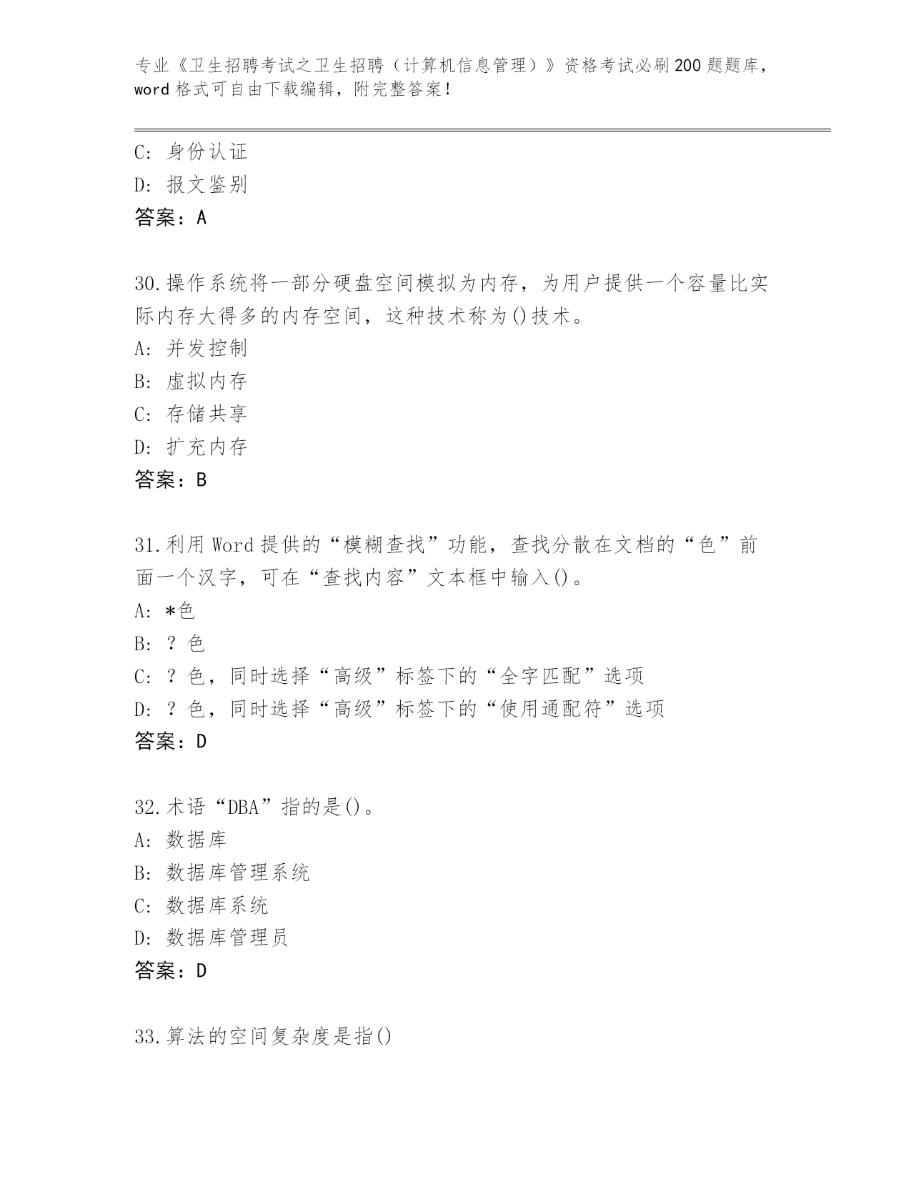 内部使用江苏省东台市《卫生招聘考试之卫生招聘(计算机信息管理)》资格考试必刷200题通关秘籍题库附答案(B卷)