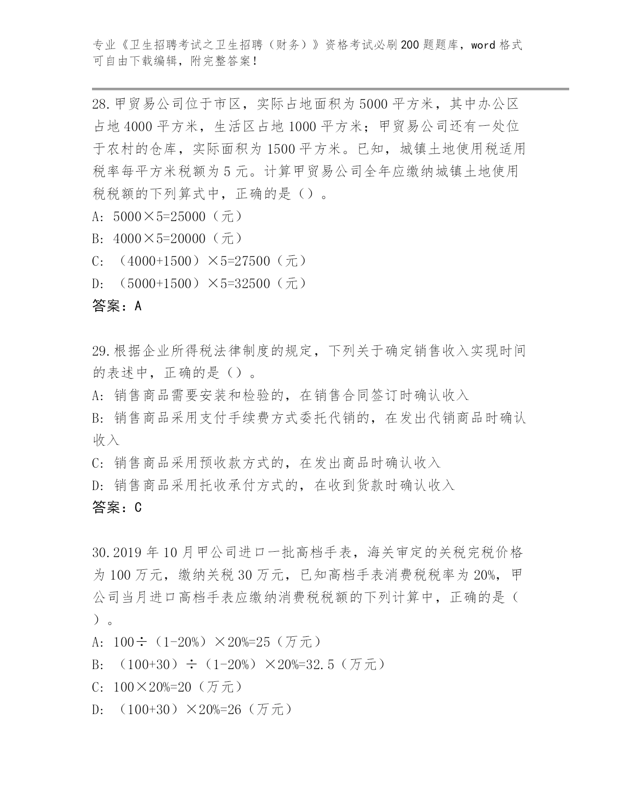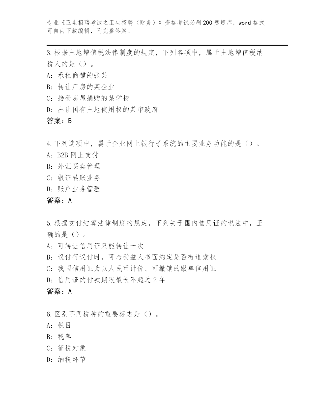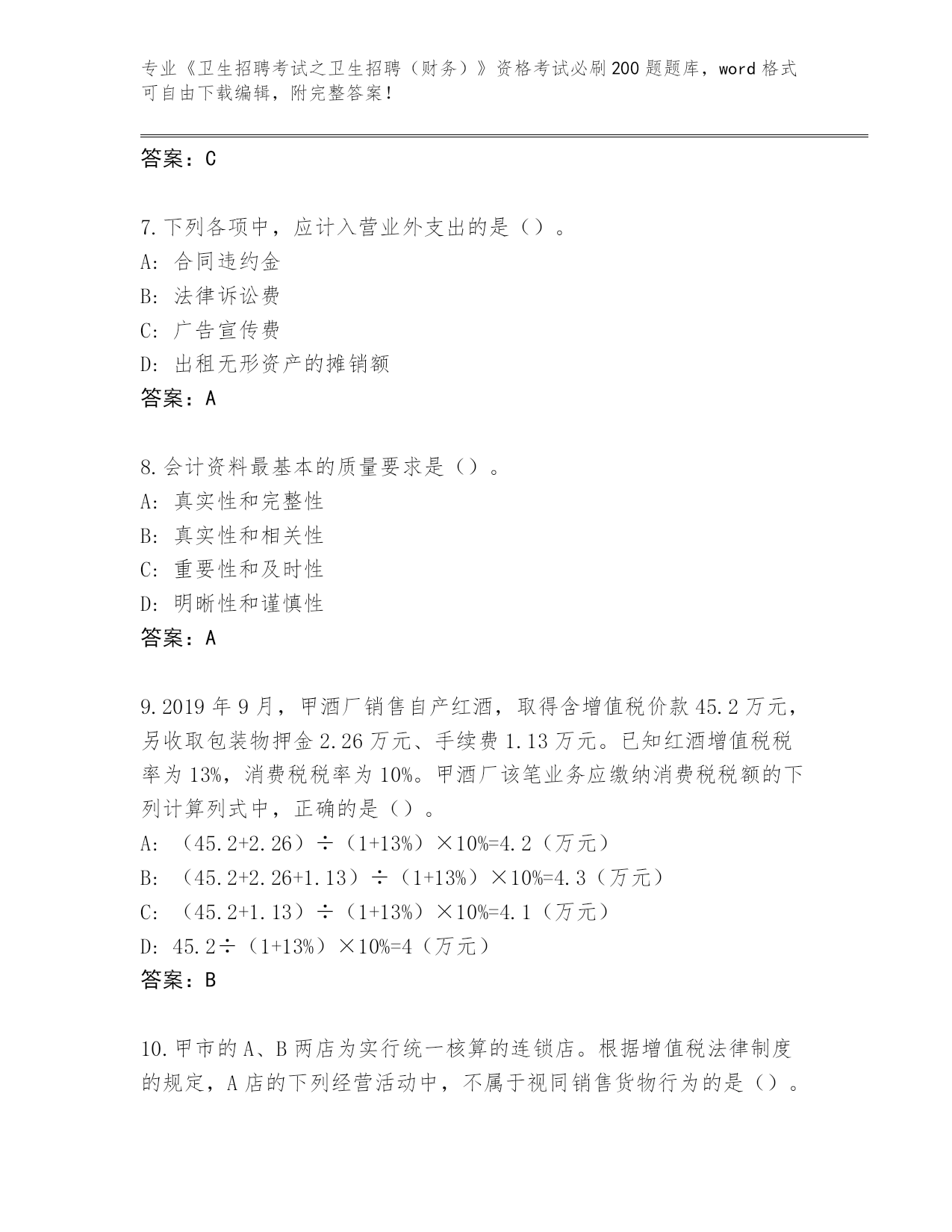 2023-2024年河北省《卫生招聘考试之卫生招聘(财务)》考试必刷200题王牌题库附答案(突破训练)