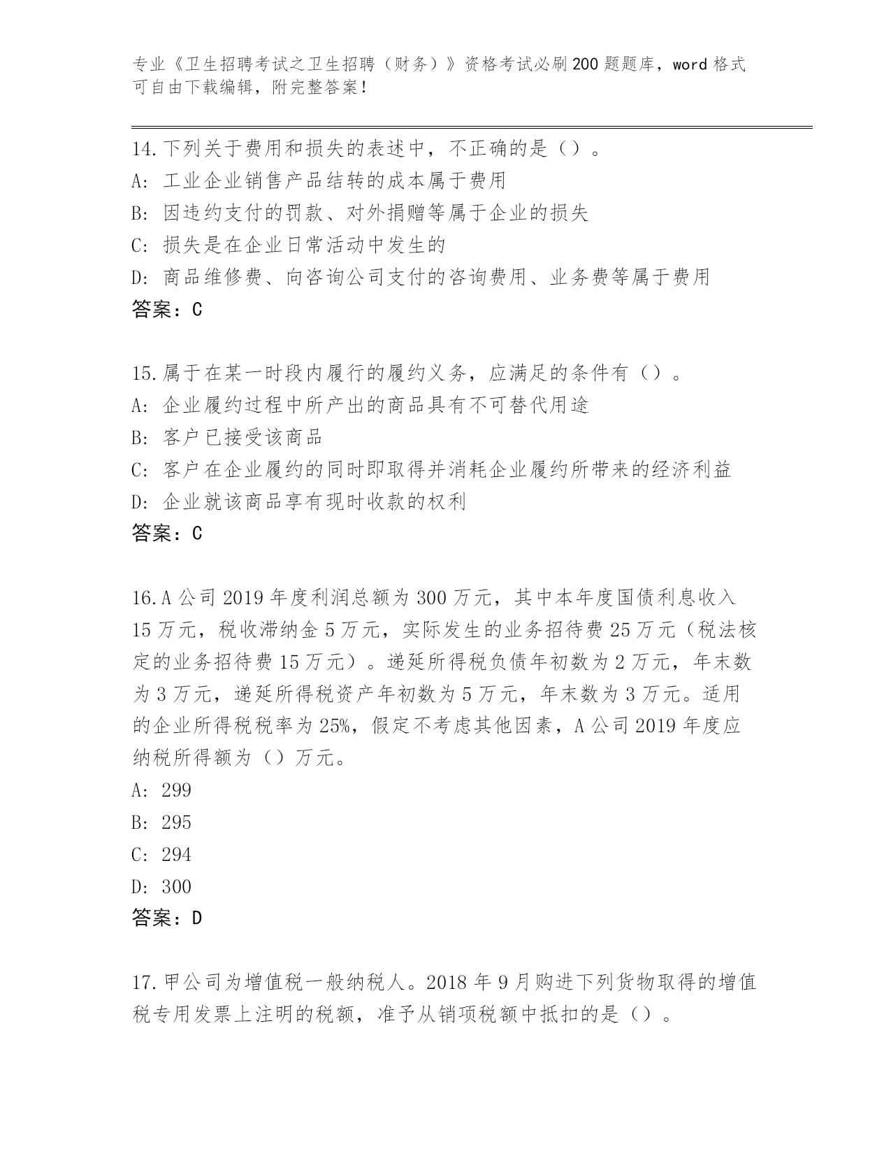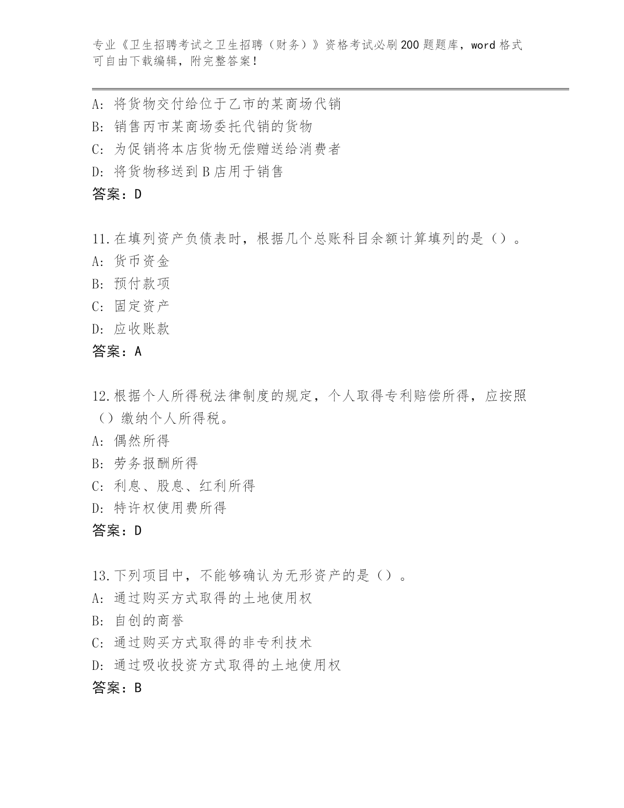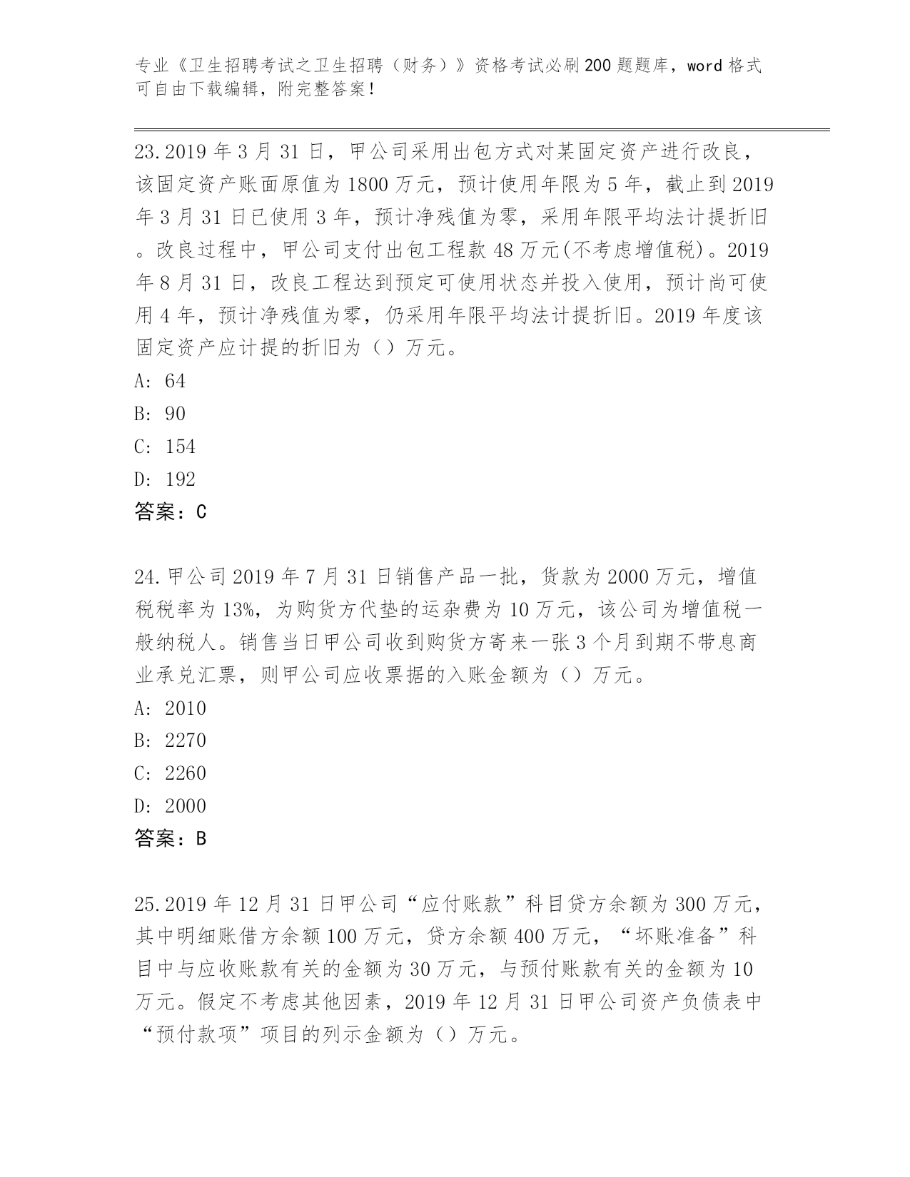 山东省山亭区2024年《卫生招聘考试之卫生招聘(财务)》考试必刷200题王牌题库附答案(突破训练)