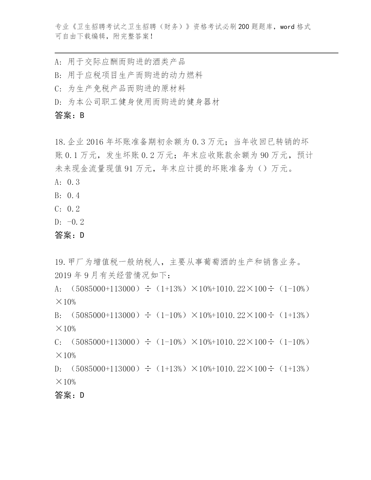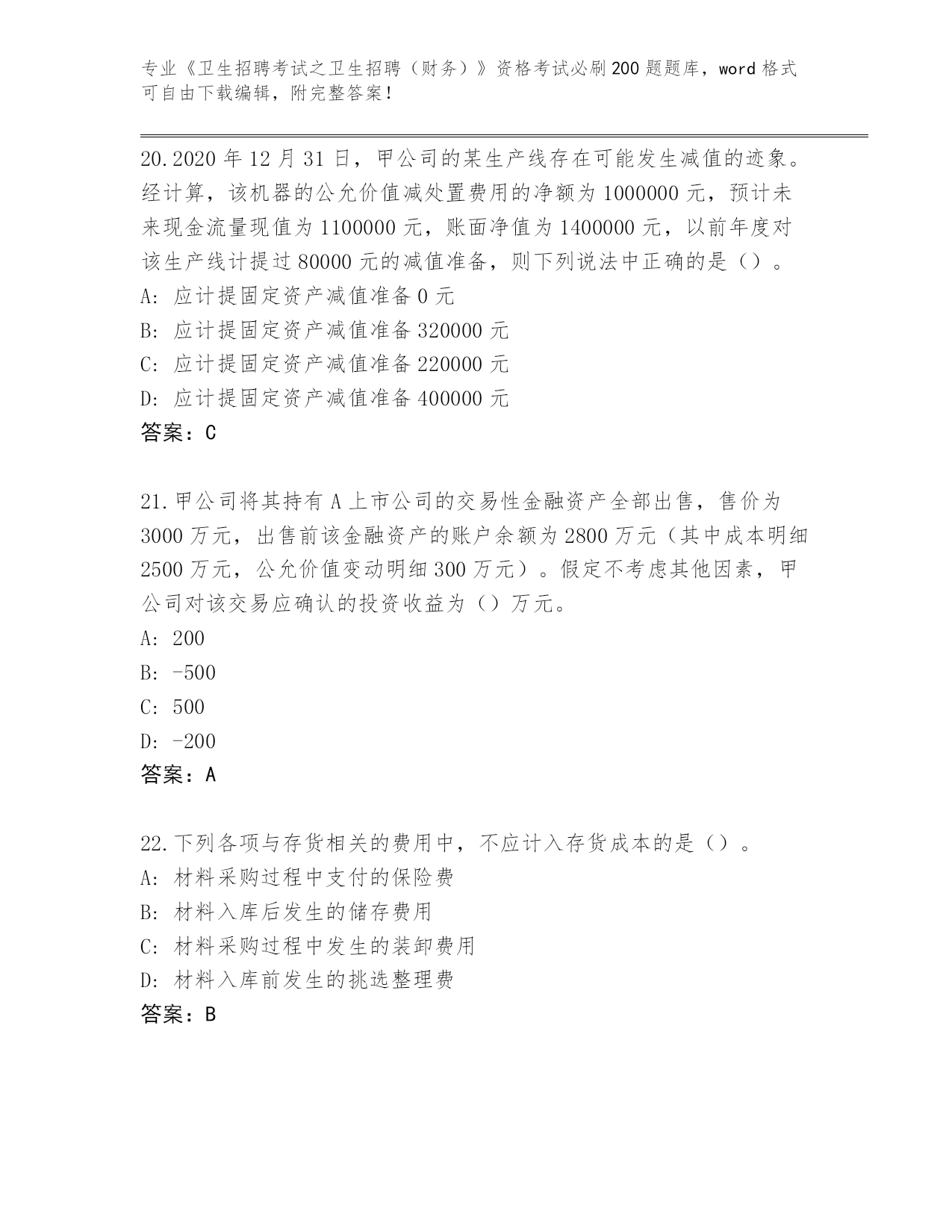 山东省《卫生招聘考试之卫生招聘(财务)》资格考试必刷200题题库附答案(突破训练)