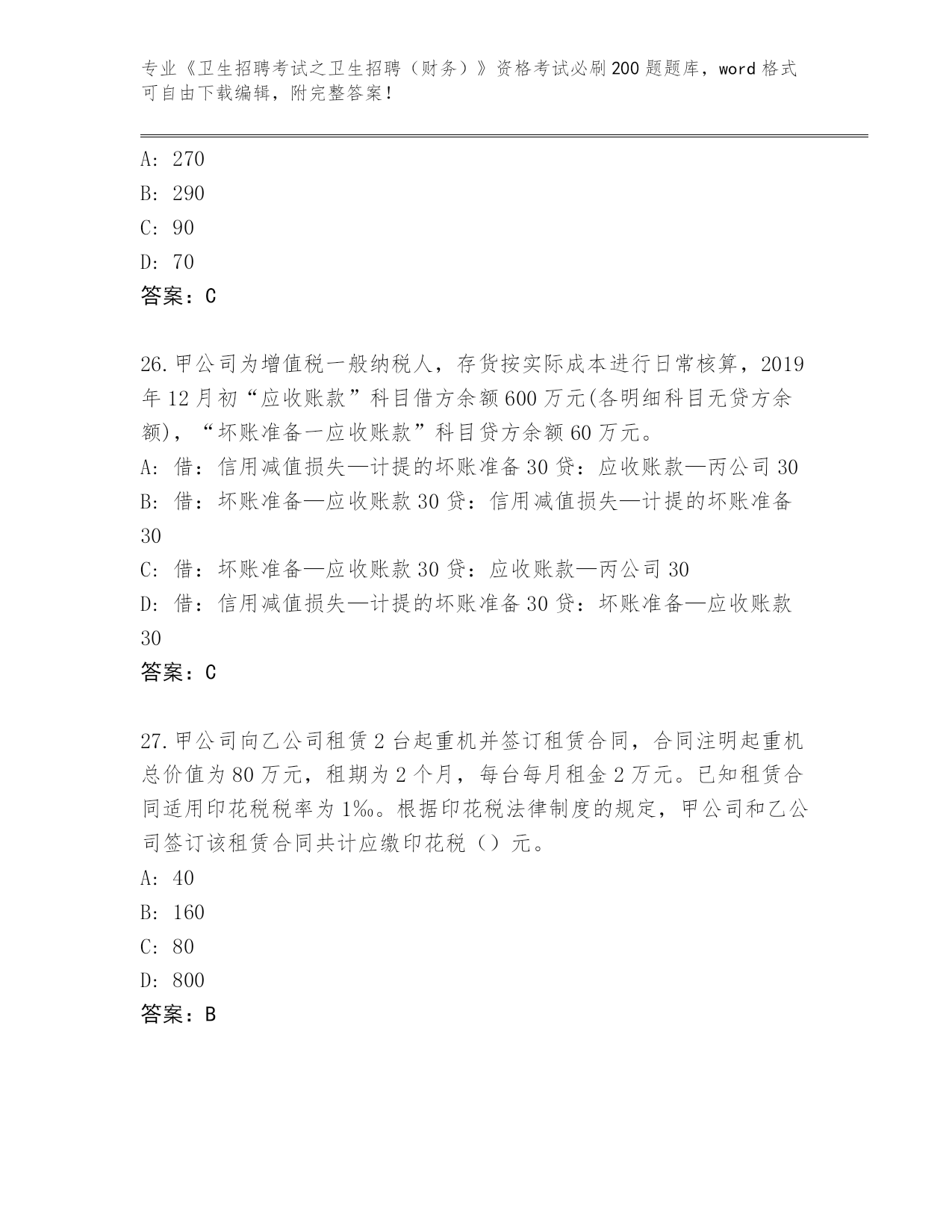 2024年河北省桥东区《卫生招聘考试之卫生招聘(财务)》考试必刷200题王牌题库附答案(突破训练)