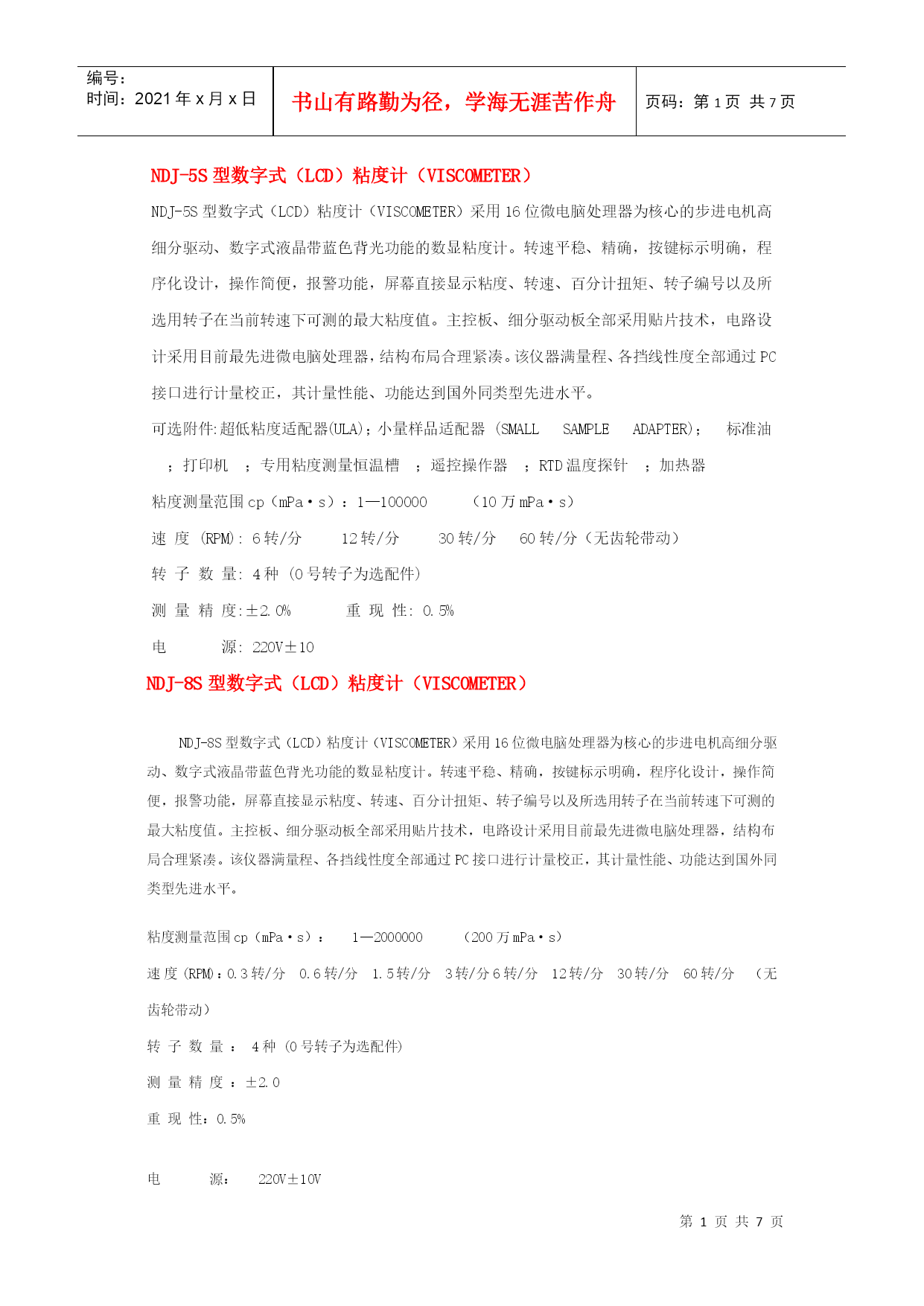 NDJ-5S型数字式(LCD)粘度计(VISCOMETER).docx