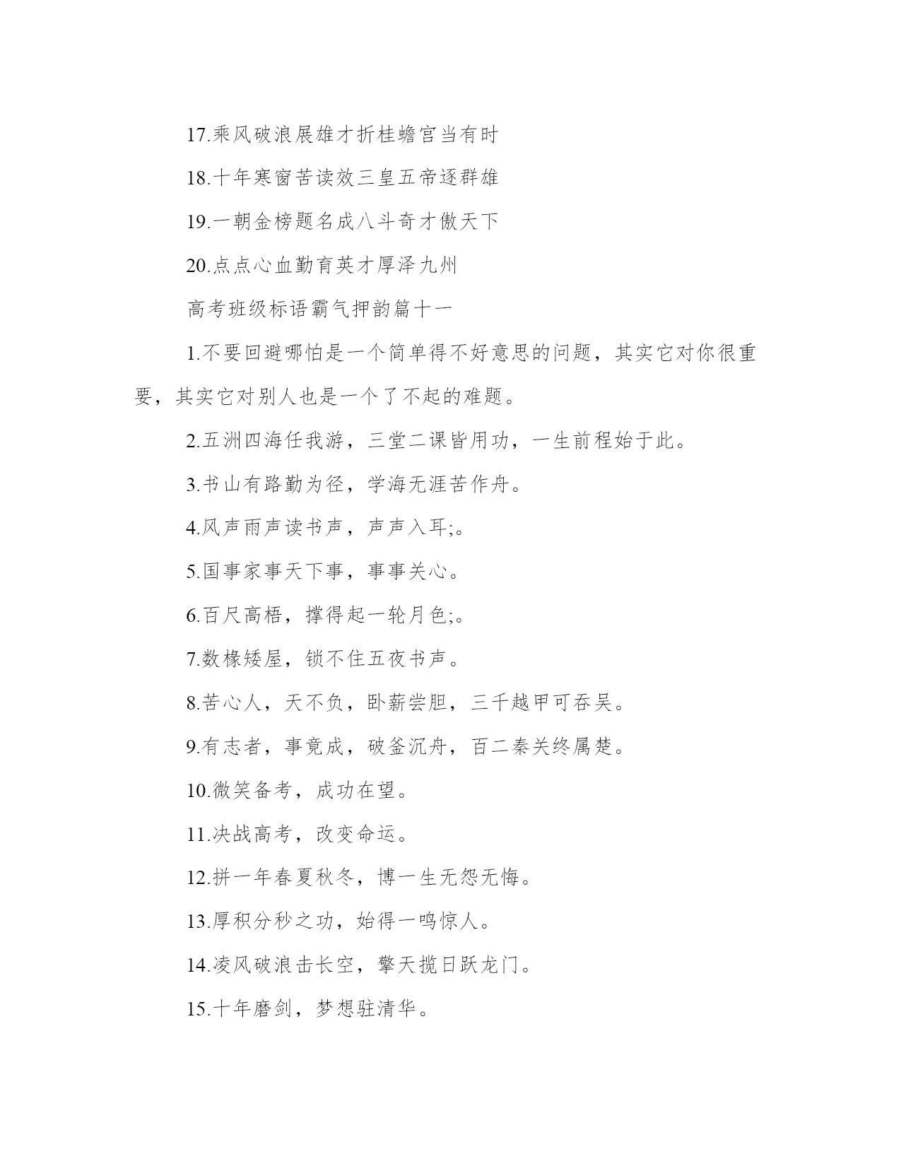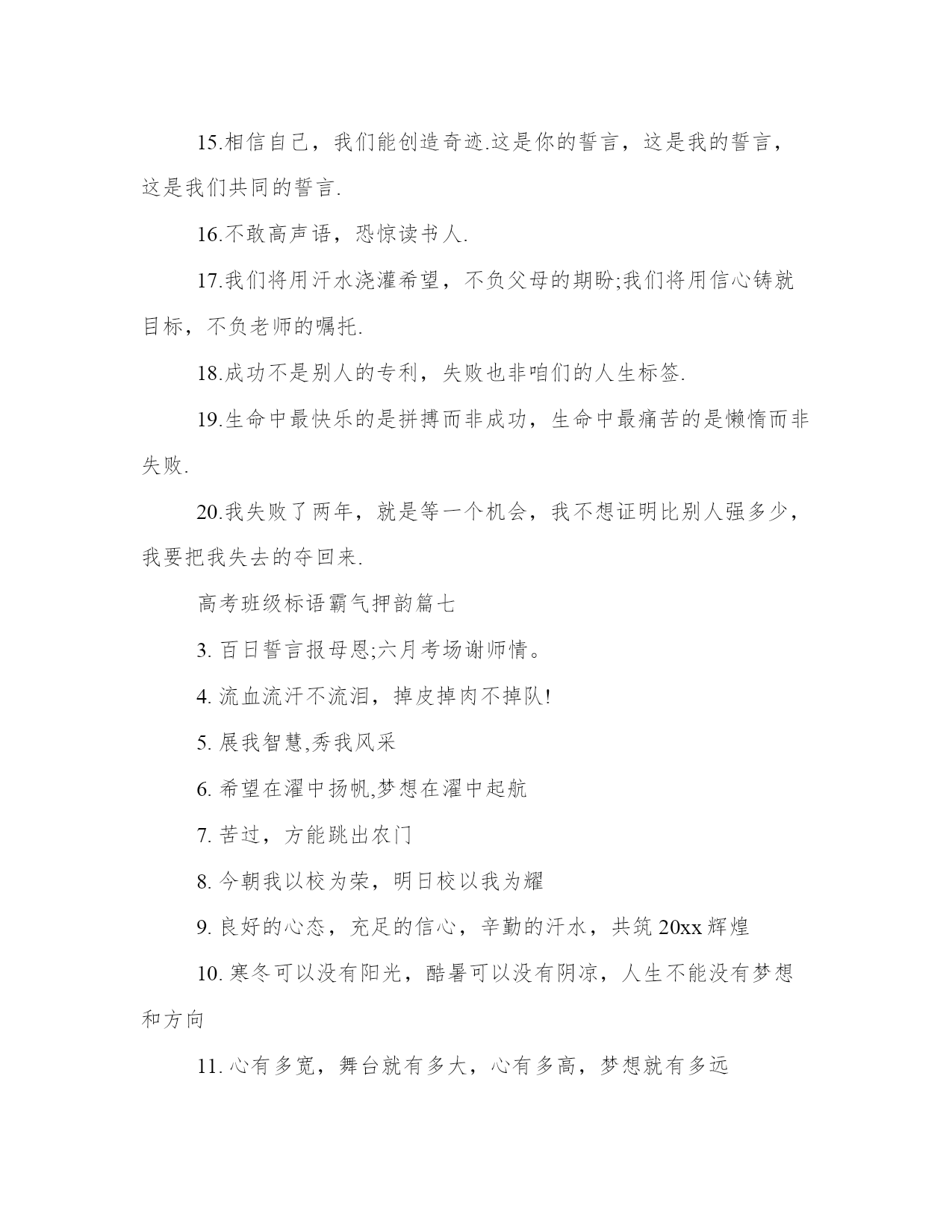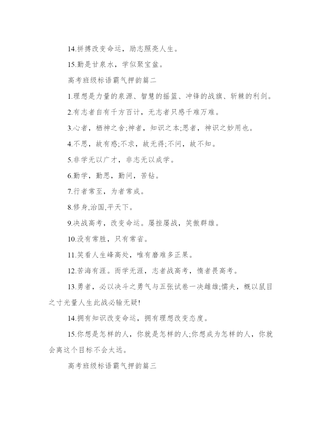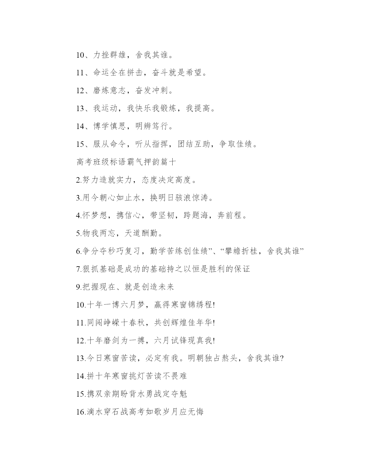 2023年高考班级标语霸气押韵高考班级标语(优秀16篇).docx