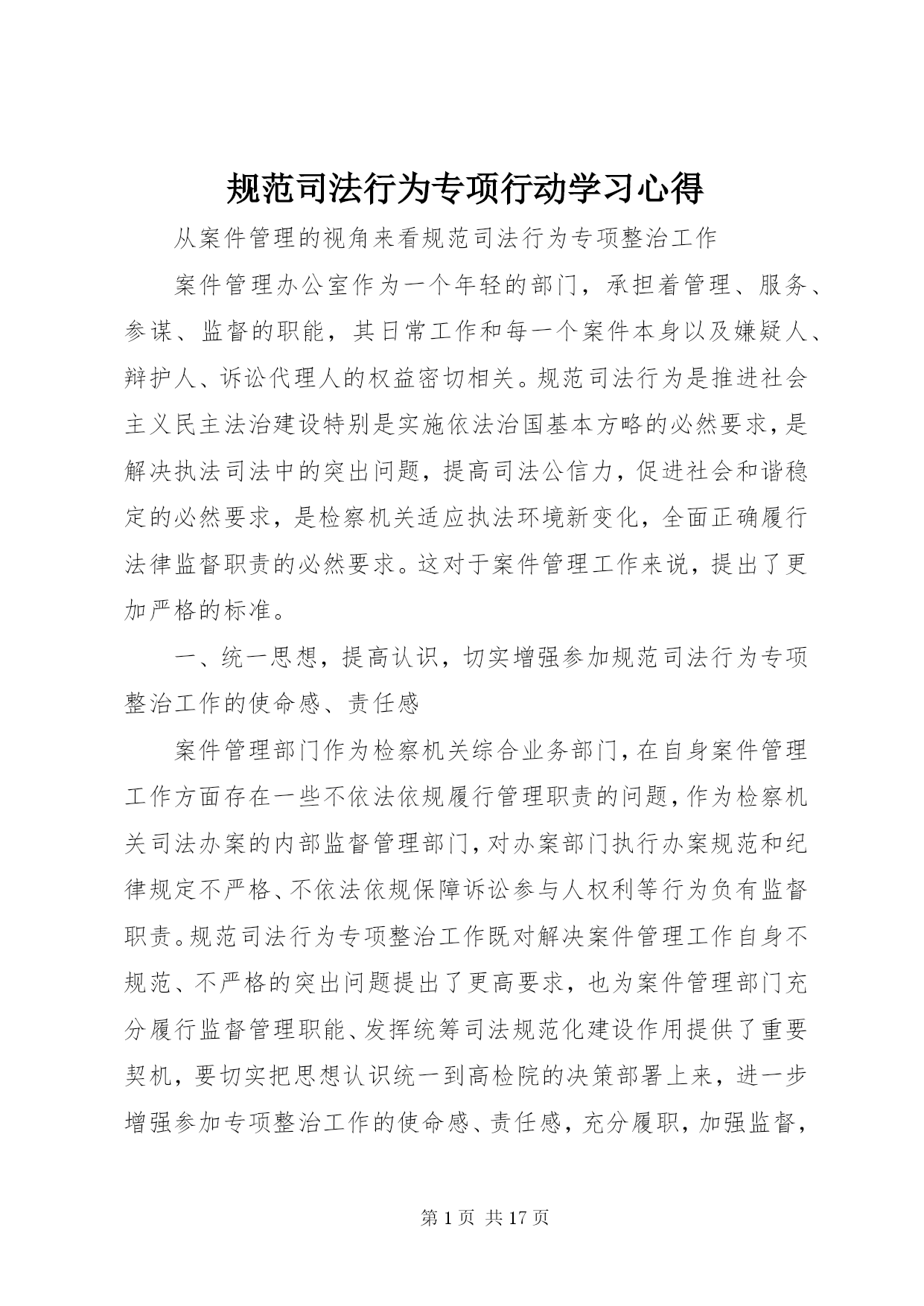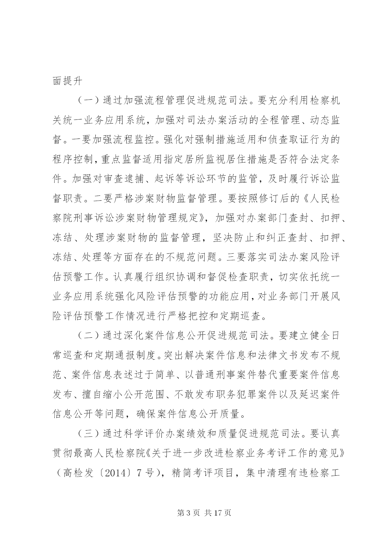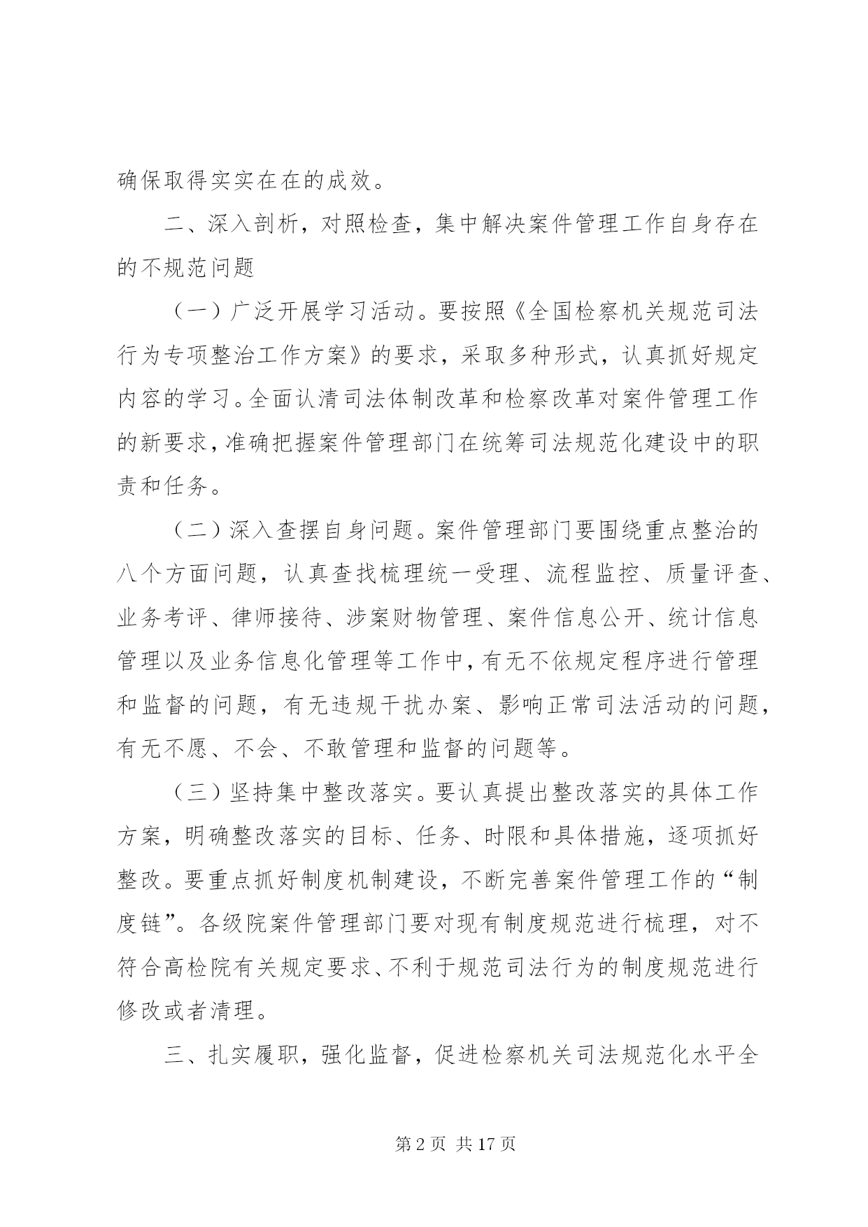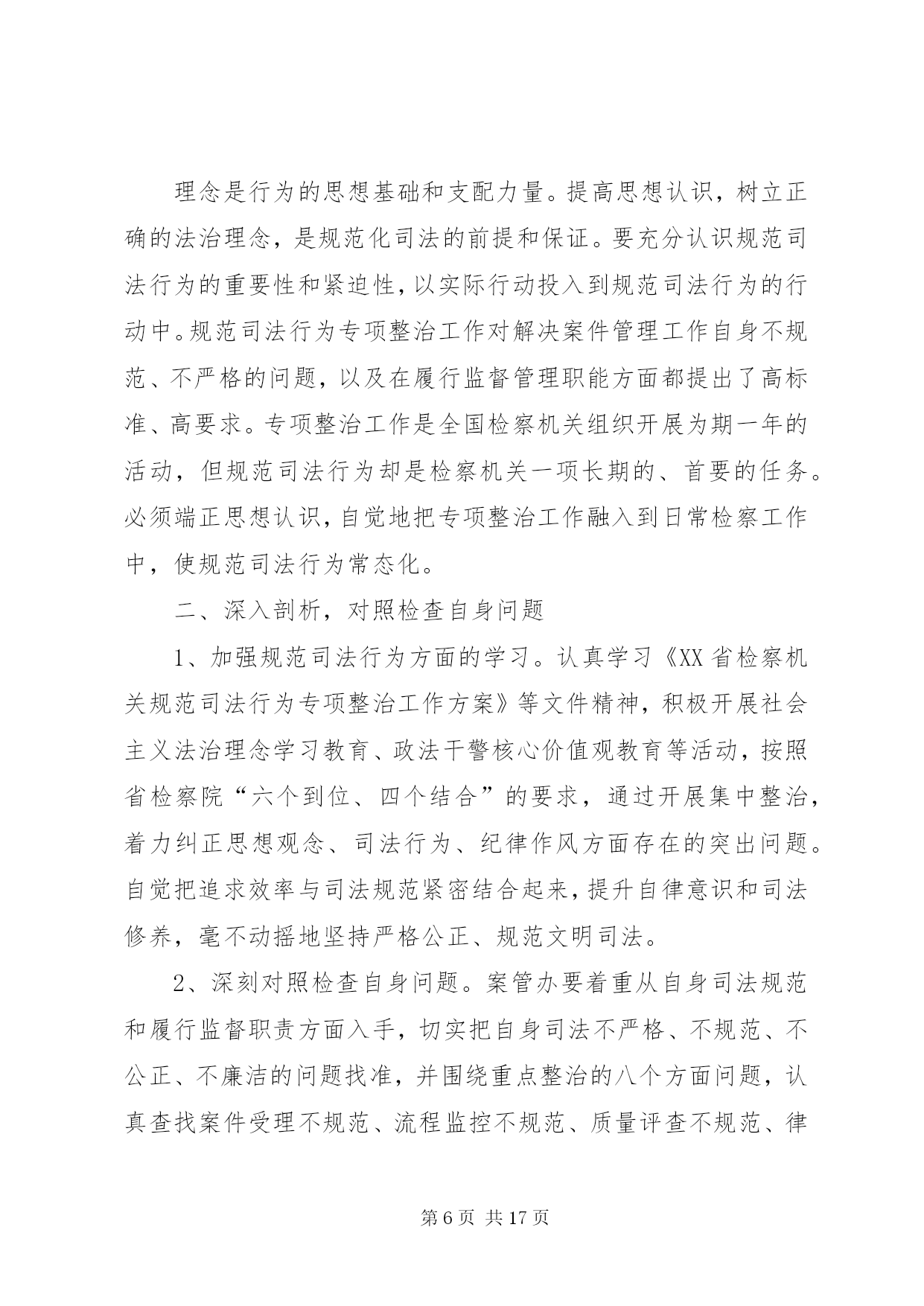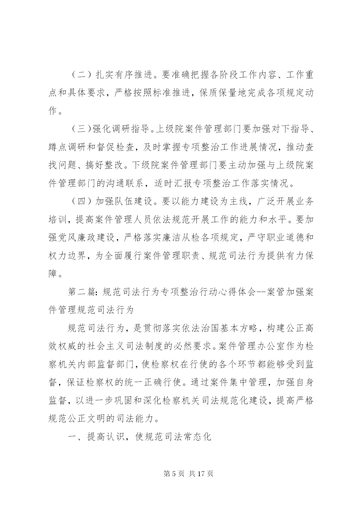 第PAGE\*Arabic\*MERGEFORMAT17页共NUMPAGES\*MERGEFORMAT17页规范司法行为专项行动学习心得从案件管理的视角来看规范司法行为专项整治工作案件管理办公室作为一个年轻的部门,承担着管理、服务、参谋、监督的职能,其日常工作和每一个案件本身以及嫌疑人、辩护人、诉讼代理人的权益密切相关。规范司法行为是推进社会主义民主法治建设特别是实施依法治国基本方略的必然要求,是解决执法司法中的突出问题,提高司法公信力,促进社会和谐稳定的必然要求,是检察机关适应执法环境新变化,全面正确履行法律监督职责的必然要求。这对于案件管理工作来说,提出了更加严格的标准。一、统一思想,提高认识,切实增强参加规范司法行为专项整治工作的使命感、责任感案件管理部门作为检察机关综合业务部门,在自身案件管理工作方面存在一些不依法依规履行管理职责的问题,作为检察机关司法办案的内部监督管理部门,对办案部门执行办案规范和纪律规定不严格、不依法依规保障诉讼参与人权利等行为负有监督职责。规范司法行为专项整治工作既对解决案件管理工作自身不规范、不严格的突出问题提出了更高要求,也为案件管理部门充分履行监督管理职能、发挥统筹司法规范化建设作用提供了重要契机,要切实把思想认识统一到高检院的决策部署上来,进一步增强参加专项整治工作的使命感、责任感,充分履职,加强监督,确保取得实实在在的成效。二、深入剖析,对照检查,集中解决案件管理工作自身存在的不规范问题(一)广泛开展学习活动。要按照《全国检察机关规范司法行为专项整治工作方案》的要求,采取多种形式,认真抓好规定内容的学习。全面认清司法体制改革和检察改革对案件管理工作的新要求,准确把握案件管理部门在统筹司法规范化建设中的职责和任务。(二)深入查摆自身问题。案件管理部门要围绕重点整治的八个方面问题,认真查找梳理统一受理、流程监控、质量评查、业务考评、律师接待、涉案财物管理、案件信息公开、统计信息管理以及业务信息化管理等工作中,有无不依规定程序进行管理和监督的问题,有无违规干扰办案、影响正常司法活动的问题,有无不愿、不会、不敢管理和监督的问题等。(三)坚持集中整改落实。要认真提出整改落实的具体工作方案,明确整改落实的目标、任务、时限和具体措施,逐项抓好整改。要重点抓好制度机制建设,不断完善案件管理工作的“制度链”。各级院案件管理部门要对现有制度规范进行梳理,对不符合高检院有关规定要求、不利于规范司法行为的制度规范进行修改或者清理。三、扎实履职,强化监督,促进检察机关司法规范化水平全面提升(一)通过加强流程管理促进规范司法。要充分利用检察机关统一业务应用系统,加强对司法办案活动的全程管理、动态监督。一要加强流程监控。强化对强制措施适用和侦查取证行为的程序控制,重点监督适用指定居所监视居住措施是否符合法定条件。加强对审查逮捕、起诉等诉讼环节的监管,及时履行诉讼监督职责。二要严格涉案财物监督管理。要按照修订后的《人民检察院刑事诉讼涉案财物管理规定》,加强对办案部门查封、扣押、冻结、处理涉案财物的监督管理,坚决防止和纠正查封、扣押、冻结、处理等方面存在的不规范问题。三要落实司法办案风险评估预警工作。认真履行组织协调和督促检查职责,切实依托统一业务应用系统强化风险评估预警的功能应用,对业务部门开展风险评估预警工作情况进行严格把控和定期巡查。(二)通过深化案件信息公开促进规范司法。要建立健全日常巡查和定期通报制度。突出解决案件信息和法律文书发布不规范、案件信息表述过于简单、以普通刑事案件替代重要案件信息发布、擅自缩小公开范围、不敢发布职务犯罪案件以及延迟案件信息公开等问题,确保案件信息公开质量。(三)通过科学评价办案绩效和质量促进规范司法。要认真贯彻最高人民检察院《关于进一步改进检察业务考评工作的意见》(高检发〔2014〕7号),精简考评项目,集中清理有违检察工作规律和客观性、可核查性不强的项目。要改变简单通过撤案率、不捕率、不起诉率、无罪判决率等数字指标、比率控制线评价检察业务的做法,坚决防止和纠正为追求考评成绩而弄虚作假、不规范司法等问题。(四)通过做好律师接待工作促进规范司法。要切实做好辩护人与诉讼代理人接待工作,依法保障律师执业权利,对律师的有关申请不能一转了之,要积极督促办案部门严格按照法律规定落实辩护人、诉讼代理人的诉讼权利,并及时反馈结果。(五)通过强化案件统计信息管理促进规范司法。要进一步规范业务信息填录,引导和督促业务部门严格执行即将下发的《全国检察机关统一业务应用系统填录标准和说明》,督促业务部门真实准确填录案件信息,从源头上防止数据造假。(六)通过加强统一业务系统的应用管理促进规范司法。高检院将根据司法改革要求和检察业务新需求,启动二期研发,促进系统性能再上新台阶。高检院将