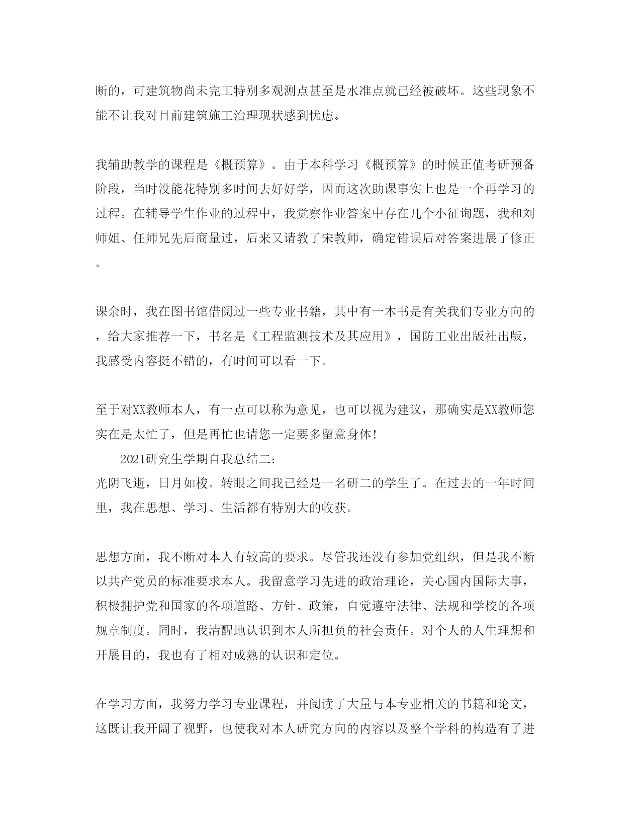 2021研究生学期自我参考总结(2)2021研究生学期自我总结一:本学期是我上研究生以来的第一个学期。总的来说,研究生生活较之本科有了更多的自由,因而也具有更大的自主性和自由发挥空间。更重要的是,实践的时机更多了,而且这种实践相关于本科的实习来说更具真实性。假设说把本科的实习看作是一个战地记者,可以看到滚滚硝烟,感遭到枪林弹雨,那研究生阶段的实践确实是一个拿着枪冲锋陷阵的战士了。这学期我一共学习了六门课程,包括科学社会主义理论与实践、自然辩证法、C++程序设计、数值分析、数理统计和随机过程。其中C++程序设计和数值分析两门课程教师讲起课来操着一口标准的河南话。尽管说我在河南也呆了四年多了,但有些河南话仍然听不太明白,尤其是对方讲话比较快的时候。因而,这两门课程我在课余花的时间也比较多一点。我主要参与了郑大新区教师公寓楼的沉降观测工程。由于暑假跟着崔师兄在国贸进展了一个暑假的沉降观测,因而这次工程完成得也比较顺利。不过,这其中也遇到和觉察了不少征询题。首先是测量仪器征询题。开始测量的时候,觉察水准仪左读数和右读数得出的高差值总是相差特别大,但两者差值根本上保持固定。我们几个对仪器通过几次测试和排查,最后确定是尺子的征询题。原来测量实验室新买的铟钢尺和往常我们在工地使用过的铟钢尺刻度不一致。其次,这次测量的环境也比较复杂。该工程正处于外墙装修阶段,由于施工缘故,特别多观测点甚至水准点都被破坏。我们测量了三个组团一共是九个楼,但能用的水准点只有三个,其余的都需要引测。另外,由于建筑物四周地面尚未回填,有些观测点相对水准仪位置较高,因而只能加设转点,或者把仪器架在制高点甚至是阳台上。这些征询题都是在国贸测量的时候所没遇到过的,因而也有不少新的收获。不过,通过这次实践,我觉察施工方的沉降观测报表记录极不标准,数据也极不真实,有些一看就明白是胡乱编造的。另外,沉降观测应该是贯穿建筑物使用期限不断的,可建筑物尚未完工特别多观测点甚至是水准点就已经被破坏。这些现象不能不让我对目前建筑施工治理现状感到忧虑。我辅助教学的课程是《概预算》。由于本科学习《概预算》的时候正值考研预备阶段,当时没能花特别多时间去好好学,因而这次助课事实上也是一个再学习的过程。在辅导学生作业的过程中,我觉察作业答案中存在几个小征询题,我和刘师姐、任师兄先后商量过,后来又请教了宋教师,确定错误后对答案进展了修正。课余时,我在图书馆借阅过一些专业书籍,其中有一本书是有关我们专业方向的,给大家推荐一下,书名是《工程监测技术及其应用》,国防工业出版社出版,我感受内容挺不错的,有时间可以看一下。至于对XX教师本人,有一点可以称为意见,也可以视为建议,那确实是XX教师您实在是太忙了,但是再忙也请您一定要多留意身体!2021研究生学期自我总结二:光阴飞逝,日月如梭。转眼之间我已经是一名研二的学生了。在过去的一年时间里,我在思想、学习、生活都有特别大的收获。思想方面,我不断对本人有较高的要求。尽管我还没有参加党组织,但是我不断以共产党员的标准要求本人。我留意学习先进的政治理论,关心国内国际大事,积极拥护党和国家的各项道路、方针、政策,自觉遵守法律、法规和学校的各项规章制度。同时,我清醒地认识到本人所担负的社会责任。对个人的人生理想和开展目的,我也有了相对成熟的认识和定位。在学习方面,我努力学习专业课程,并阅读了大量与本专业相关的书籍和论文,这既让我开阔了视野,也使我对本人研究方向的内容以及整个学科的构造有了进一步的认识。在英语学习方面,我顺利通过了大学英语六级考试,具备了较强的英语听、说、读、写才能。在生活方面,我尊敬师长,团结同学,并积极参加学校各种文体活动。刚入学时,我就参加了校研究生会并在文艺部担任副部长职务,热情为同学们效劳,认真完成各项工作。除此之外,我还参加了学校研究生舞蹈队和学院的舞蹈队,并参加各种文艺演出。接下来的的日子,我应该更加努力学习,认真研究专业知识,争取更好的成绩。
