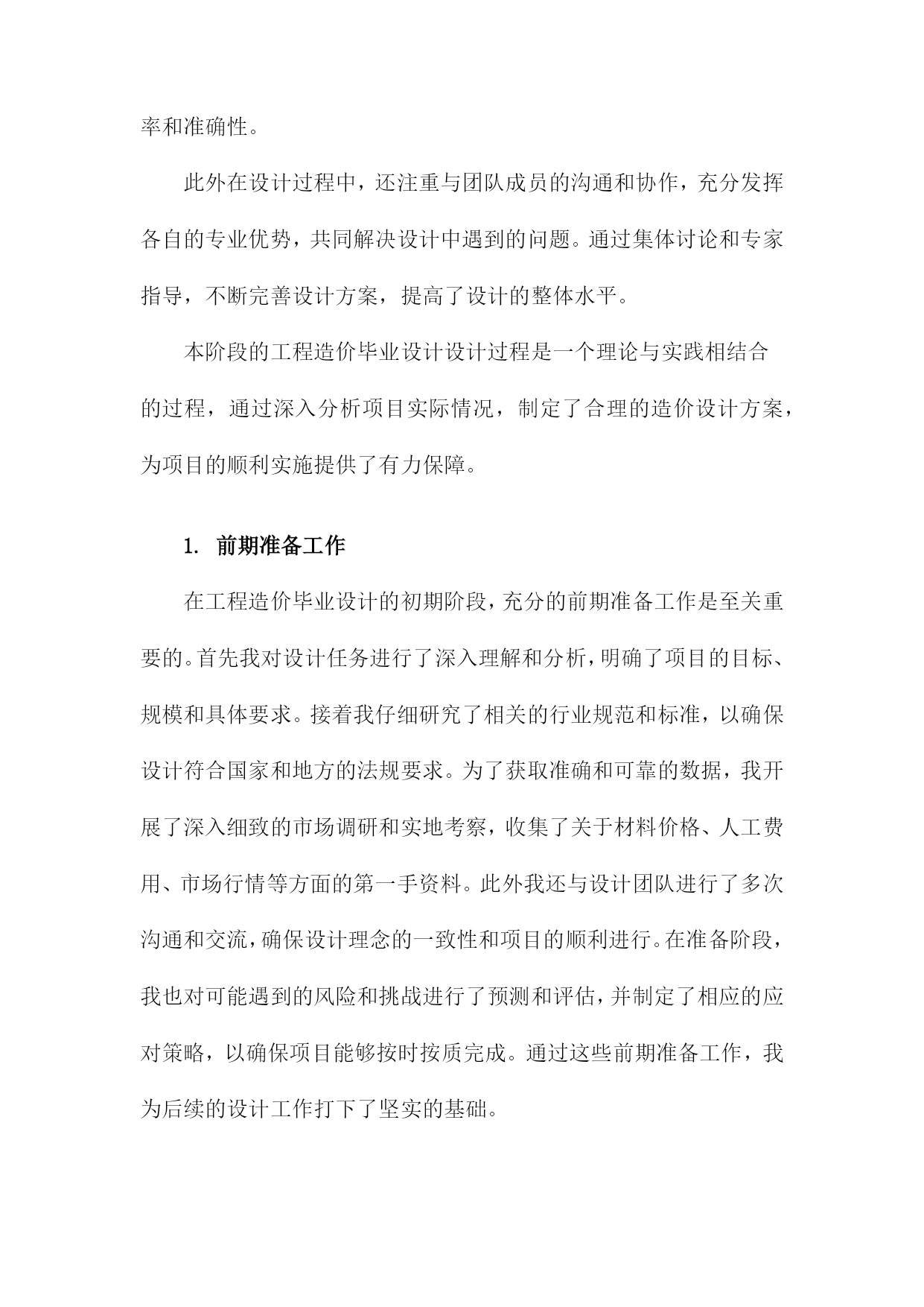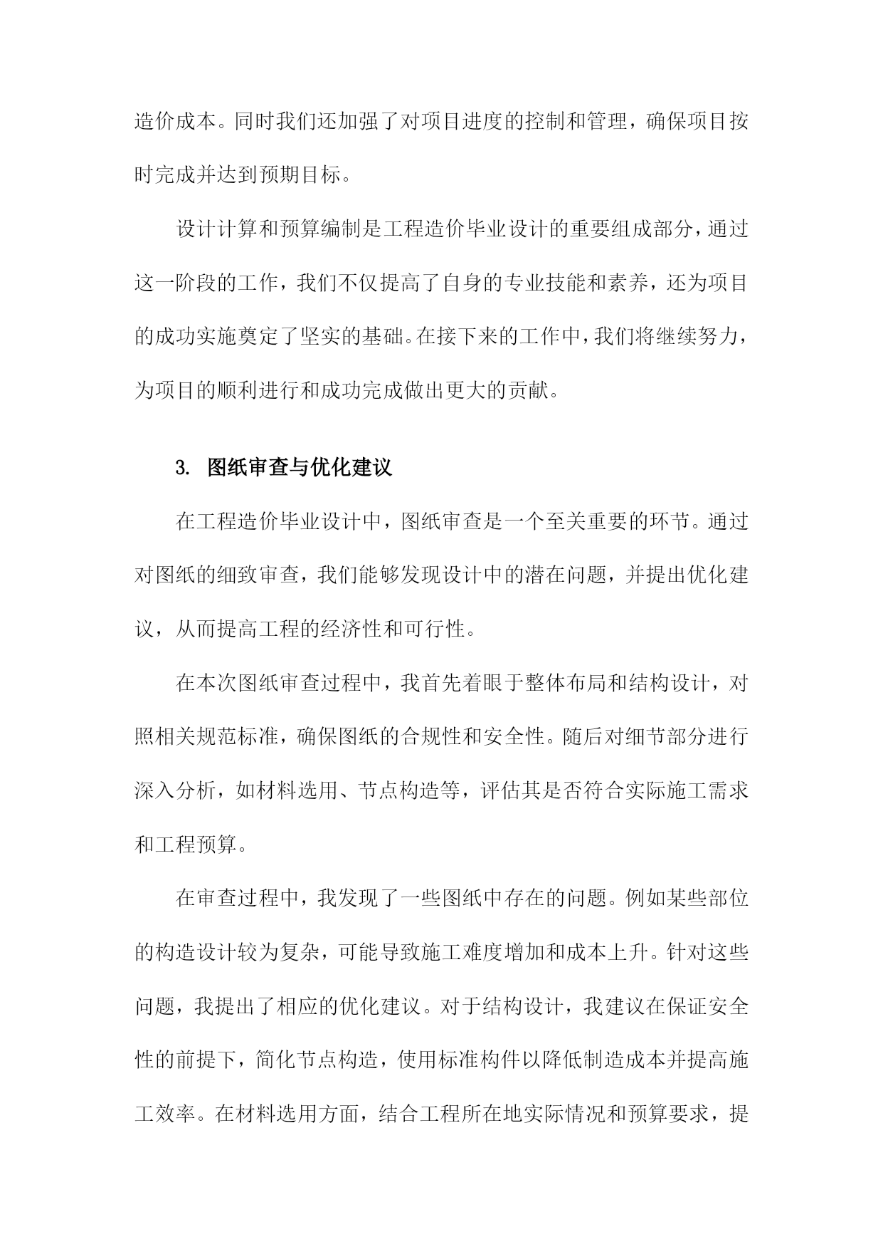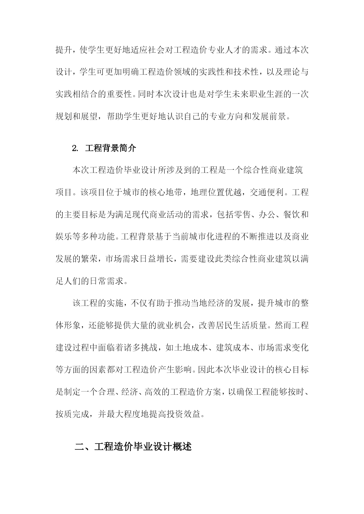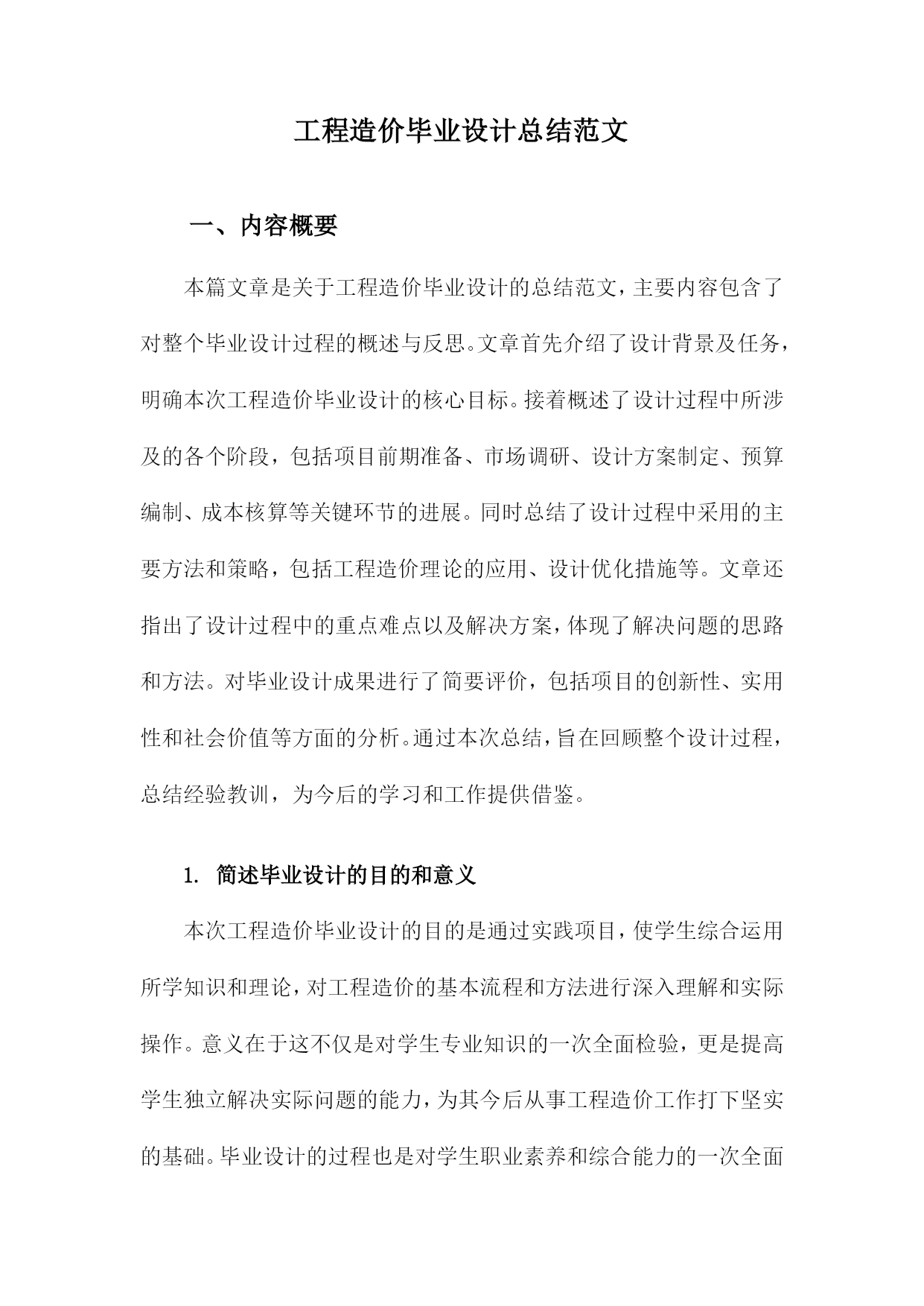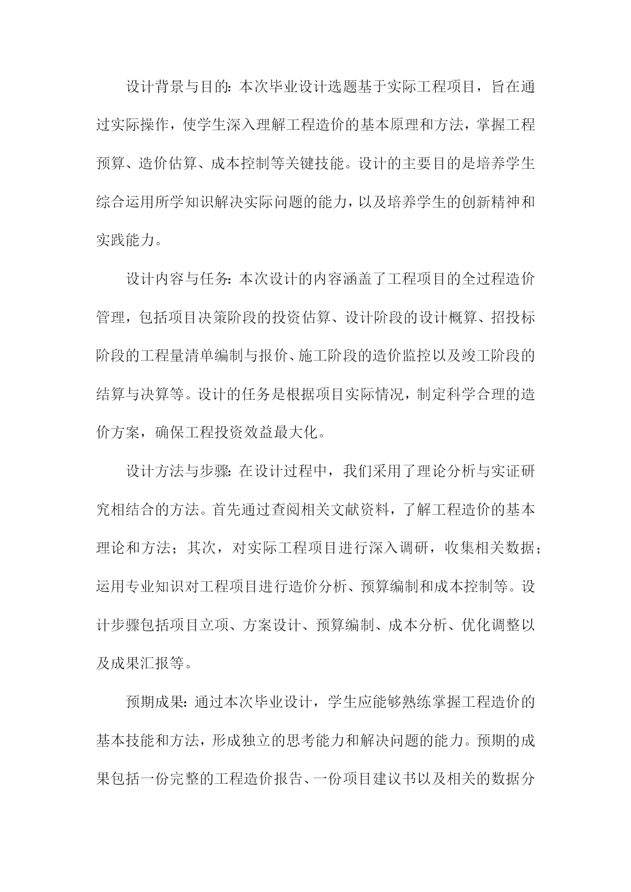 工程造价毕业设计总结范文一、内容概要本篇文章是关于工程造价毕业设计的总结范文,主要内容包含了对整个毕业设计过程的概述与反思。文章首先介绍了设计背景及任务,明确本次工程造价毕业设计的核心目标。接着概述了设计过程中所涉及的各个阶段,包括项目前期准备、市场调研、设计方案制定、预算编制、成本核算等关键环节的进展。同时总结了设计过程中采用的主要方法和策略,包括工程造价理论的应用、设计优化措施等。文章还指出了设计过程中的重点难点以及解决方案,体现了解决问题的思路和方法。对毕业设计成果进行了简要评价,包括项目的创新性、实用性和社会价值等方面的分析。通过本次总结,旨在回顾整个设计过程,总结经验教训,为今后的学习和工作提供借鉴。1.简述毕业设计的目的和意义本次工程造价毕业设计的目的是通过实践项目,使学生综合运用所学知识和理论,对工程造价的基本流程和方法进行深入理解和实际操作。意义在于这不仅是对学生专业知识的一次全面检验,更是提高学生独立解决实际问题的能力,为其今后从事工程造价工作打下坚实的基础。毕业设计的过程也是对学生职业素养和综合能力的一次全面提升,使学生更好地适应社会对工程造价专业人才的需求。通过本次设计,学生可更加明确工程造价领域的实践性和技术性,以及理论与实践相结合的重要性。同时本次设计也是对学生未来职业生涯的一次规划和展望,帮助学生更好地认识自己的专业方向和发展前景。2.工程背景简介本次工程造价毕业设计所涉及到的工程是一个综合性商业建筑项目。该项目位于城市的核心地带,地理位置优越,交通便利。工程的主要目标是为满足现代商业活动的需求,包括零售、办公、餐饮和娱乐等多种功能。工程背景基于当前城市化进程的不断推进以及商业发展的繁荣,市场需求日益增长,需要建设此类综合性商业建筑以满足人们的日常需求。该工程的实施,不仅有助于推动当地经济的发展,提升城市的整体形象,还能够提供大量的就业机会,改善居民生活质量。然而工程建设过程中面临着诸多挑战,如土地成本、建筑成本、市场需求变化等方面的因素都对工程造价产生影响。因此本次毕业设计的核心目标是制定一个合理、经济、高效的工程造价方案,以确保工程能够按时、按质完成,并最大程度地提高投资效益。二、工程造价毕业设计概述设计背景与目的:本次毕业设计选题基于实际工程项目,旨在通过实际操作,使学生深入理解工程造价的基本原理和方法,掌握工程预算、造价估算、成本控制等关键技能。设计的主要目的是培养学生综合运用所学知识解决实际问题的能力,以及培养学生的创新精神和实践能力。设计内容与任务:本次设计的内容涵盖了工程项目的全过程造价管理,包括项目决策阶段的投资估算、设计阶段的设计概算、招投标阶段的工程量清单编制与报价、施工阶段的造价监控以及竣工阶段的结算与决算等。设计的任务是根据项目实际情况,制定科学合理的造价方案,确保工程投资效益最大化。设计方法与步骤:在设计过程中,我们采用了理论分析与实证研究相结合的方法。首先通过查阅相关文献资料,了解工程造价的基本理论和方法;其次,对实际工程项目进行深入调研,收集相关数据;运用专业知识对工程项目进行造价分析、预算编制和成本控制等。设计步骤包括项目立项、方案设计、预算编制、成本分析、优化调整以及成果汇报等。预期成果:通过本次毕业设计,学生应能够熟练掌握工程造价的基本技能和方法,形成独立的思考能力和解决问题的能力。预期的成果包括一份完整的工程造价报告、一份项目建议书以及相关的数据分析报告等。这些成果将为工程项目的决策提供科学依据,有助于项目的顺利实施和完成。本次工程造价毕业设计是一次综合性、实践性的学习过程,旨在提高学生的专业技能和综合素质,为未来的职业生涯打下坚实的基础。1.工程项目的选择及其重要性在工程造价毕业设计中,工程项目的选择具有至关重要的地位。本次毕业设计所选取的工程项目,不仅关乎学术理论的应用与实践,更直接关系到实际工程的经济效益与社会效益。选择工程项目的过程,实际上是对专业知识的一次深度整合和实际应用能力的展现。本次工程项目选择的依据是严谨的市场调研与实际需求结合的分析结果,保证所选项目既具备实际应用价值,也符合行业发展趋势。同时所选项目的特性及规模决定了毕业设计的难度与深度,体现了设计的专业性和系统性。本次设计的核心目的在于通过理论知识的运用,优化工程项目的设计方案,提高项目的经济效益,并为将来的工程实践打下坚实的基础。在选定项目之后,进行深度的研究和详细的分析是必不可少的步骤。工程项目的选择和策划涉及了前期的调研分析、对地方市场环境的认识以及长远的社会经济发展趋势理解等重要的步骤和决策。这关乎着工程项目的实施质量,关系到工程造价方案的准确性和科学性,影响着项目的投资效益以及经济效益的发挥。因此工程项目的选择不仅是毕业设计的重要一环,更是对工程造价