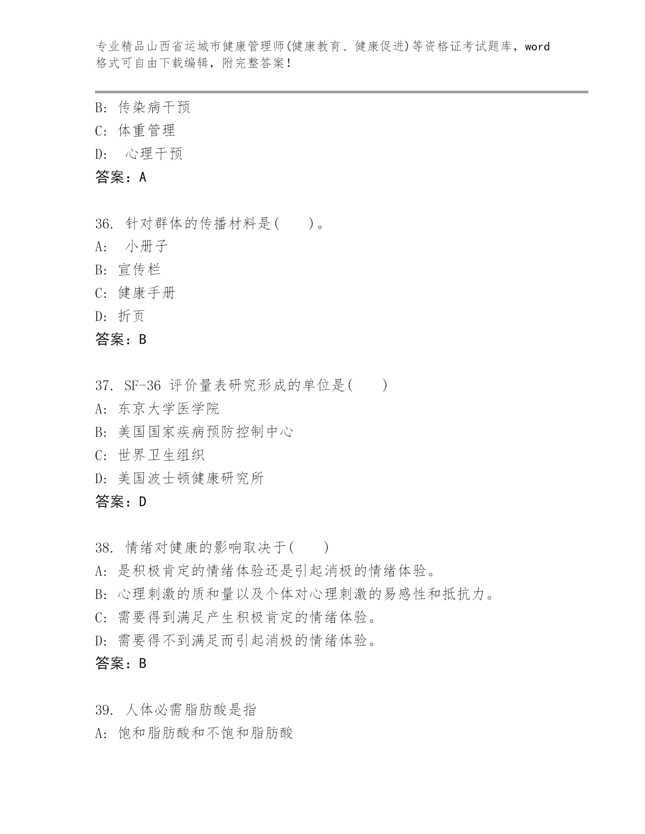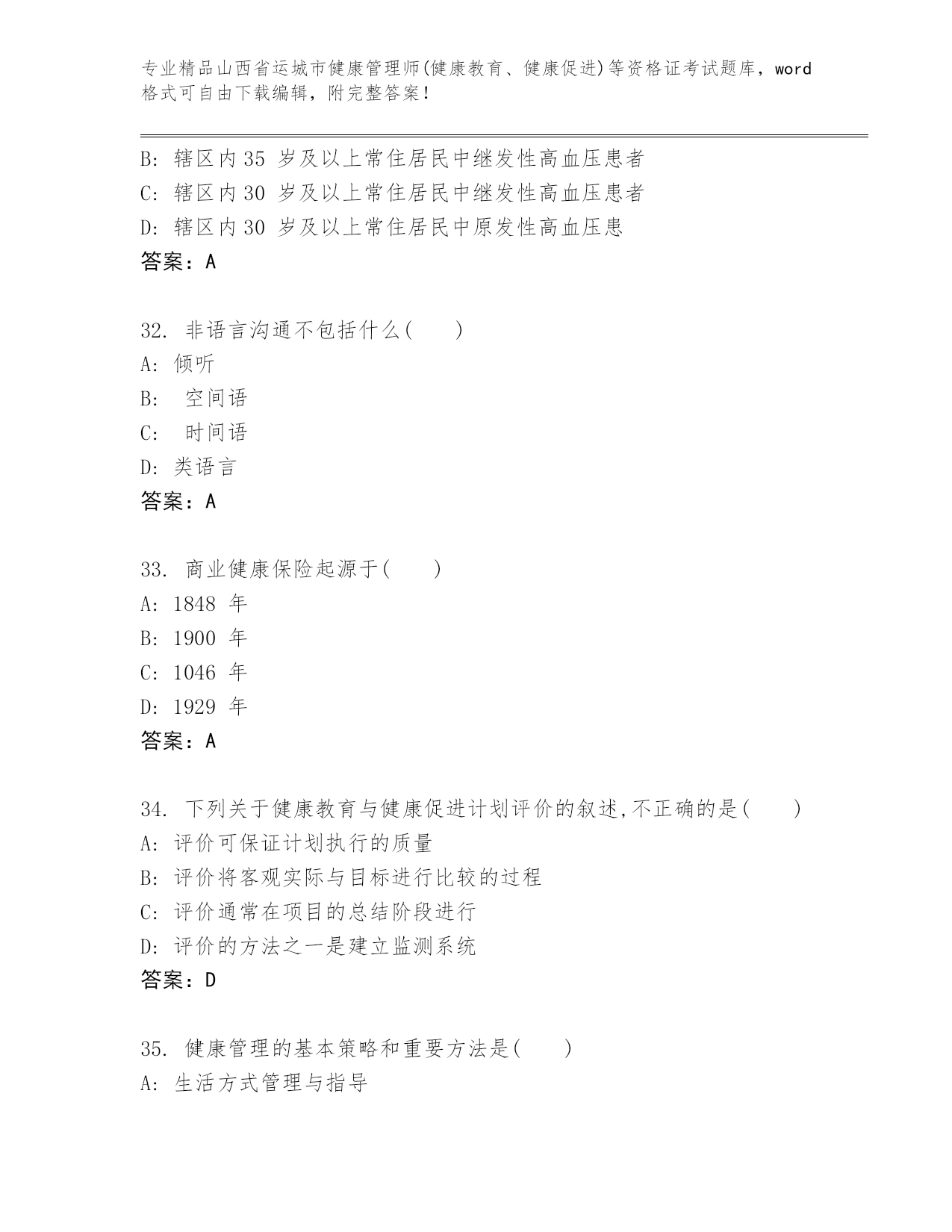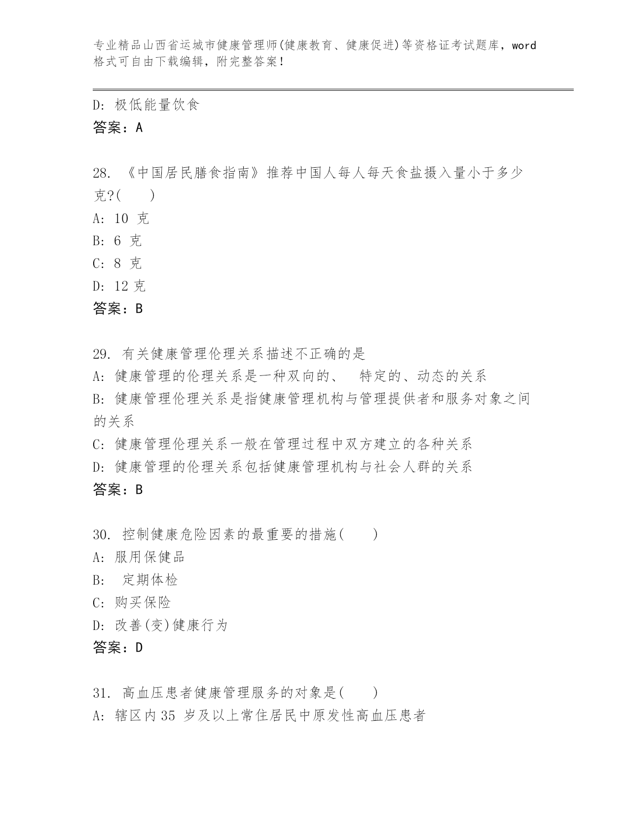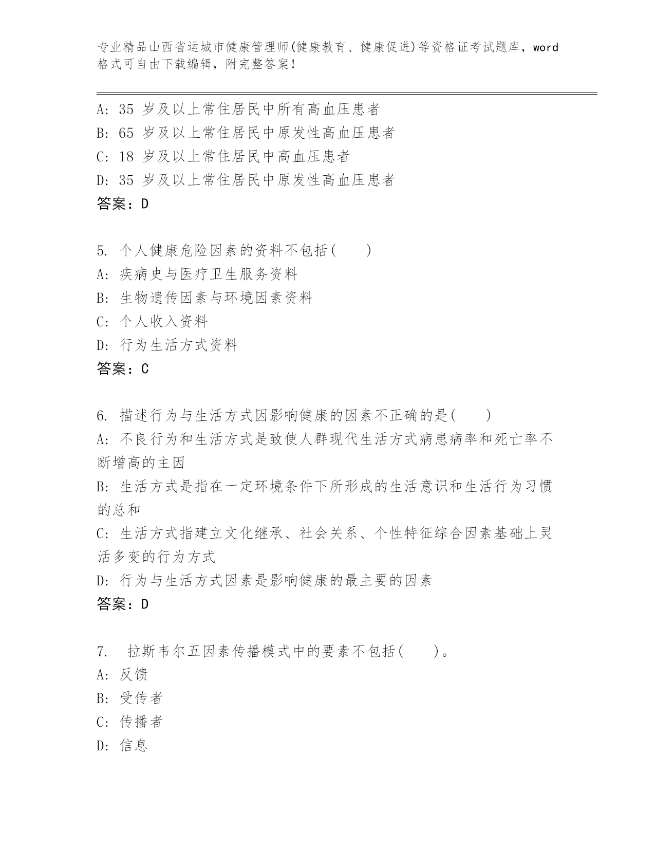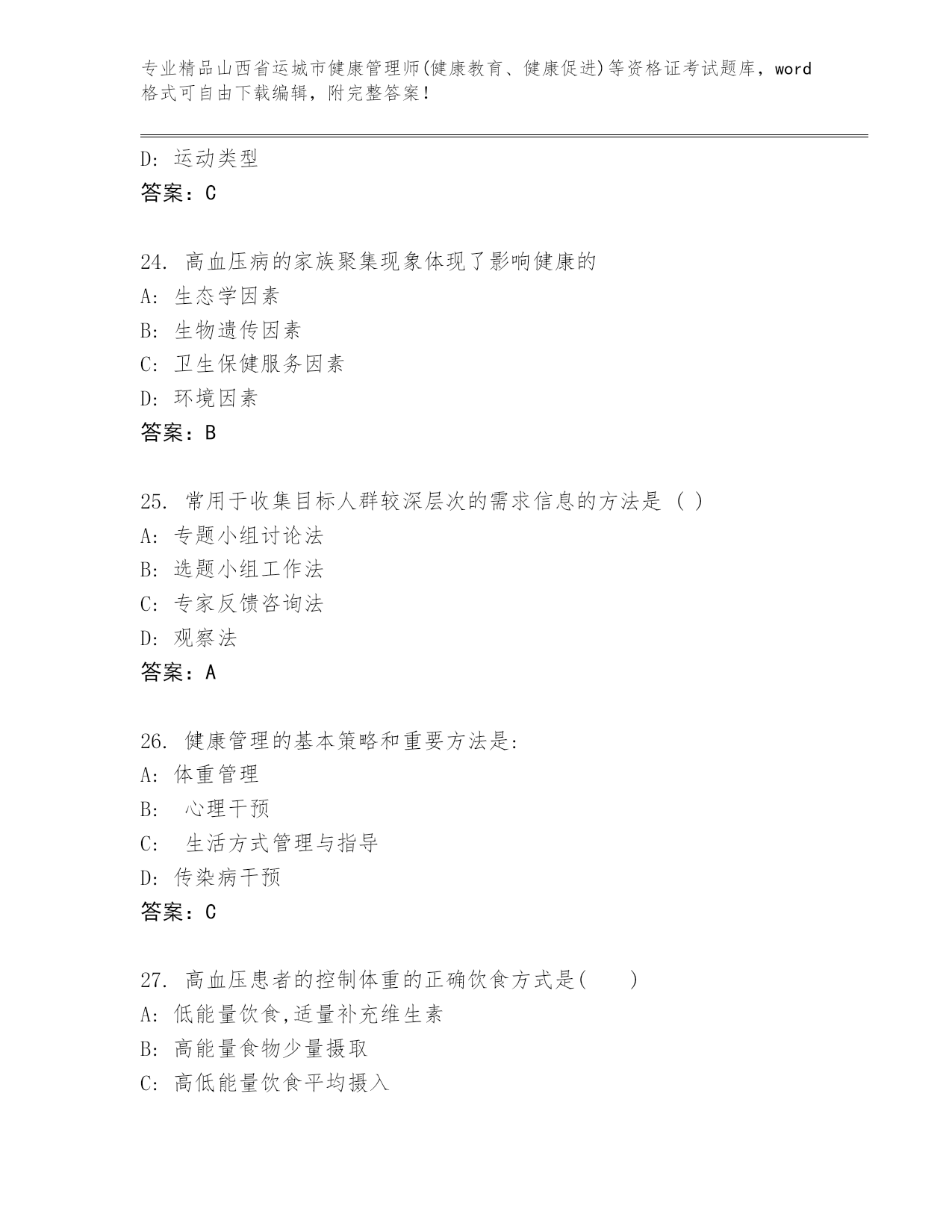 山西省运城市健康管理师(健康教育、健康促进)等资格证考试大全含答案【能力提升】.docx
