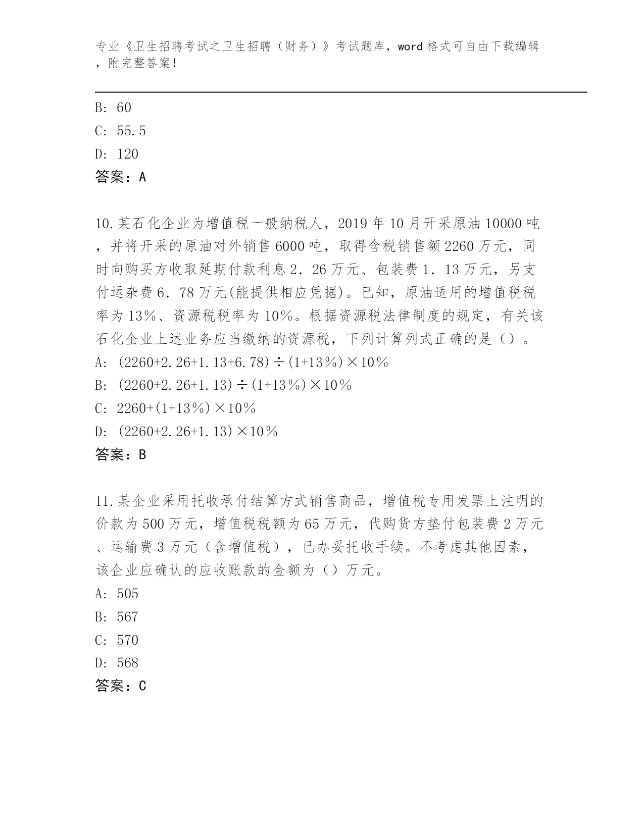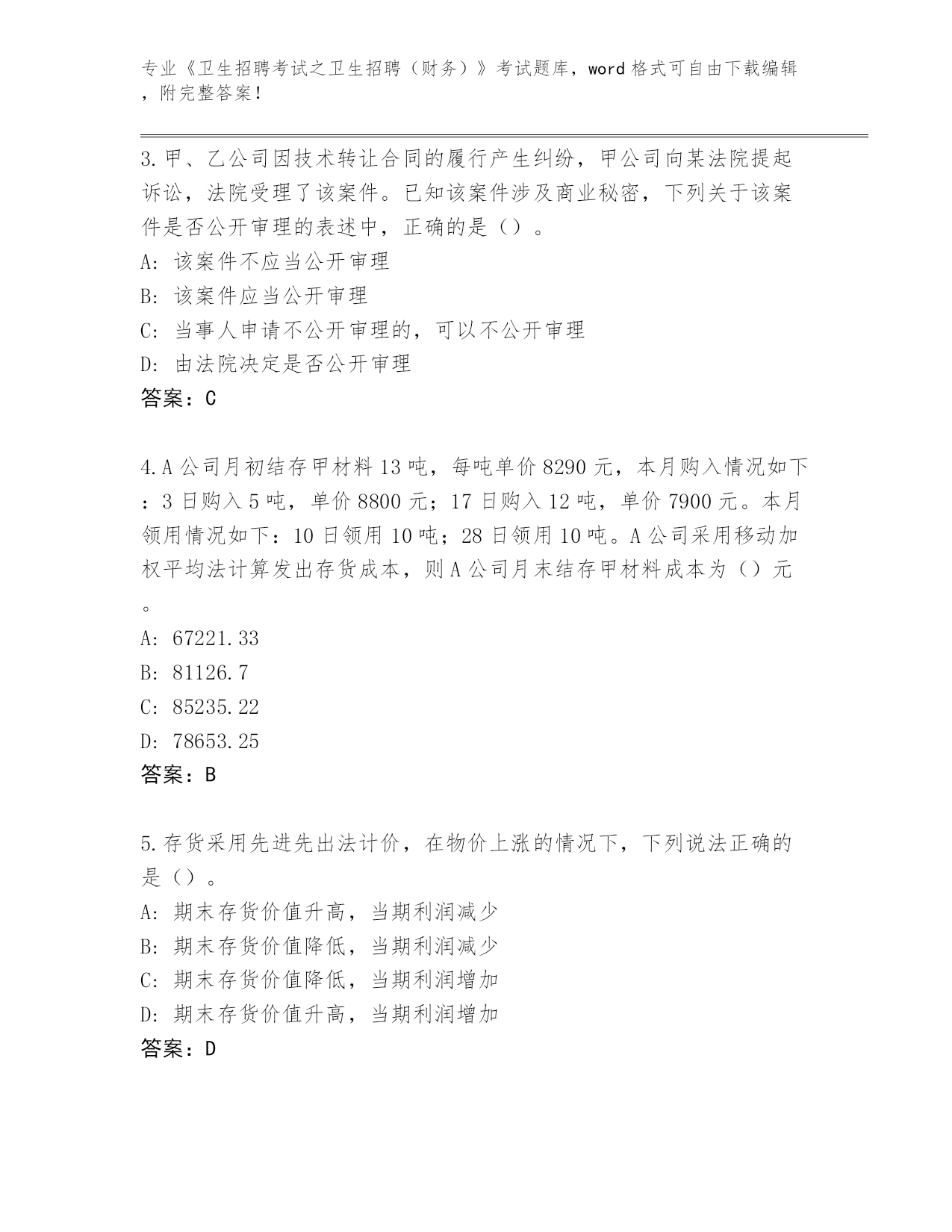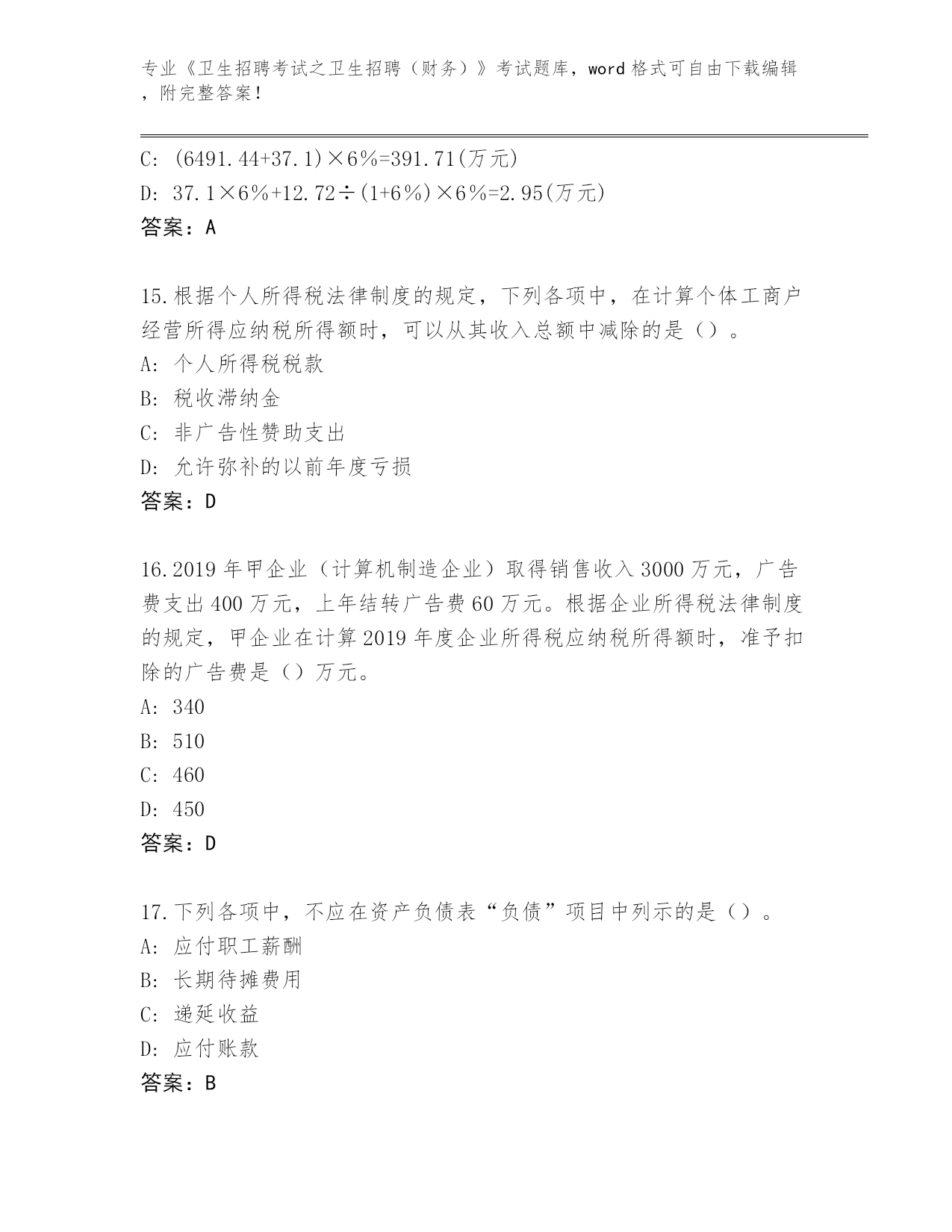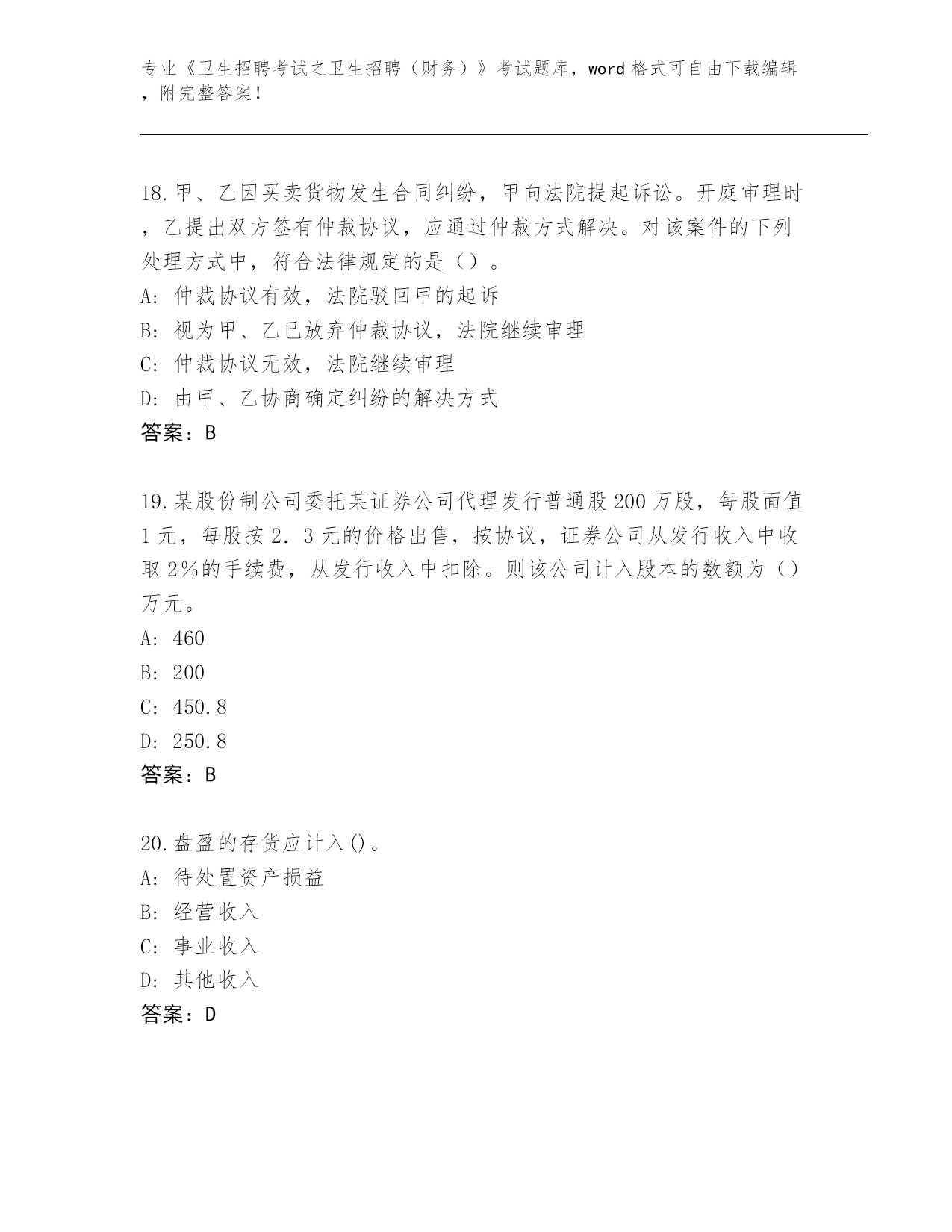 贵州省历年《卫生招聘考试之卫生招聘(财务)》资格考试通关秘籍题库(预热题)