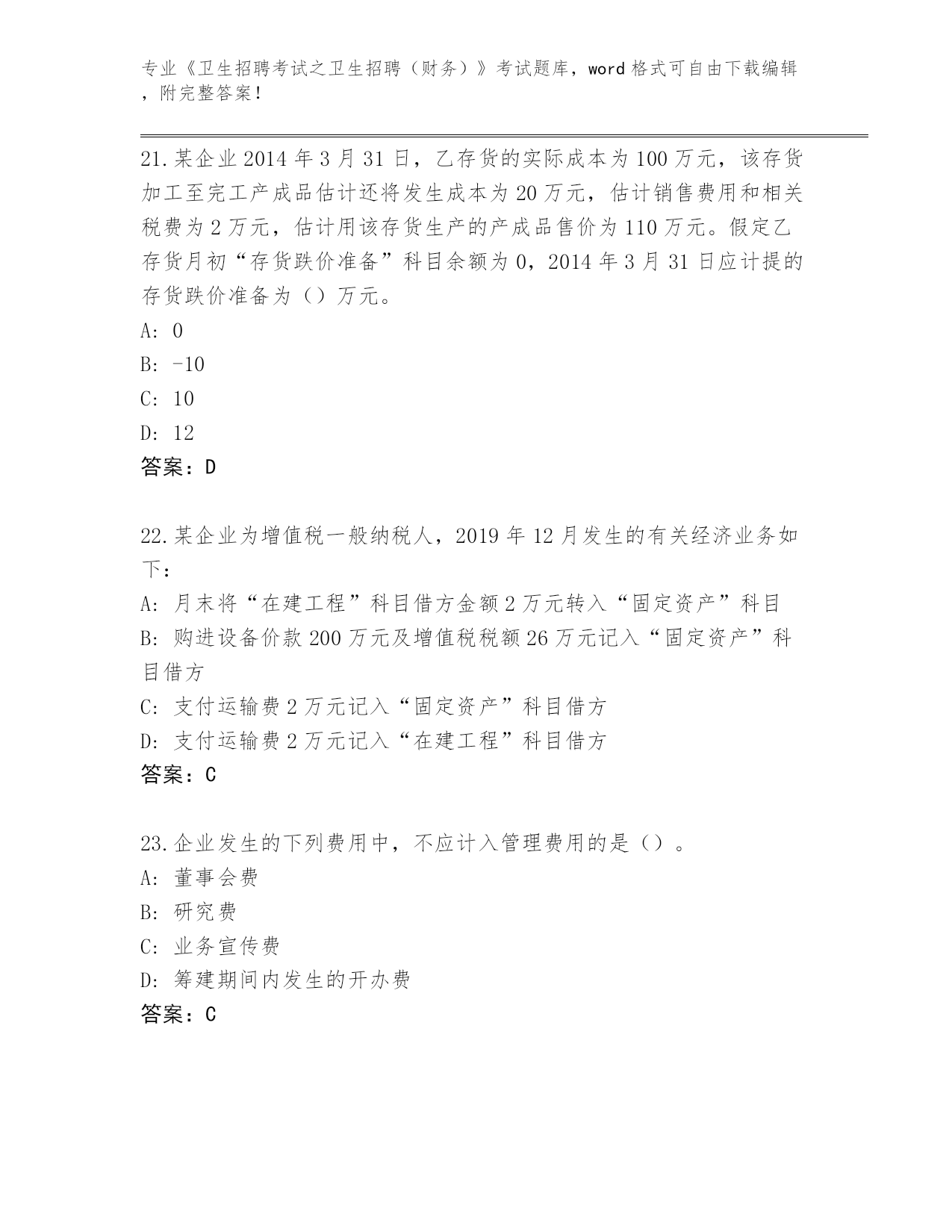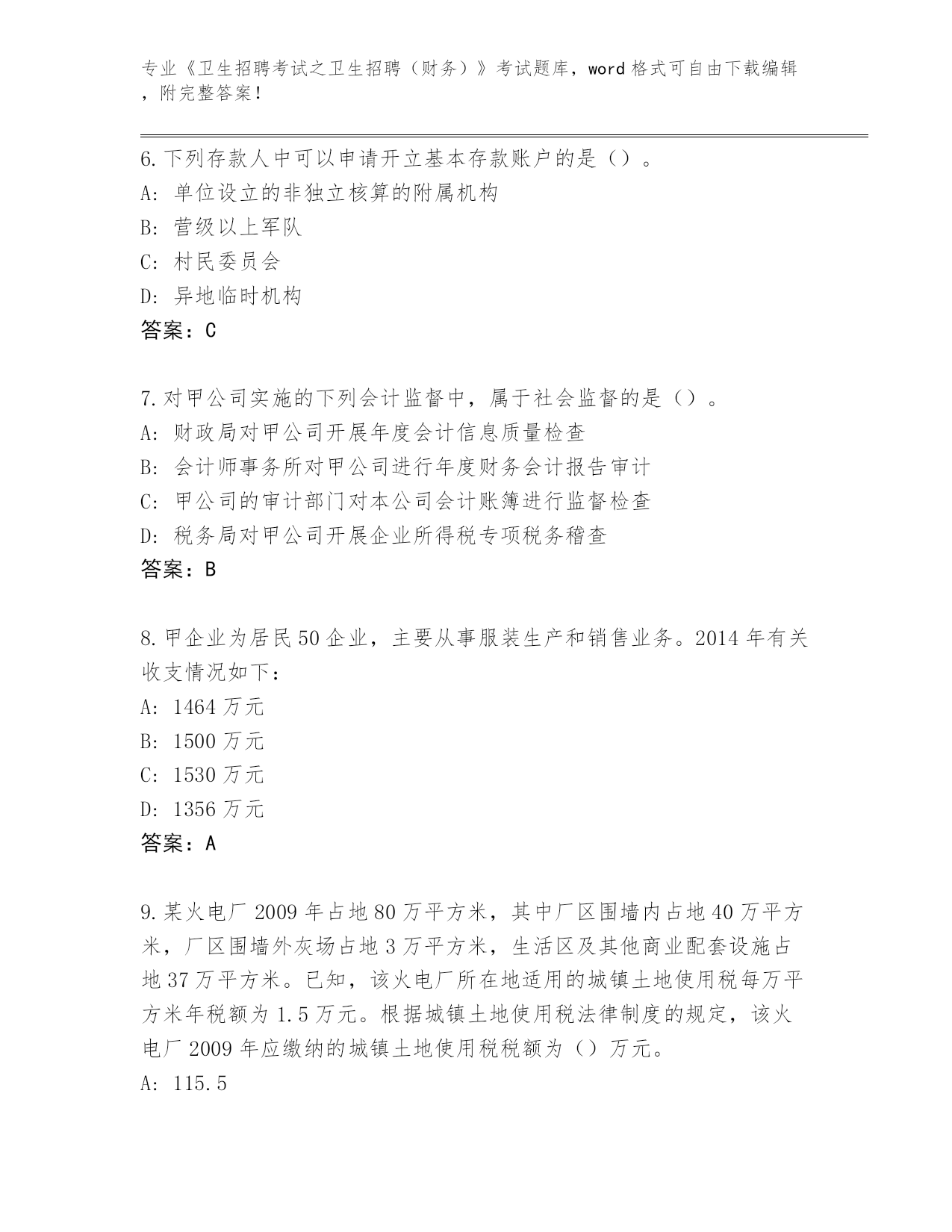 四川省《卫生招聘考试之卫生招聘(财务)》考试通关秘籍题库【预热题】