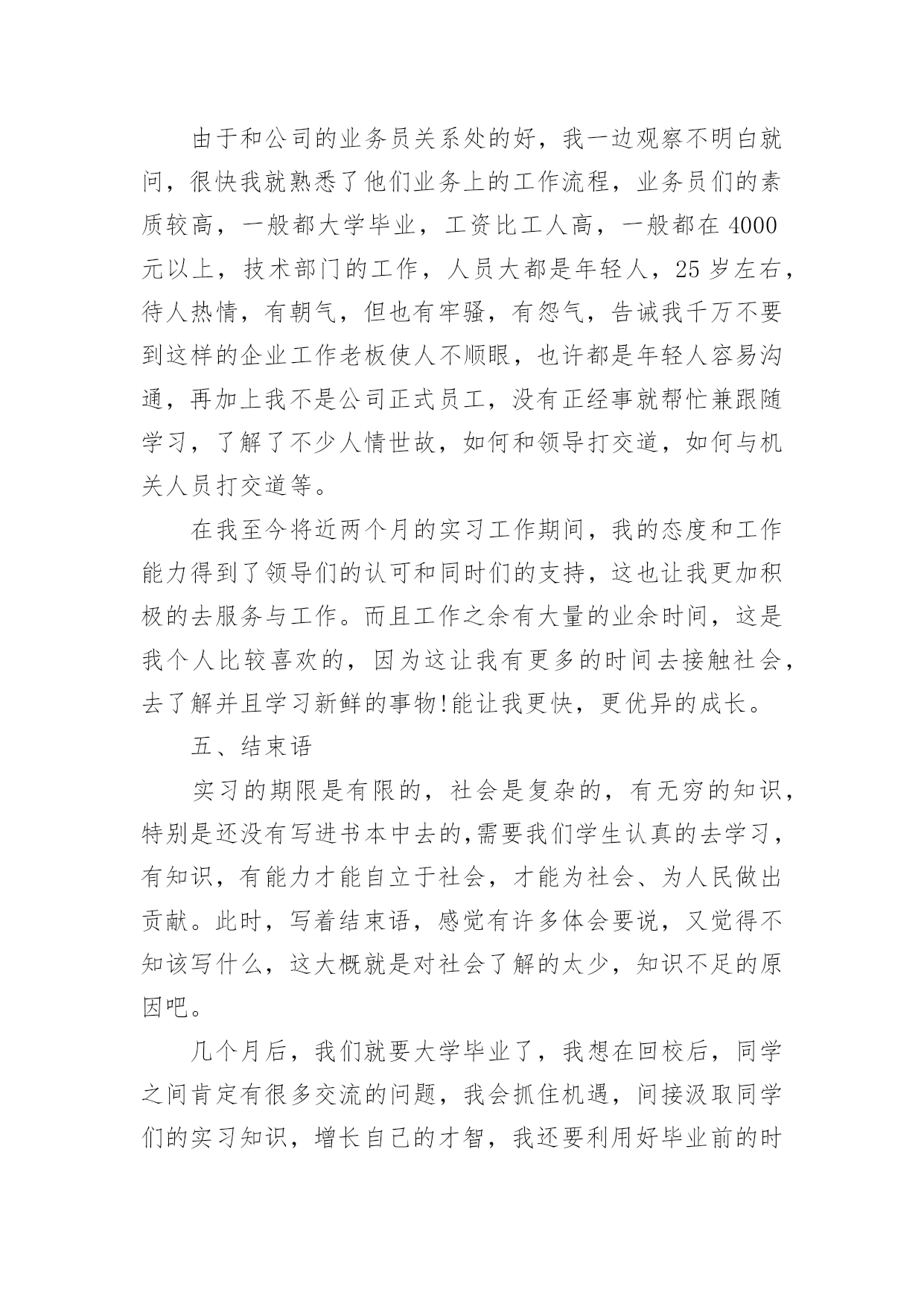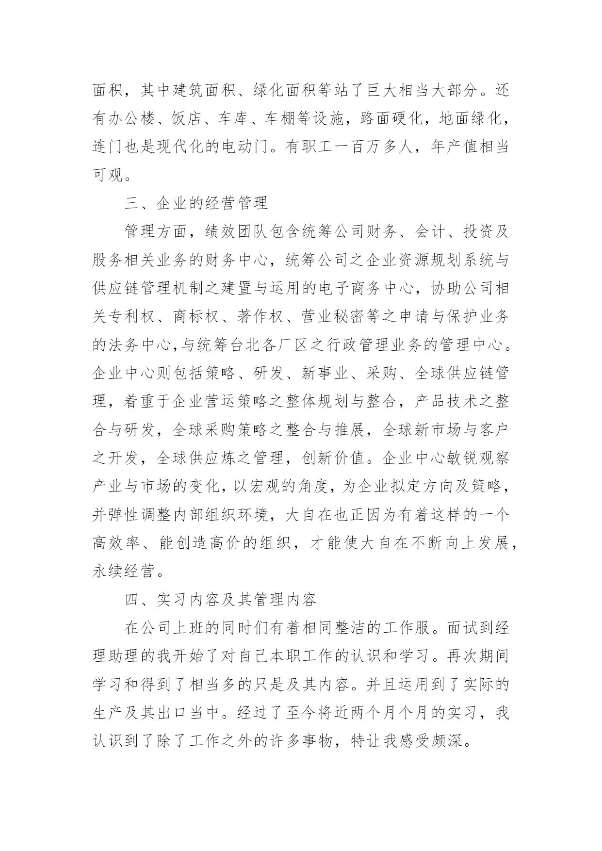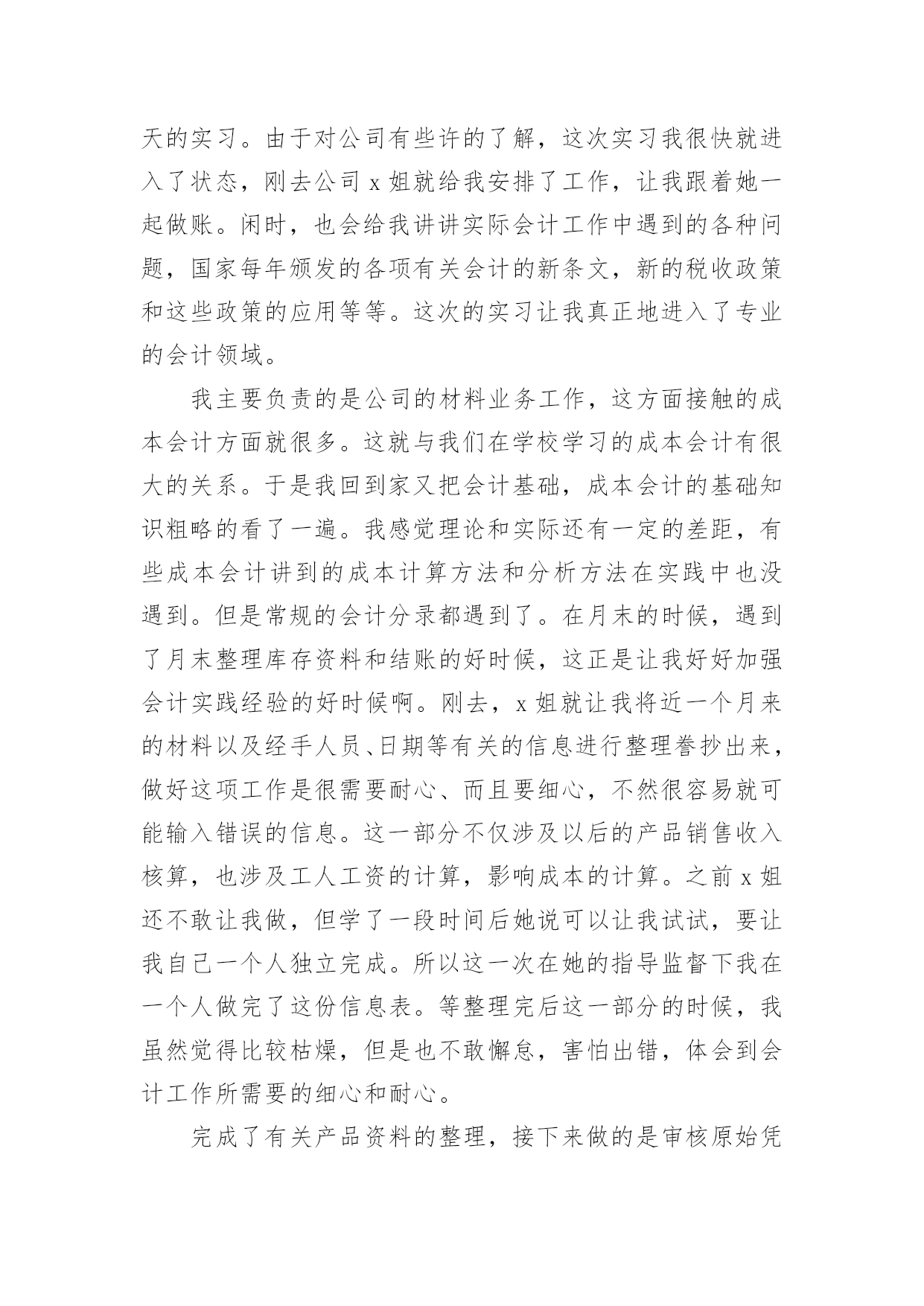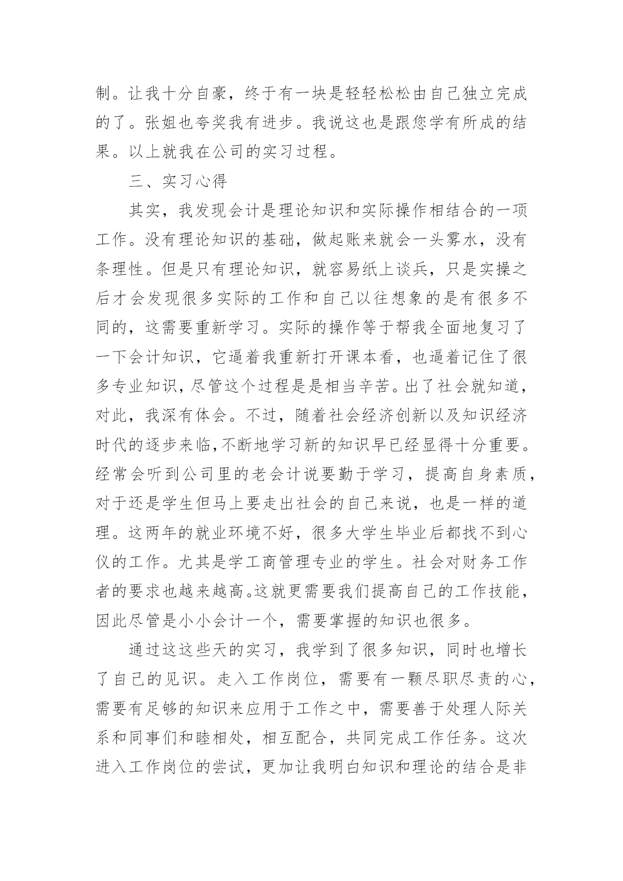 工商管理专业实习报告总结工商管理专业实习报告总结(精选5篇)总结是在某一时期、某一项目或某些工作告一段落或者全部完成后进行回顾检查、分析评价,从而得出教训和一些规律性认识的一种书面材料,通过它可以全面地、系统地了解以往的学习和工作情况,我想我们需要写一份总结了吧。我们该怎么写总结呢?以下是小编整理的工商管理专业实习报告总结(精选5篇),供大家参考借鉴,希望可以帮助到有需要的朋友。工商管理专业实习报告总结(精选5篇)1一、单位介绍xx矿业有限公司是一家煤炭公司,主要经营煤炭及其伴生资源开采;原煤洗选;煤炭产品经营和销售。公司库里火沙免煤矿位于xx市xx西北部距棋盘井镇40公里,东邻矿产资源富集的千里山和xx—拉萨高速公路;西距包兰铁路和110国道1公里;南距乌海机场6公里,毗邻西部煤城乌海市。公司坚持“服务为本,顾客至上”的宗旨。拥有“勤奋、务实、诚信、创新”的企业精神和“勤业、敬业、精业、创业”的员工精神,创造良好的企业环境,以全新的管理模式,完善的技术,周到的服务,卓越的品质为生存根本。二、实习过程与内容我在xx矿业公司进行了为期x月x号到x月x号共x天的实习。由于对公司有些许的了解,这次实习我很快就进入了状态,刚去公司x姐就给我安排了工作,让我跟着她一起做账。闲时,也会给我讲讲实际会计工作中遇到的各种问题,国家每年颁发的各项有关会计的新条文,新的税收政策和这些政策的应用等等。这次的实习让我真正地进入了专业的会计领域。我主要负责的是公司的材料业务工作,这方面接触的成本会计方面就很多。这就与我们在学校学习的成本会计有很大的关系。于是我回到家又把会计基础,成本会计的基础知识粗略的看了一遍。我感觉理论和实际还有一定的差距,有些成本会计讲到的成本计算方法和分析方法在实践中也没遇到。但是常规的会计分录都遇到了。在月末的时候,遇到了月末整理库存资料和结账的好时候,这正是让我好好加强会计实践经验的好时候啊。刚去,x姐就让我将近一个月来的材料以及经手人员、日期等有关的信息进行整理誊抄出来,做好这项工作是很需要耐心、而且要细心,不然很容易就可能输入错误的信息。这一部分不仅涉及以后的产品销售收入核算,也涉及工人工资的计算,影响成本的计算。之前x姐还不敢让我做,但学了一段时间后她说可以让我试试,要让我自己一个人独立完成。所以这一次在她的指导监督下我在一个人做完了这份信息表。等整理完后这一部分的时候,我虽然觉得比较枯燥,但是也不敢懈怠,害怕出错,体会到会计工作所需要的细心和耐心。完成了有关产品资料的整理,接下来做的是审核原始凭证、编制会计分录、填制记帐凭证,这是一项连续的工作。由于之前的实习有手工做账的经历,让我对做账不是那么无所适从,不知从何下手了,而且旁边有x姐手把手教。刚开始是审核原始凭证,这部分比较得心应手,因为在我审核之前,x姐已经审核了一遍他说让我在对着看一遍,以防万一。让我不能像自己想象中的那样只是需要核对一些信息而已,要我把一张张入库单或出库单上面的手续必须完整。因为在日常的业务中因为不是每个人都了解在业务发生时应该进行怎样的填制手续,才能进行会计的入账。手续欠缺的不能登账。如果发生这种情况,就必须与协调相关的部门补齐手续,这样下来就比较麻烦了,所以在收到这些原始单据的时候一定要检查清楚。接下来是会计分录的编制。在做会计分录的时候学到的东西是最多的,在做一笔费用业务的时候,不知道是归入制造费用还是管理费用,我就问问x姐,她跟我讲了一下有关这笔业务的发生,我才明白过来。有些虽是生产部门发生的但他属于管理费用的范畴,不属于制造费用。虽然之前在学校学过怎样录入这种分录,但没有实际运用掌握的就不牢靠。这让我知道会计必须理论与实际相结合。做完这笔业务,我发现能够比较好地做好会计分录必须对整个公司的生产运作有一定的了解,这样才能够处理好每一笔经济业务。而且公司会计让我填制记账凭证摘要的时候让我一定要填清楚,不要害怕写不下,上课老师教我们摘要一定要简单达意。尽量写少一点。但这位会计却让我一定要写完整,她说这分录,还有明细账主要是给内部人看的,所以一定要看的人一目了然。能很快看出自己想要的,也是为了便于自己后续检查和处理问题。还有一些细节的问题:如,做涉及两个以上帐户的会计分录的时候,我总是把它做成两个简单会计分录,虽然这不是原则性的错误,但是这明显地是记帐手续复杂了,而且也不利于集中反映一项经济业务的全面情况。还有就是一些实务的问题:收付款项经常有零头,零头一般都是没有支付或收取,我在做分录的时候,把这一点也忽略了,也没有认真再看一下这笔业务的款项到底是如何处理的,就直接地把款项做成销售收入或是现金存款的减少,到最后去看他们原先已经做好的记账凭证,才知道零头是这样处理的:未收的零头一般做成营业外支出,相应地未支付的零头做成营业外收入。这些都是