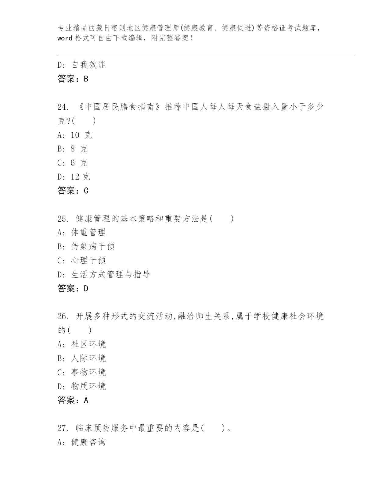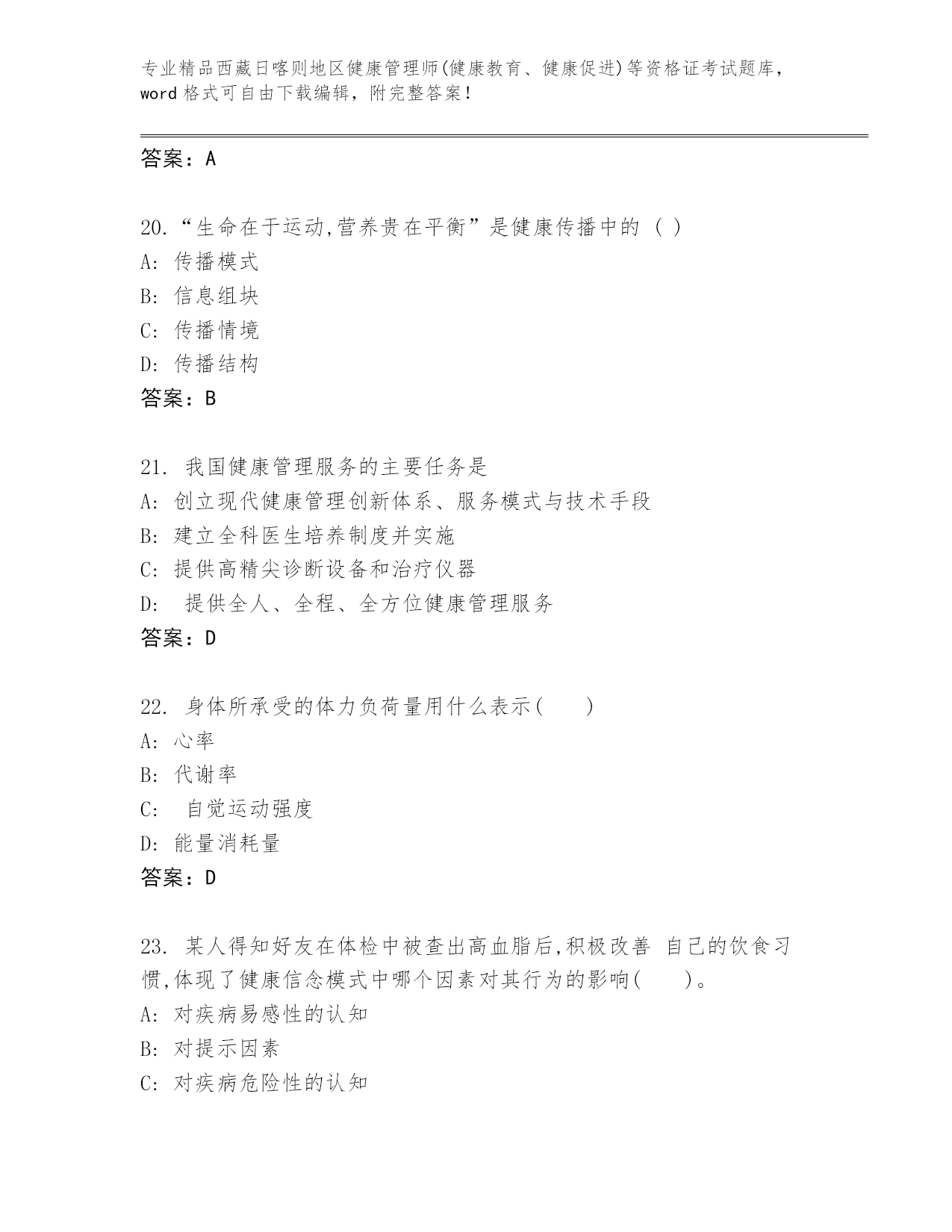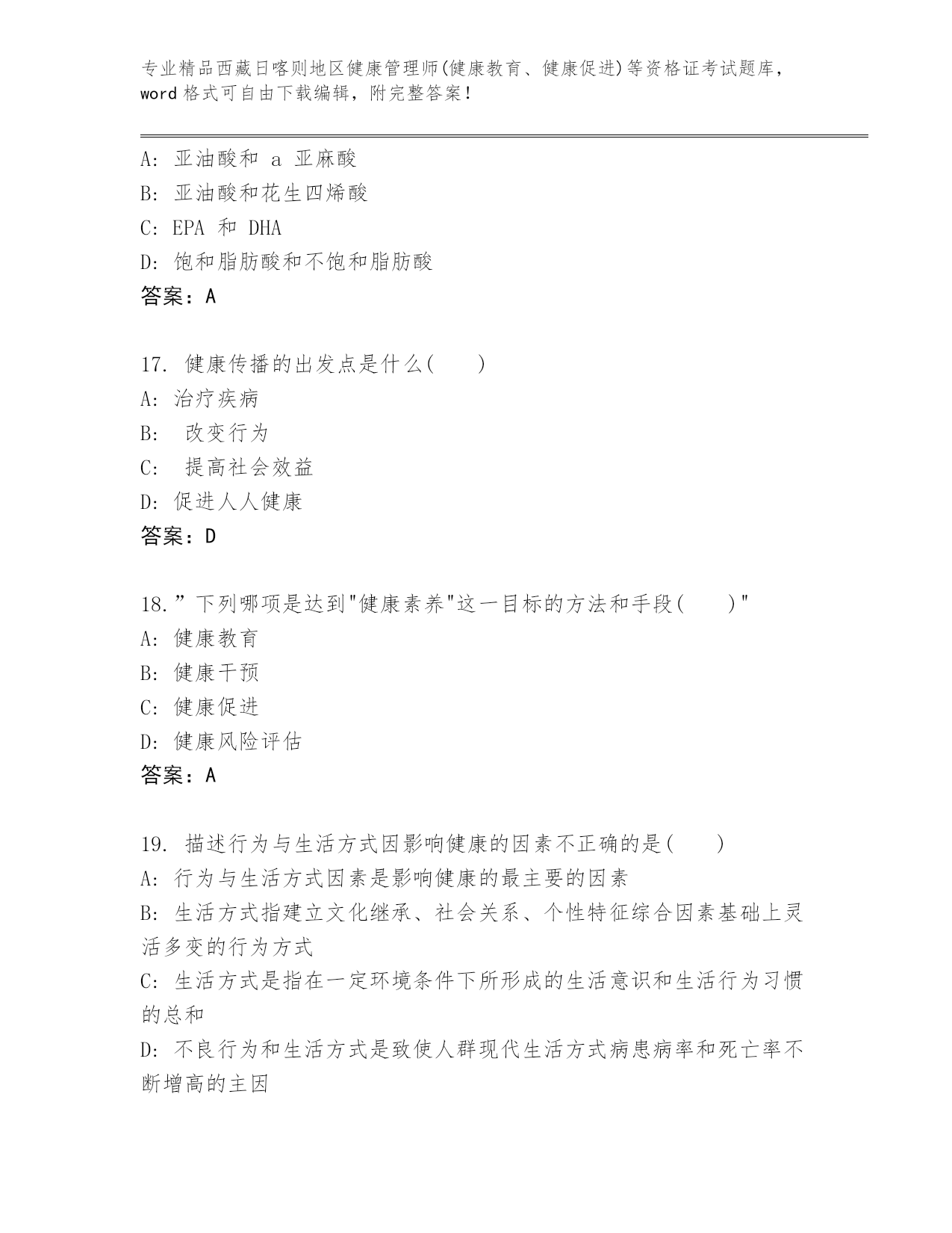 精编西藏日喀则地区健康管理师(健康教育、健康促进)等资格证考试真题(研优卷).docx