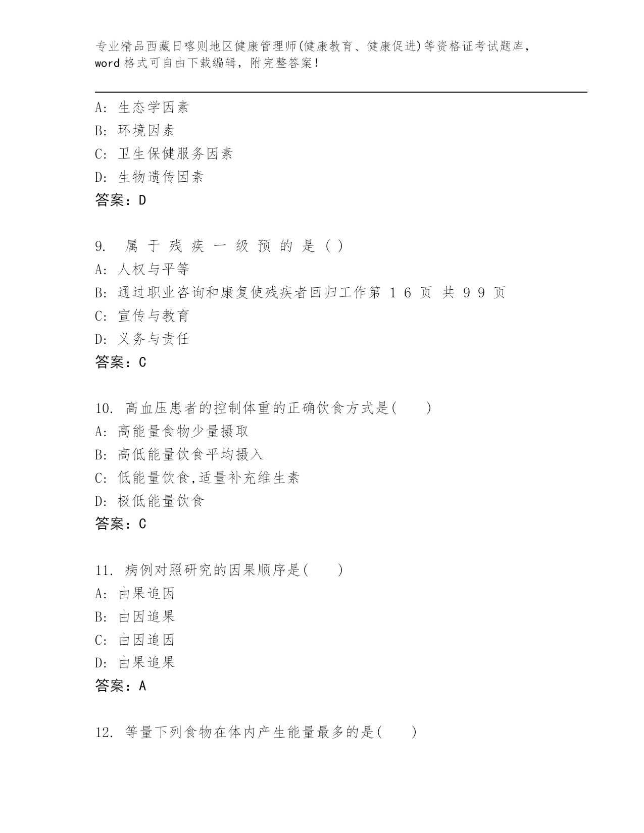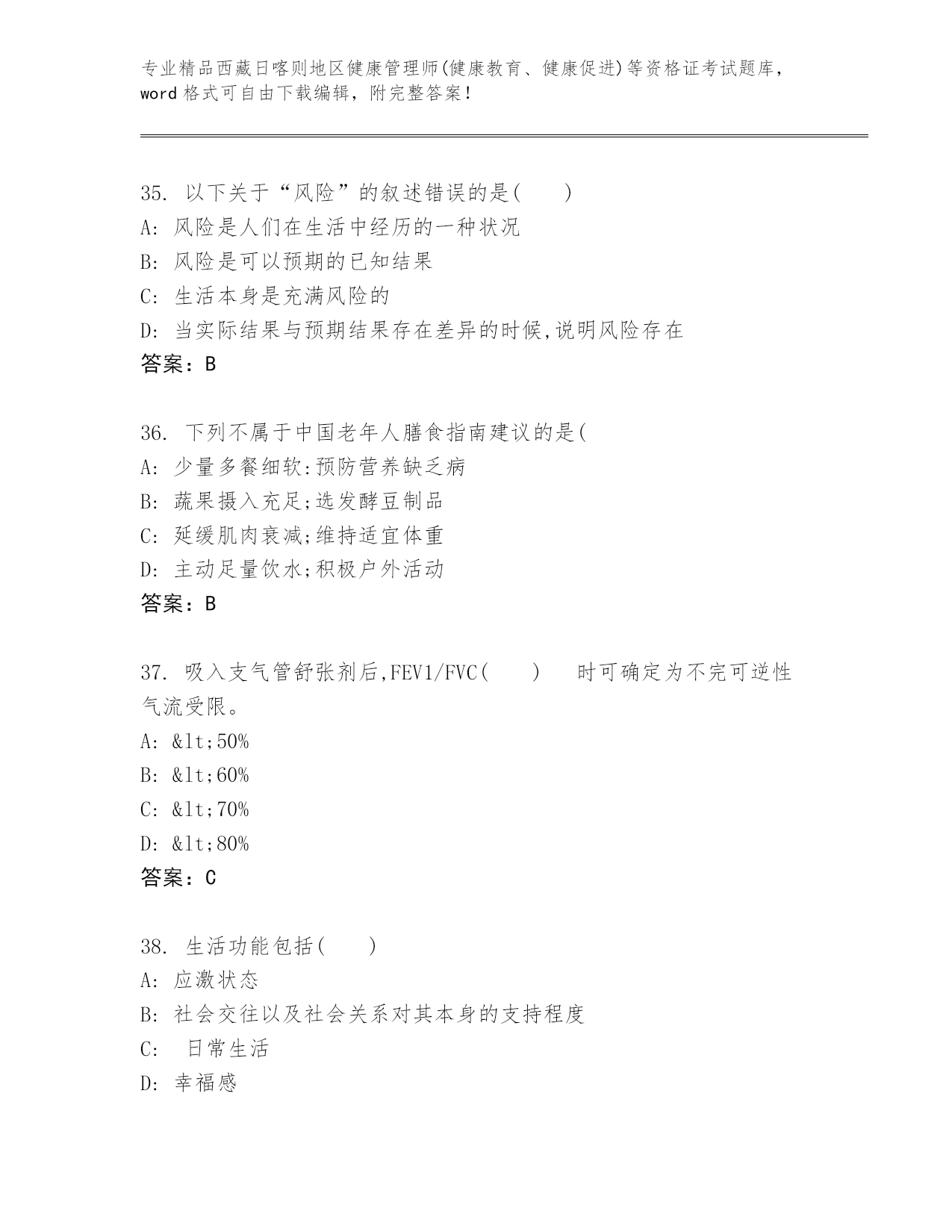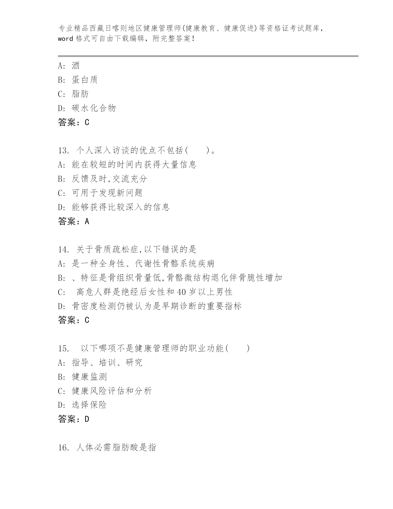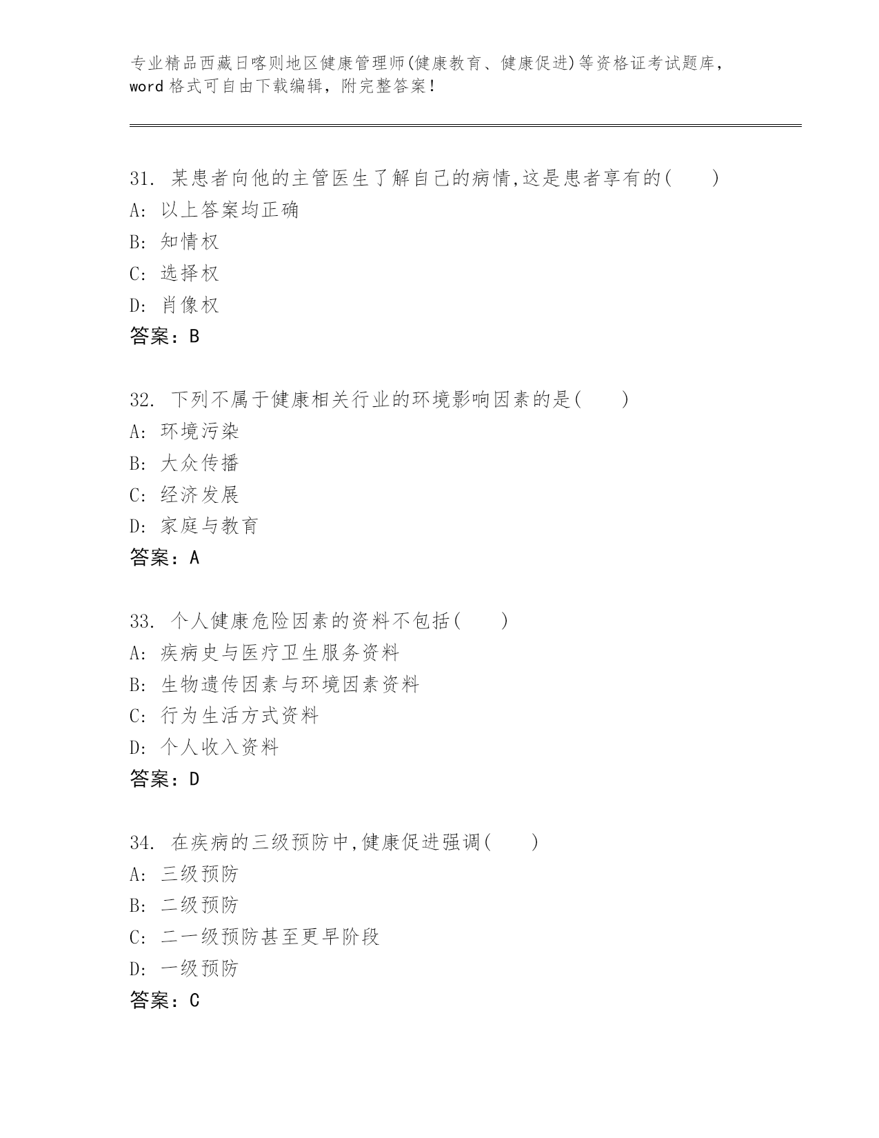 精编西藏日喀则地区健康管理师(健康教育、健康促进)等资格证考试真题(研优卷).docx