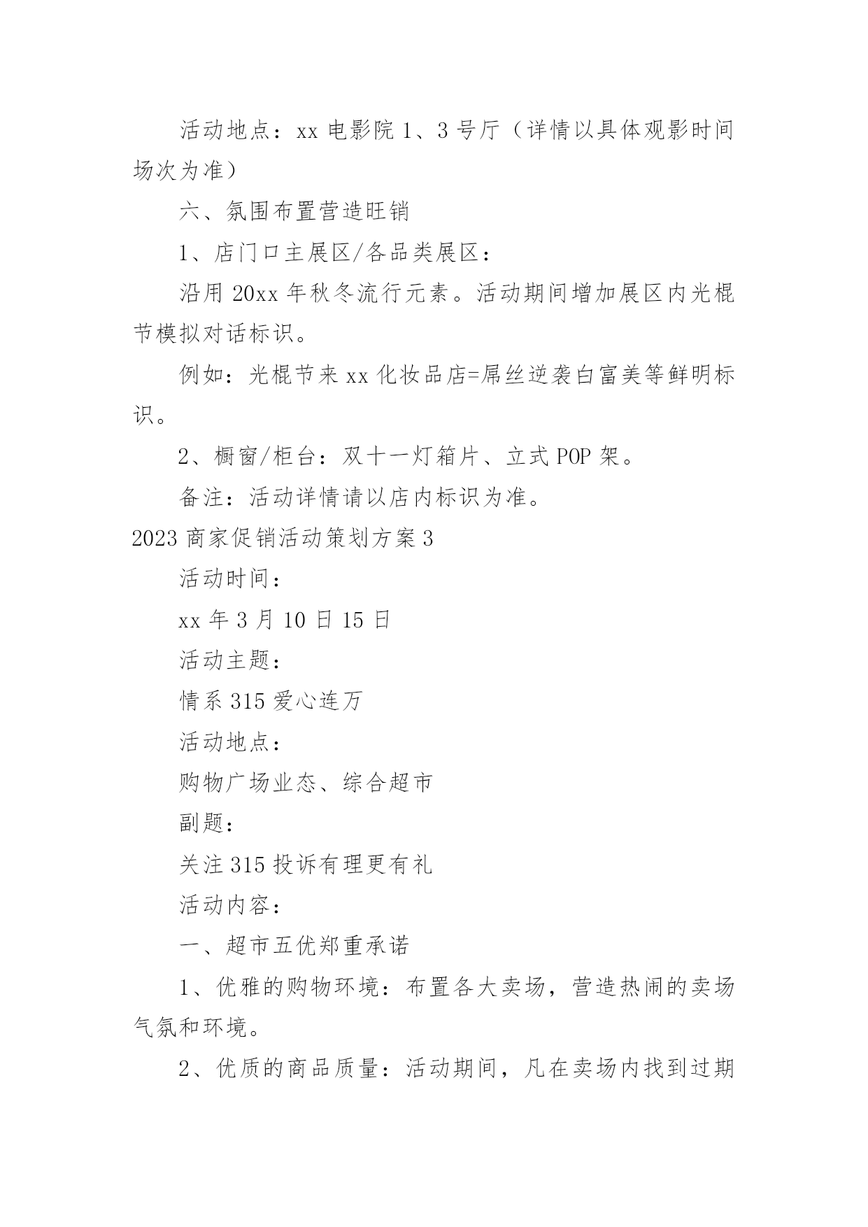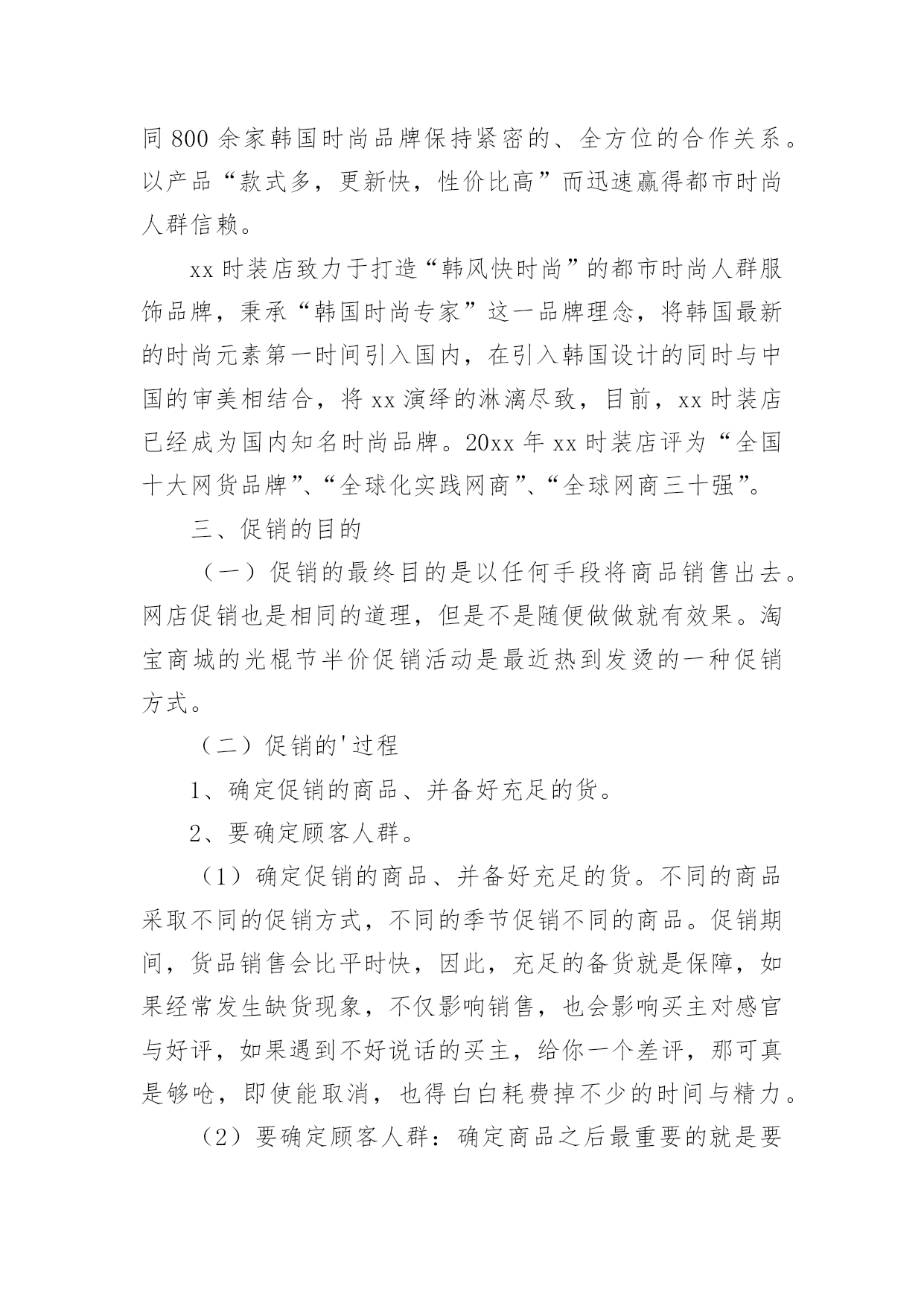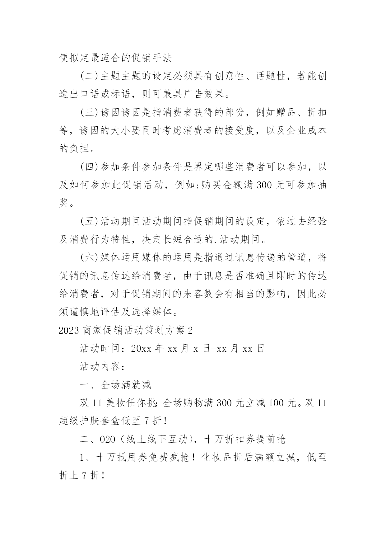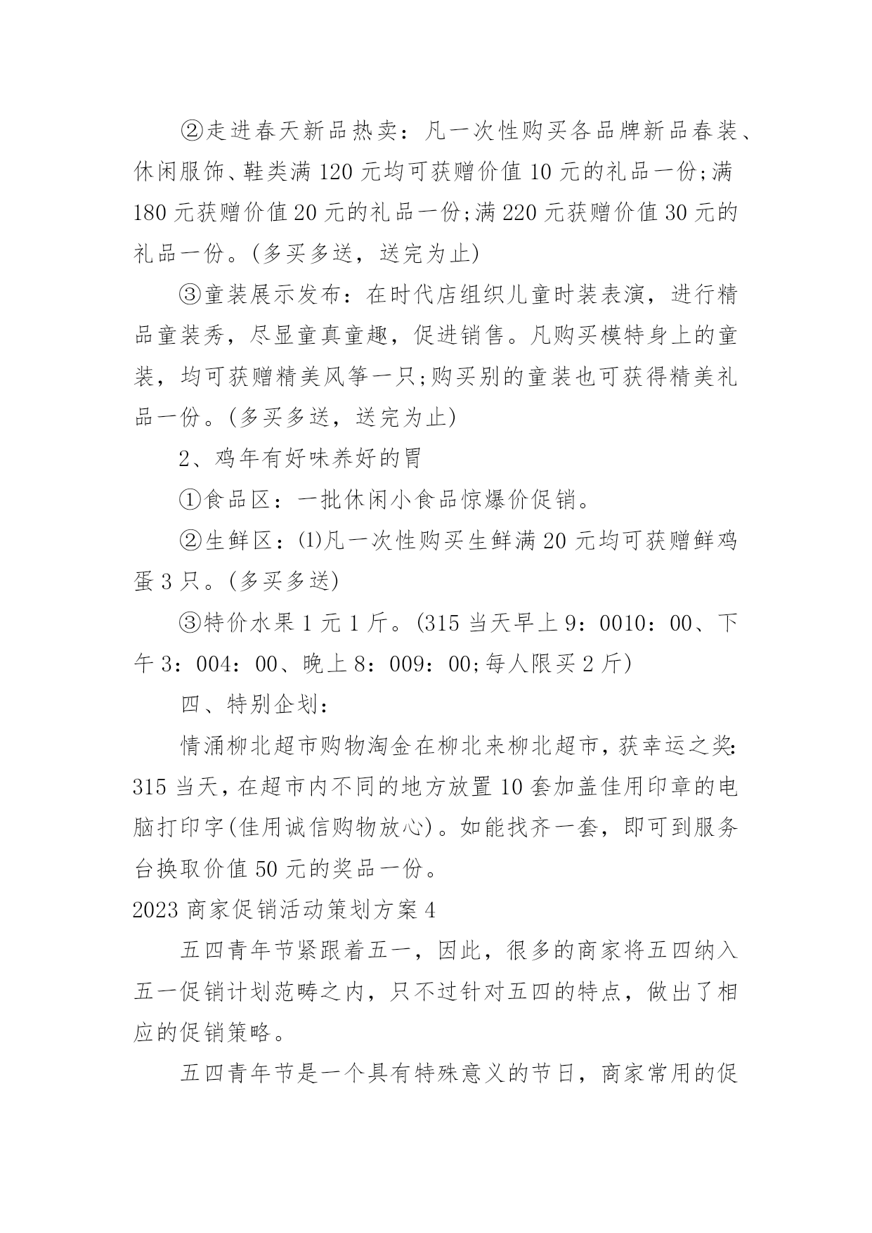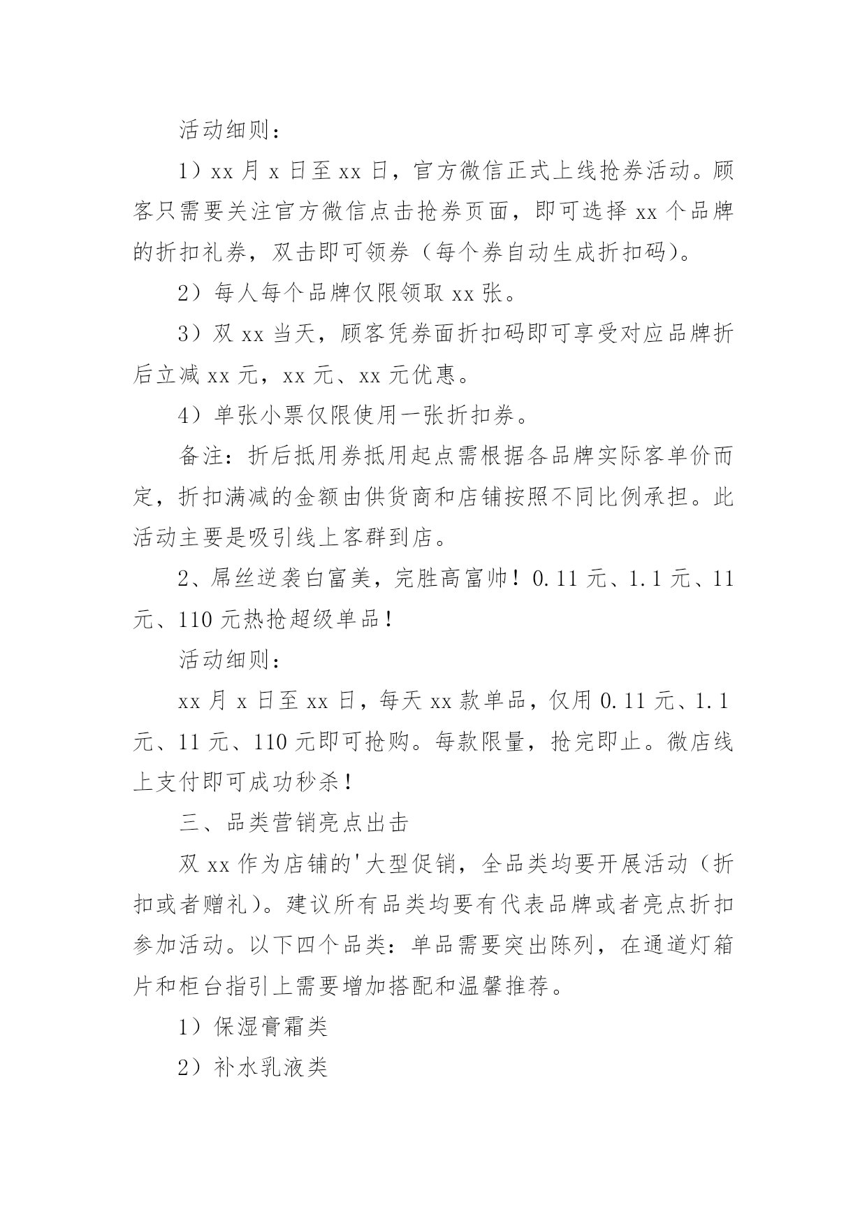 商家促销活动策划方案2023商家促销活动策划方案为了确保事情或工作能无误进行,就需要我们事先制定方案,方案是解决一个问题或者一项工程,一个课题的详细过程。那要怎么制定科学的方案呢?下面是小编为大家整理的2023商家促销活动策划方案,仅供参考,欢迎大家阅读。2023商家促销活动策划方案1父亲节又要到了,每到这个节日,人们都在寻找着送给父亲的最好礼物,而服装则是父亲节最常见的礼品,为了让促销活动的投入得到最大的回报,商家们都在精心的准备着服装父亲节促销方案,那么服装父亲节促销方案该如何去做呢?一份行之有效的方案是建立在真实可靠的数据之上的,因此,事前的市场调整则是服装父亲节促销方案的基础,这样就为方案的科学性、准确性提供了保证,服装商家父亲节促销活动方案。市场调查,包括社会大环境,行业内部环境,比如产品特征,竞争对手情况,消费者的消费习惯等等,规划方案《服装商家父亲节促销活动方案》。通过对市场调查数据进行分析,找出自己的优劣势,机会风险。接下来便是拟定促销方案,促销方案的内容包括以下的项目:(一)目标对象只针对某一群消费者举办的促销活动,以便拟定最适合的促销手法(二)主题主题的设定必须具有创意性、话题性,若能创造出口语或标语,则可兼具广告效果。(三)诱因诱因是指消费者获得的部份,例如赠品、折扣等,诱因的大小要同时考虑消费者的接受度,以及企业成本的负担。(四)参加条件参加条件是界定哪些消费者可以参加,以及如何参加此促销活动,例如:购买金额满300元可参加抽奖。(五)活动期间活动期间指促销期间的设定,依过去经验及消费行为特性,决定长短合适的.活动期间。(六)媒体运用媒体的运用是指通过讯息传递的管道,将促销的讯息传达给消费者,由于讯息是否准确且即时的传达给消费者,对于促销期间的来客数会有相当的影响,因此必须谨慎地评估及选择媒体。2023商家促销活动策划方案2活动时间:20xx年xx月x日-xx月xx日活动内容:一、全场满就减双11美妆任你挑:全场购物满300元立减100元。双11超级护肤套盒低至7折!二、O2O(线上线下互动),十万折扣券提前抢1、十万抵用券免费疯抢!化妆品折后满额立减,低至折上7折!活动细则:1)xx月x日至xx日,官方微信正式上线抢券活动。顾客只需要关注官方微信点击抢券页面,即可选择xx个品牌的折扣礼券,双击即可领券(每个券自动生成折扣码)。2)每人每个品牌仅限领取xx张。3)双xx当天,顾客凭券面折扣码即可享受对应品牌折后立减xx元,xx元、xx元优惠。4)单张小票仅限使用一张折扣券。备注:折后抵用券抵用起点需根据各品牌实际客单价而定,折扣满减的金额由供货商和店铺按照不同比例承担。此活动主要是吸引线上客群到店。2、屌丝逆袭白富美,完胜高富帅!0.11元、1.1元、11元、110元热抢超级单品!活动细则:xx月x日至xx日,每天xx款单品,仅用0.11元、1.1元、11元、110元即可抢购。每款限量,抢完即止。微店线上支付即可成功秒杀!三、品类营销亮点出击双xx作为店铺的'大型促销,全品类均要开展活动(折扣或者赠礼)。建议所有品类均要有代表品牌或者亮点折扣参加活动。以下四个品类:单品需要突出陈列,在通道灯箱片和柜台指引上需要增加搭配和温馨推荐。1)保湿膏霜类2)补水乳液类3)原液/精华液类4)彩妆类四、VIP营销情感攻势VIP浓情招募:单日消费满50元即可免费办理VIP卡一张,单日消费满500元即可升级为钻石卡。1、双11·VIP顾客免费送:双11当天到店,即可在xx甜心饮品获得指定热饮一杯。(异业联盟,无费用)2、双11·VIP顾客免费玩:钻石卡VIP凭卡即可带小朋友至xx游乐园免费畅玩一次。五、文化营销攻心为上1、双11,脱光马上走起!1)免费广播顾客表白语,微信分享区免费晒幸福。活动地点:店内2)单身男女报名即可参加“心动对对碰”活动。单身男女将随机多次组成不同的“假设情况”共同参加情侣互动活动。心动的,即刻牵手!活动地点:店外备注:活动具体操作细则及项目规则另附。2、双11,单身情人场·光棍走起单身男女在本店购物满xxx元即可以获得xx电影院单身贵族专属票,男生还可获玫瑰花一支(用于赠送邻座女生。)座位均按照随机男女一一搭配。活动时间:xx月xx日活动地点:xx电影院1、3号厅(详情以具体观影时间场次为准)六、氛围布置营造旺销1、店门口主展区/各品类展区:沿用20xx年秋冬流行元素。活动期间增加展区内光棍节模拟对话标识。例如:光棍节来xx化妆品店=屌丝逆袭白富美等鲜明标识。2、橱窗/柜台:双十一灯箱片、立式POP架。备注:活动详情请以店内标识为准。2023商家促销活动策划方案3活动时间:xx年3月10日15日活动主题:情系315爱心连万活动地点:购物广场业态、综合超市副题:关注315投诉有理更有礼活动内容