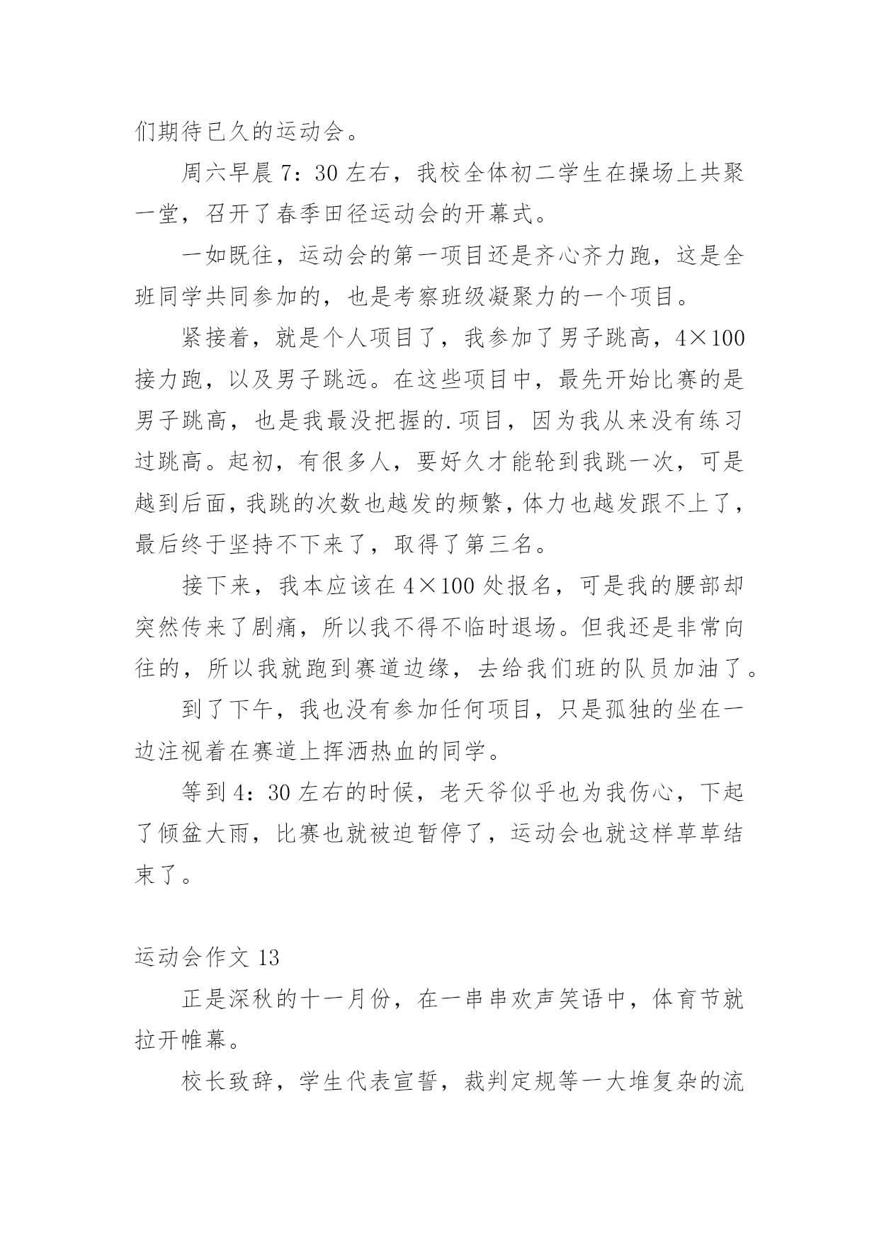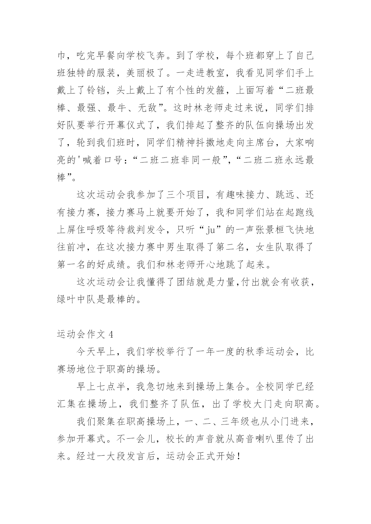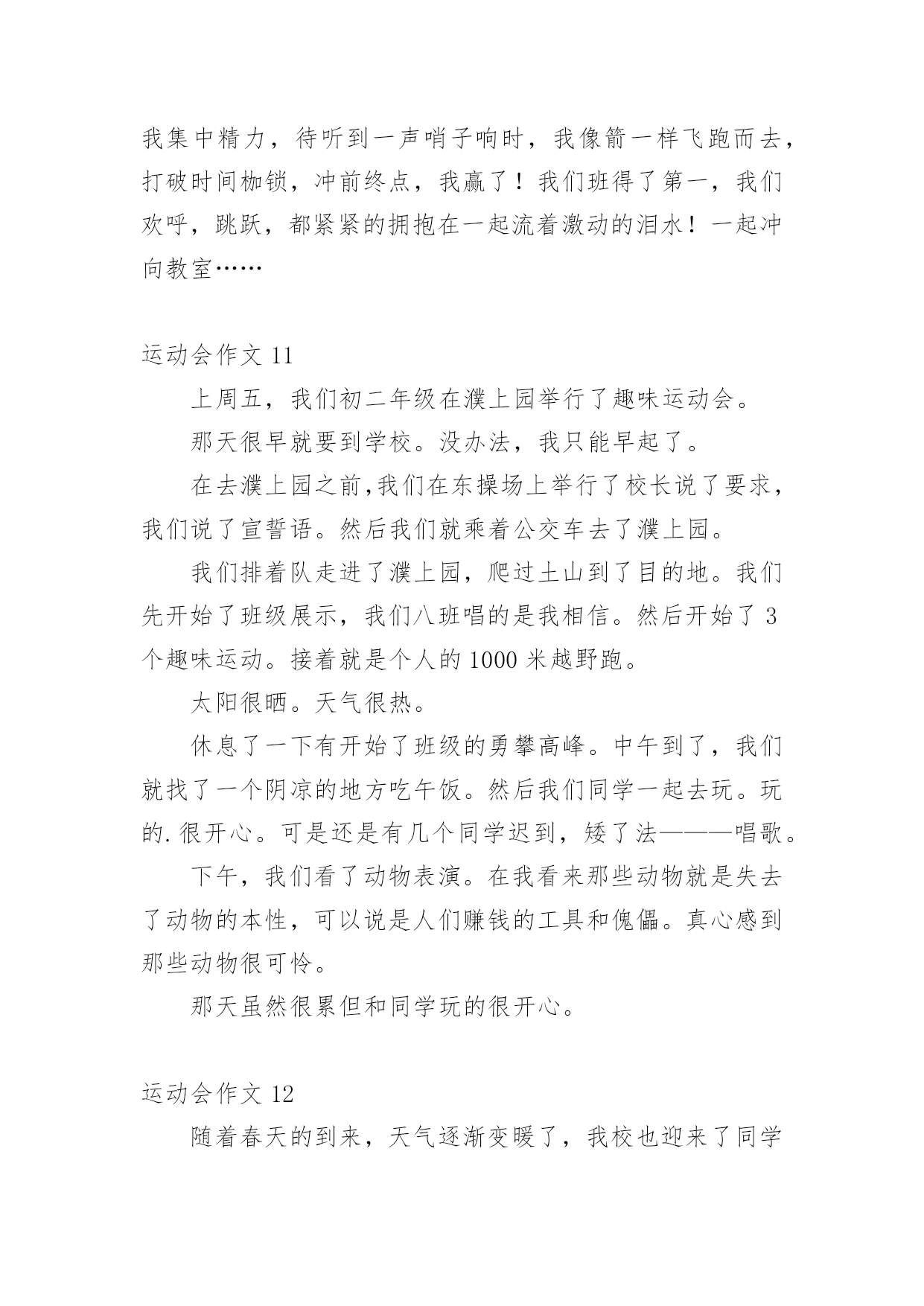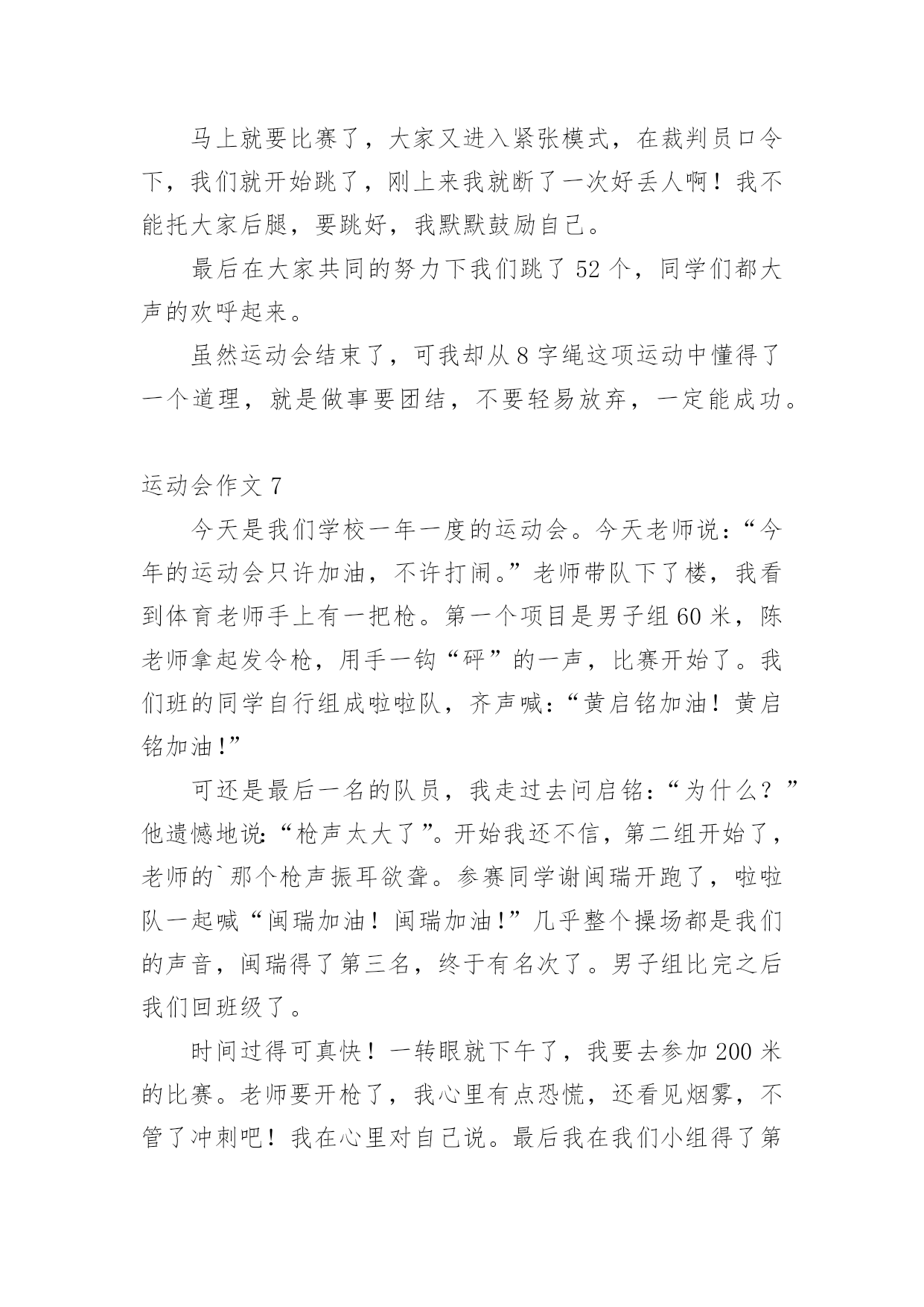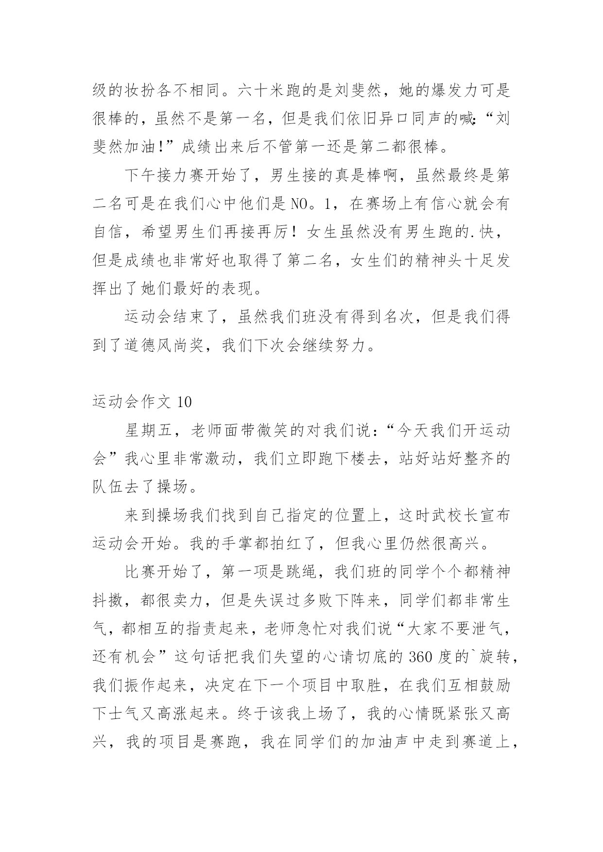 运动会作文在我们平凡的日常里,大家都尝试过写作文吧,写作文是培养人们的观察力、联想力、想象力、思考力和记忆力的重要手段。那要怎么写好作文呢?下面是小编整理的运动会作文,欢迎大家分享。运动会作文1等啊,盼啊。一年一度的田径运动会总算开始了。为了这场运动会,我可是刻苦练习了好久呢!这不,我们来到了运动场上。那里人声鼎沸,像咋开了锅一样。我们班的同学在地上坐好,准备观看比赛。裁判员一声令下,我们班的飞毛腿朱珉毅就像一根离弦的箭一样冲了出去,得了小组第一。我们班的同学都拍手叫好。轮到我上场了,我摩拳擦掌。站到起跑线上的那一刻,我激动万分。裁判员一声令下,我冲出起跑线,跑到我们班面前时,我听到同学们的呐喊声,我咬紧牙关,飞快的`冲过了终点线,得了小组第一。爸爸跑过来迎接我。我急忙问:“爸爸,我得了第几名呀?”爸爸说:“名次不重要,重在参与,你尽力就好!”比赛成绩终于出来了,我得了第二名,拿着奖状和银牌站在颁奖台上,好不威风啊!广播声中不断传来了303班的获奖名次。最后,我们以优异的成绩,获得了团体第一名。正如我们的口号:秋风吹,战鼓擂,我们三班怕过谁!运动会作文2今天是我们千岛镇三小第八届秋季田径运动会开幕。一大早我就怀着无比兴奋的心情来到学校。当我一走进学校大门就一幅热闹的场景,有动人的音乐,有美丽的鲜花,还有许多运动员已经在做各自的准备工作,真是忙的热火朝天。我走进教室,看见有很多同学都下去跑步了,只有啦啦队在自己的位子上。上午8点左右开始走方队了,我也是方队里的成员,我们拿着绿色的花环来到操场上,只听校长一声令:"运动员入场"。方队就在音乐的伴奏下开始走过主席台。因为每个班花环颜色不一样,所以整个操场看上去一片五彩缤纷。美丽极了。走完了方队,我们啦啦队就到边上准备为我们五(1)班加油。最先跑的是400米跑,运动员听到"开始"声就像箭一样飞了出去,我们啦啦队也齐声喊"五(1)班加油!五(1)班加油!"的口号。我班的`余星晨使着他的飞毛腿,像箭一般得冲向终点,“赢了,胜利了,得分了。”余星晨为我班夺达了宝贵的7分。很快,一天就过去了,明天的我们会是怎样的呢?运动会作文311月16日星期四,我校举行一年一度的运动会,我的心情很激动也很兴奋。一大早我穿好衣服、戴上鲜艳的红领巾,吃完早餐向学校飞奔。到了学校,每个班都穿上了自己班独特的服装,美丽极了。一走进教室,我看见同学们手上戴上了铃铛,头上戴上了有个性的发箍,上面写着“二班最棒、最强、最牛、无敌”。这时林老师走过来说,同学们排好队要举行开幕仪式了,我们排起了整齐的队伍向操场出发了,轮到我们班时,同学们精神抖擞地走向主席台,大家响亮的'喊着口号:“二班二班非同一般”,“二班二班永远最棒”。这次运动会我参加了三个项目,有趣味接力、跳远、还有接力赛,接力赛马上就要开始了,我和同学们站在起跑线上屏住呼吸等待裁判发令,只听“ju”的一声张景桓飞快地往前冲,在这次接力赛中男生取得了第二名,女生队取得了第一名的好成绩。我们和林老师开心地跳了起来。这次运动会让我懂得了团结就是力量,付出就会有收获,绿叶中队是最棒的。运动会作文4今天早上,我们学校举行了一年一度的秋季运动会,比赛场地位于职高的操场。早上七点半,我急切地来到操场上集合。全校同学已经汇集在操场上,我们整齐了队伍,出了学校大门走向职高。我们聚集在职高操场上,一、二、三年级也从小门进来,参加开幕式。不一会儿,校长的声音就从高音喇叭里传了出来。经过一大段发言后,运动会正式开始!首先,是60米短跑。选手们各就各位,陆老师举起手中的'发令枪,“砰”的一声,一股火药味儿弥漫着空中,选手们立即跑出去。赛道旁边,拉拉队们挥舞着手中的红旗,不停地为自己班加油。主席台上,不时地有各班的小记者上台报告比赛情况。因为有些运动员冲过线时看不清楚,所以要在喇叭里像观众们报告。接下来是两百米比赛,要跑大半圈。这里有我班选手丁雨。一开始,丁雨处于位置,最后得了第×名(不清楚)。这是我们班少有的成绩。我们不禁为丁雨叫好!在这次运动会中,我们班捡了一大堆瓶子,准备卖成班费。但是没有袋子拖回去。幸亏吴汉发现了一张超大的纸,便把瓶子放在上面,找几个人抬回去了。在这次运动会中,我们班改写了从无前两名的成绩,希望以后会做得更好!运动会作文5星期天,我们举行了一年一度的运动会。大家都兴高采烈。我开心得都快疯了。我跟着队伍走到操场,拿起了板凳坐了下来,吃起了零食。我觉得应该要有游戏玩,要不然没意思。于是我和伙伴们玩起了一轻二重三不打的游戏,玩得可起劲了。中午,我们在食堂里吃饭。我一看到有鸡排就立刻啃了一口,我感觉浑身精神了许多,因为鸡排太好吃了!到了下午,我去跳远了。我到了跳远的地方,感到很紧张。我见前面的人越来越少,我怕得瑟瑟发抖。到了我,我拼尽全力地跳。我感觉自己要飞了,我听到我跳了