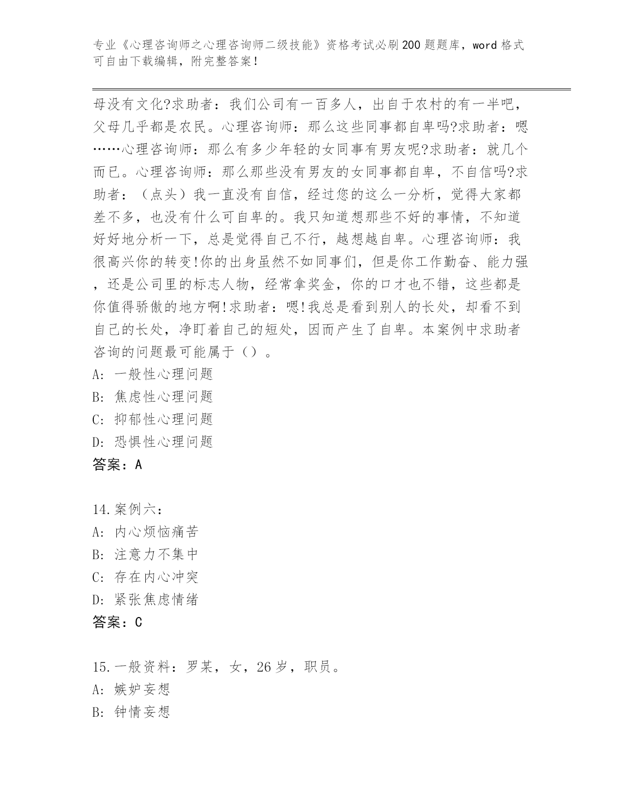 整理江西省《心理咨询师之心理咨询师二级技能》考试必刷200题真题(易错题)